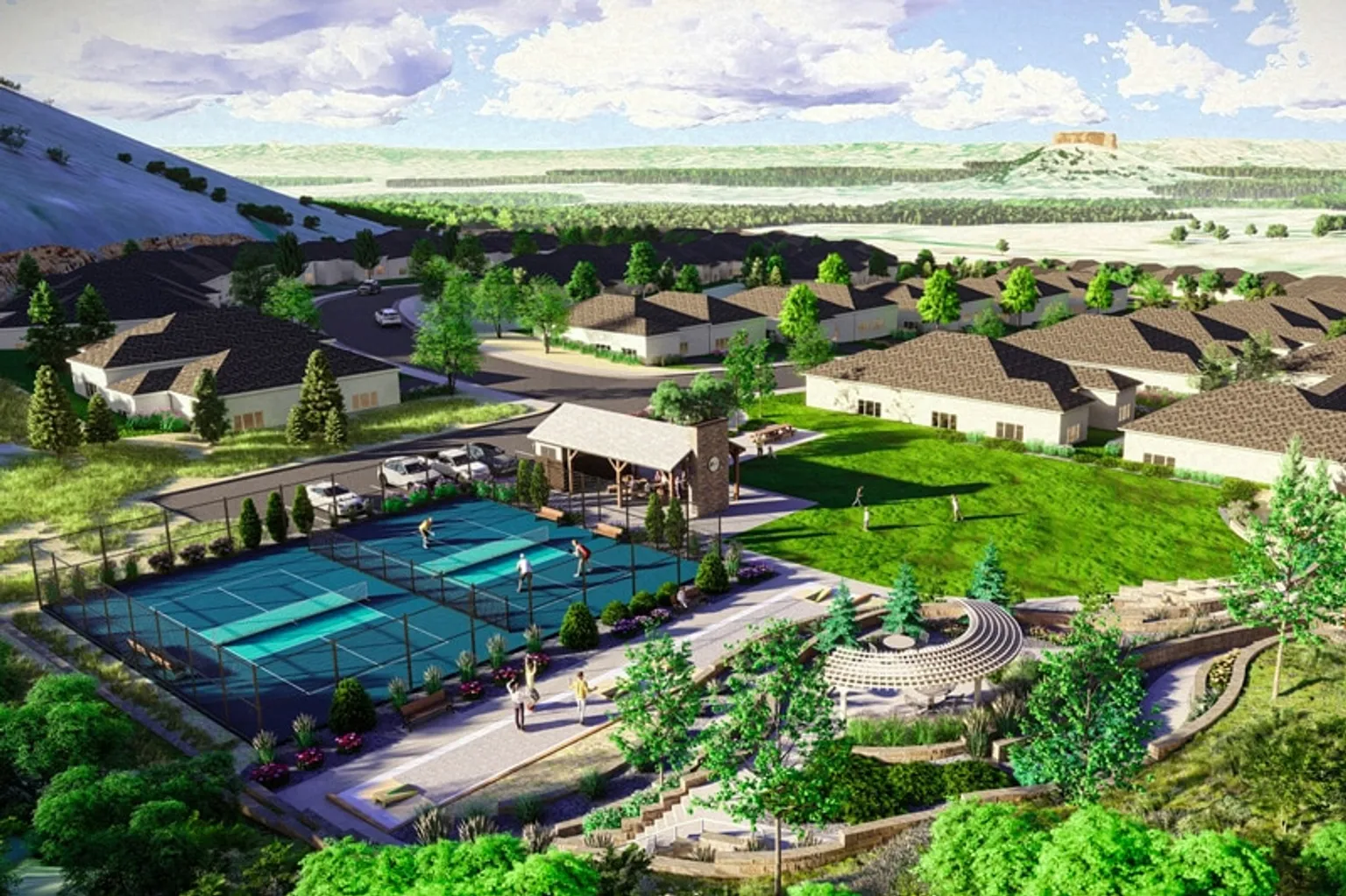 Residents at Hillside at Castle Rock have access to a number of amenities, most of which are found in the exclusive Daybreak Park. Here, they’ll find a covered pavilion which includes an indoor and outdoor fireplace, pickleball courts, lots of green space, a sports field, and access to walking and biking trails.