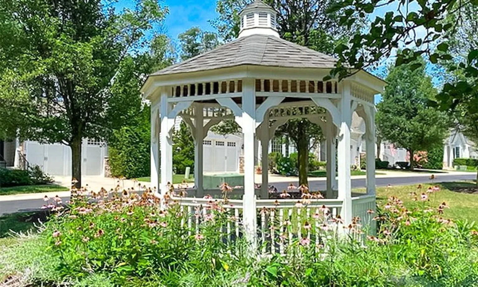 Residents at Fairway Overlook have access to a gazebo and ample natural space.