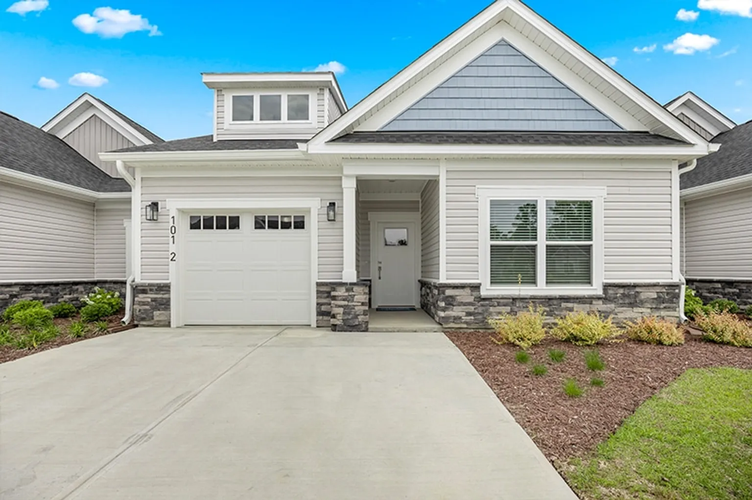 The Cascade is the three-bedroom model, offering 1,433 square feet, two full bathrooms, and an attached two-car garage. There’s ample space for dining and entertaining, and the primary suite features a walk-in shower, double sinks, and a walk-in closet. One of the additional bedrooms also includes a walk-in closet.Â