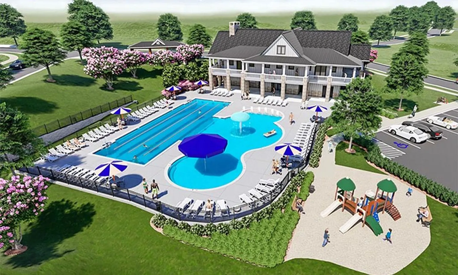 At The Farm at Ingleside, you can enjoy amenities such as the Clubhouse/Amenity Center, Fitness Center, Outdoor Pool, Walking & Biking Trails, Playground for Grandkids, Outdoor Patio, Multi-Purpose/Meeting Rooms, and BBQ.