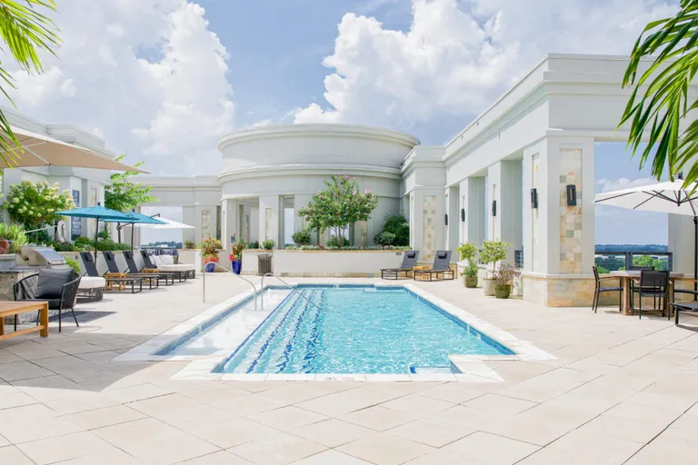 Outside, The Residence at Southpark residents can enjoy a rooftop saltwater pool and sundeck. There’s an aqua lounge poolside and a rooftop fire pit. A ground-level sundeck has lounge seating, and there are convenient grilling stations. A walk just outside the building brings residents to a vibrant retail space and shopping district. Â