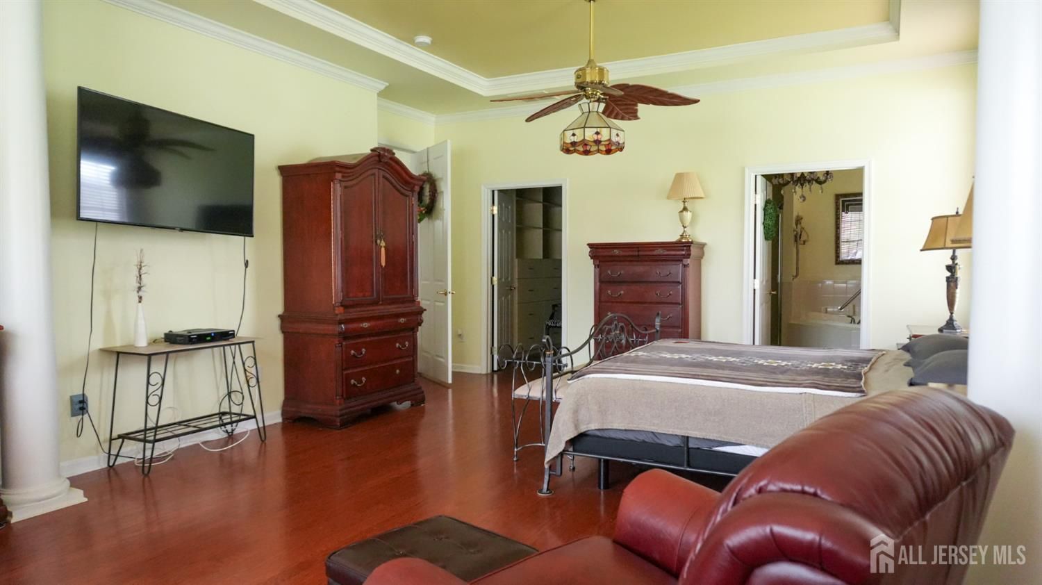 No showings till Sun 11/16/25. Welcome to 1 Belmont Court, a beautifully maintained Bayhill Model home in the prestigious Riviera at Freehold, a premier 55+ community built by Toll Brothers. This family residence offers approximately 2,288 square feet of living space on an 8,499 square foot lot and blends timeless elegance with modern updates. Freshly repainted with hardwood floors throughout, the home features soaring 10-foot ceilings, elegant chandeliers, and a bright, open layout perfect for entertaining or relaxing. The modern kitchen has been upgraded with new granite countertops, a new dishwasher, and a new microwave oven, while a cozy breakfast nook overlooks the landscaped backyard. Offering 2 bedrooms and 2 full bathrooms, including a serene primary suite with spacious a large dressing closet and spa-like bath, the home also includes a versatile additional room ideal for an office, exercise space, or guest accommodations. Recent updates include a newly paved driveway, a furnace and air conditioning unit replaced just two years ago, and a whole-house generator for peace of mind. Outside, enjoy a private patio and landscaped yard, with an attached garage and low-maintenance exterior giving you more time to enjoy the community's resort-style amenities such as a clubhouse, fitness center, indoor and outdoor pools, tennis courts, serene & picturesque trails, and a vibrant calendar of social events. Conveniently located near shopping, dining, and major highways, This home and community offers both tranquility and social opportunities, offering both serene privacy and a rich social environment within Riviera at Freehold, making 1 Belmont Court the perfect blend of space, style, and community.