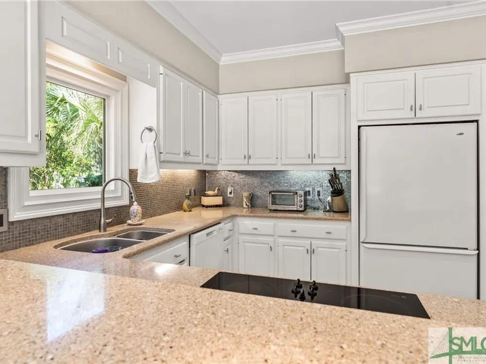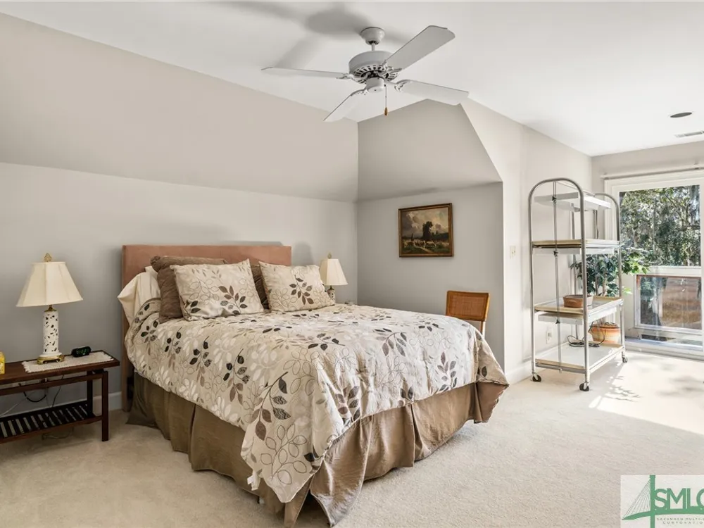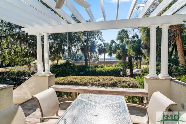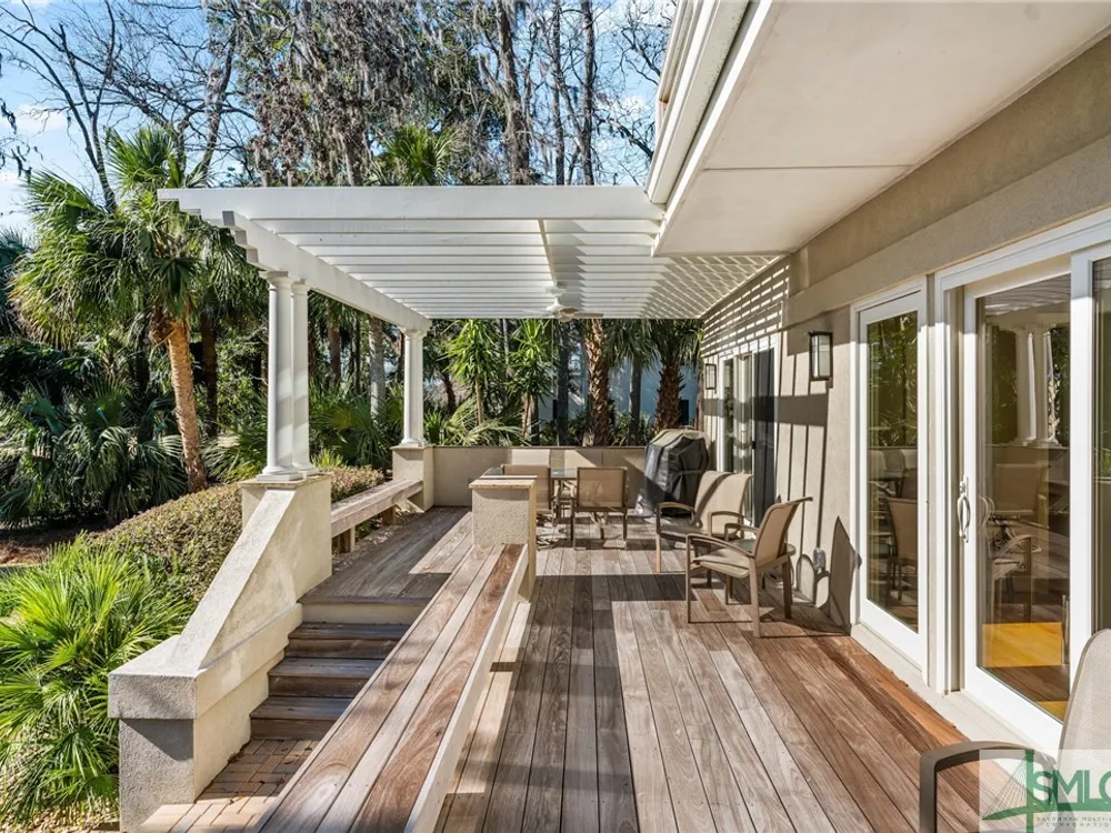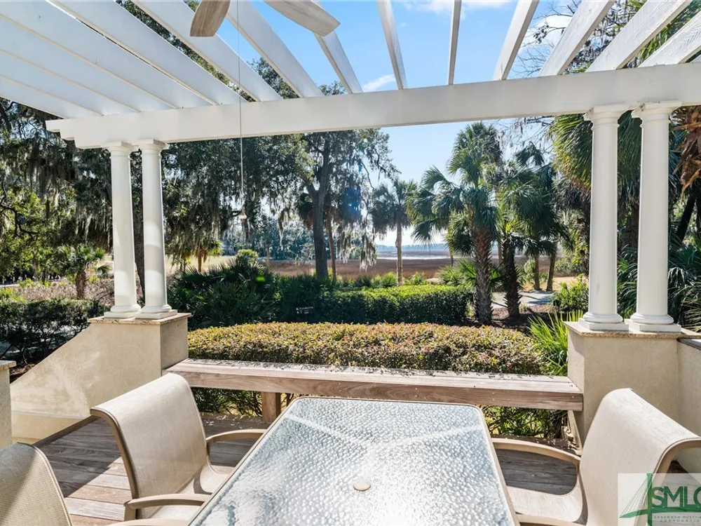 Experience ultimate privacy with breathtaking western marsh and water views from this exceptional patio home. Nestled on a serene, non-intrusive golf lot surrounded by majestic live oaks, this sought-after setting offers both tranquility and beauty. The well-maintained, home features a durable hard coat stucco exterior, a brand-new full-house generator, and a new roof located in the preferred X Flood zone. Enjoy an open floor plan with a spacious first-floor primary suite, generous storage, and seamless indoor-outdoor living. Both the living room and family room with fireplace open to a large deck and charming gazebo porch—ideal for entertaining or relaxing. Upstairs, two guest bedrooms share a full bathroom and separate doors to a second level deck. A stunning fountain entrance adds to the home’s curb appeal. Located within The Landings, a gated community where residents enjoy access to world-class amenities through The Landings Club including six championship golf courses, tennis, and newly expanding pickleball courts, large fitness center, four clubhouses with dining, and a vibrant social scene. Please note that some amenities require additional club membership.