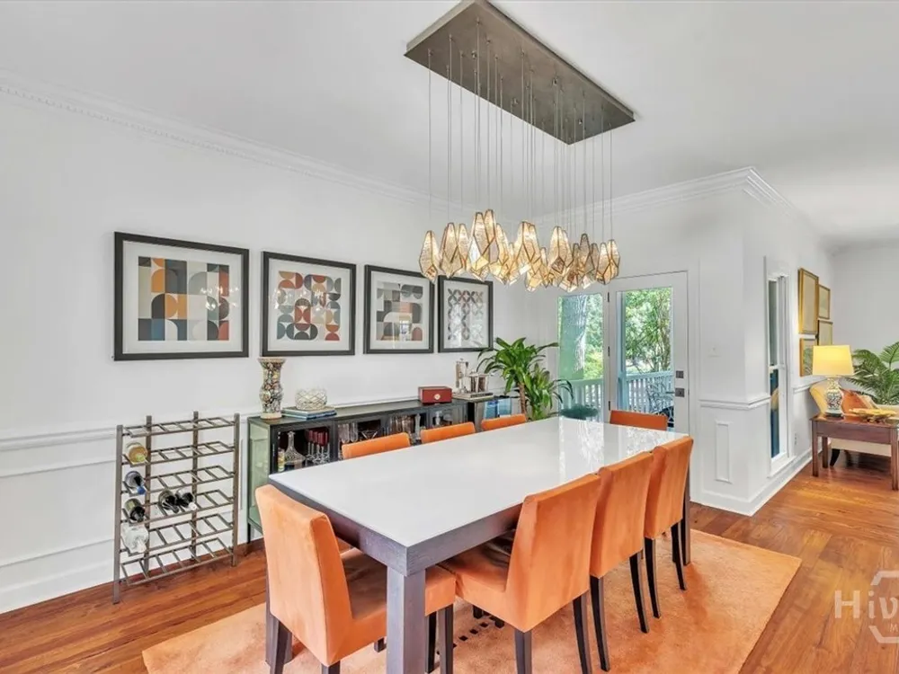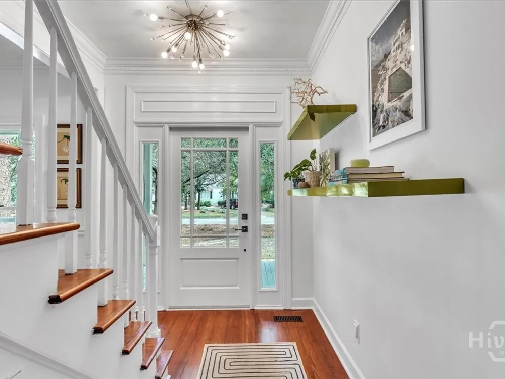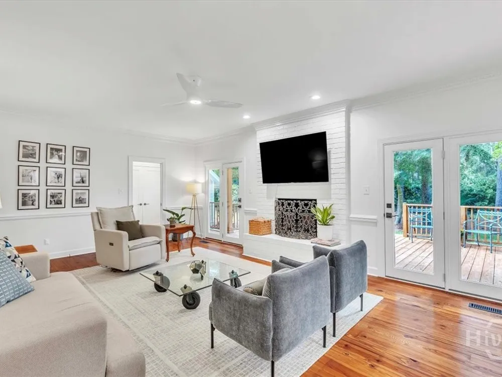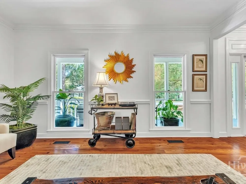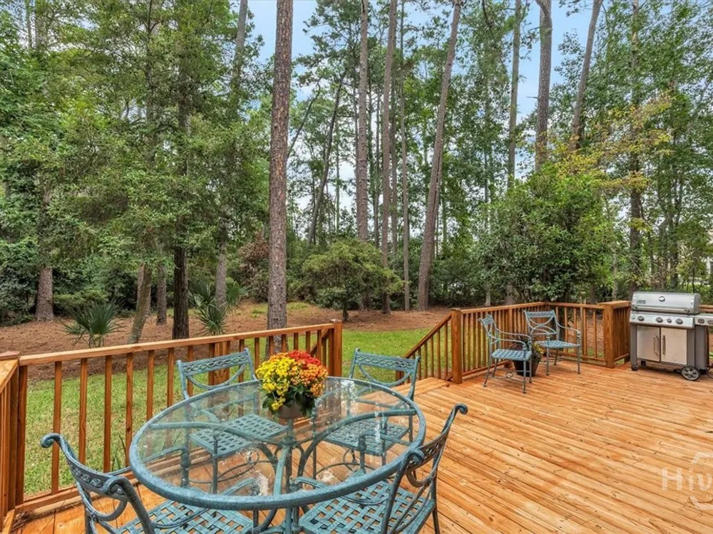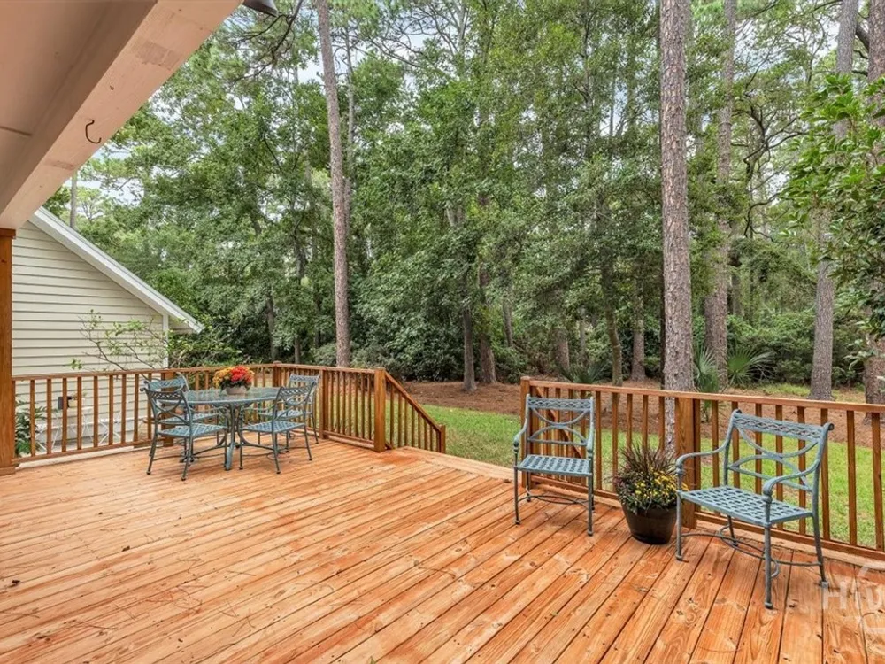Tucked away in The Landings on Skidaway Island, this beautifully updated 4-bedroom, 3.5-bath home offers the perfect blend of Lowcountry charm and modern comfort. The covered front porch welcomes you into a bright, open layout featuring heart pine floors, crown molding, and custom plantation shutters. The family room flows into a formal dining area and a stunning kitchen designed by Jamestown Designer Kitchens with Miele and Bosch appliances, gas cooktop, and breakfast nook overlooking the living room. The primary suite includes a renovated ensuite with a double vanity and new fixtures. Enjoy quiet wooded views from the large back porch with a gas grill hookup, ideal for entertaining. Recent upgrades include two new HVAC units with updated ductwork, new lighting, smart Haiku fans, and refreshed interiors throughout!