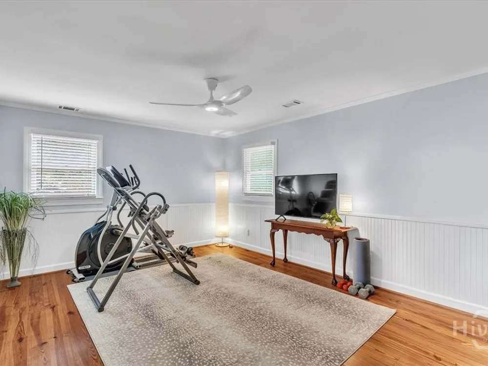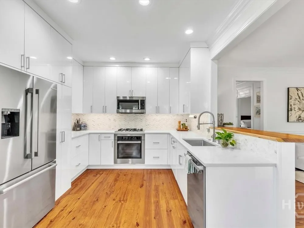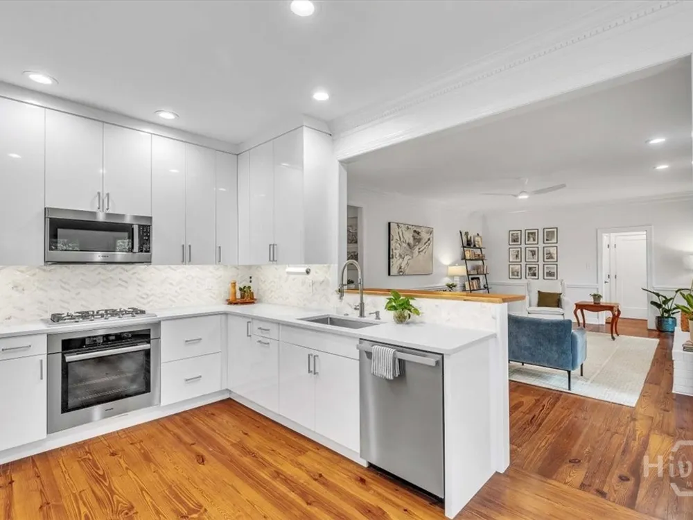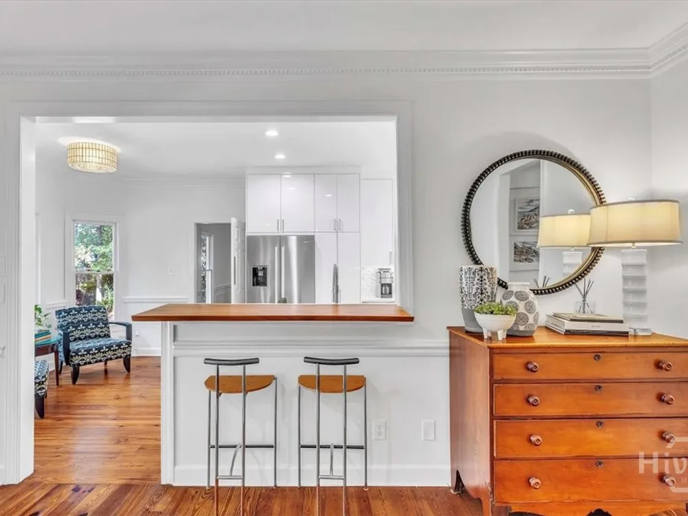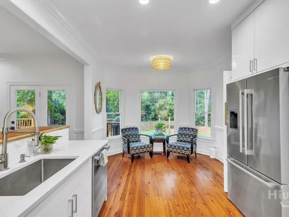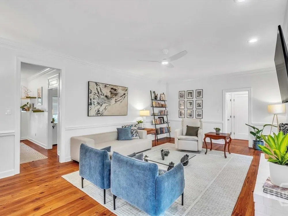 Tucked away in The Landings on Skidaway Island, this beautifully updated 4-bedroom, 3.5-bath home offers the perfect blend of Lowcountry charm and modern comfort. The covered front porch welcomes you into a bright, open layout featuring heart pine floors, crown molding, and custom plantation shutters. The family room flows into a formal dining area and a stunning kitchen designed by Jamestown Designer Kitchens with Miele and Bosch appliances, gas cooktop, and breakfast nook overlooking the living room. The primary suite includes a renovated ensuite with a double vanity and new fixtures. Enjoy quiet wooded views from the large back porch with a gas grill hookup, ideal for entertaining. Recent upgrades include two new HVAC units with updated ductwork, new lighting, smart Haiku fans, and refreshed interiors throughout!