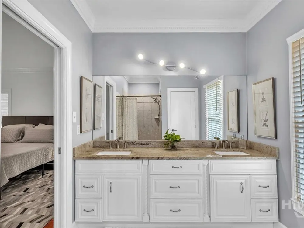 - Breakfast Area, Double Vanity, Main Level Primary, Pull Down Attic Stairs, Separate Shower