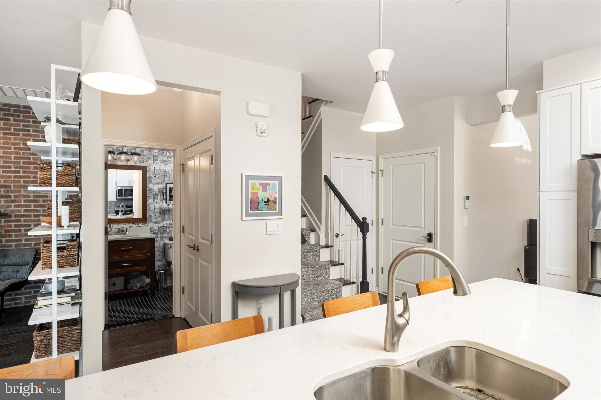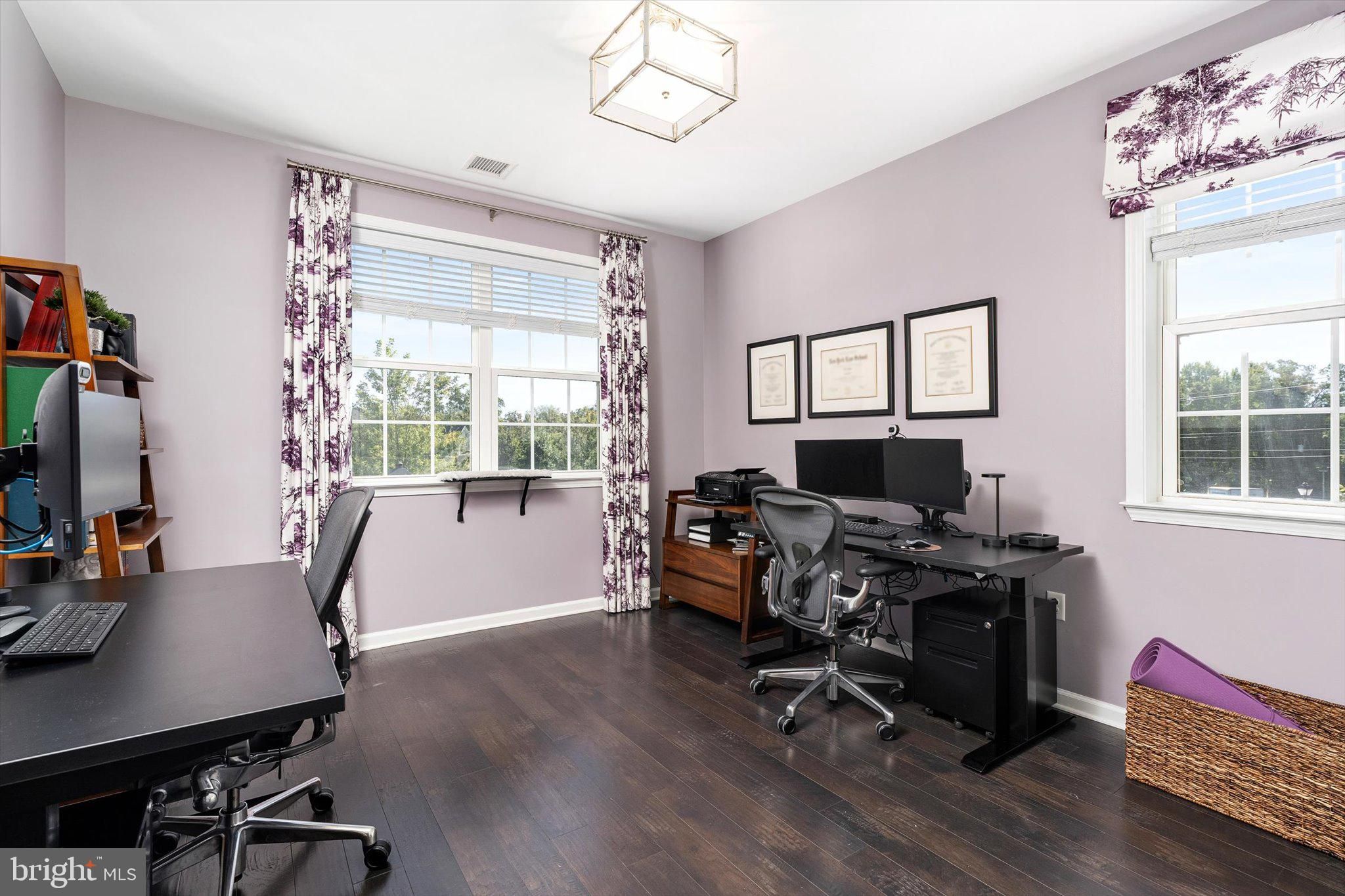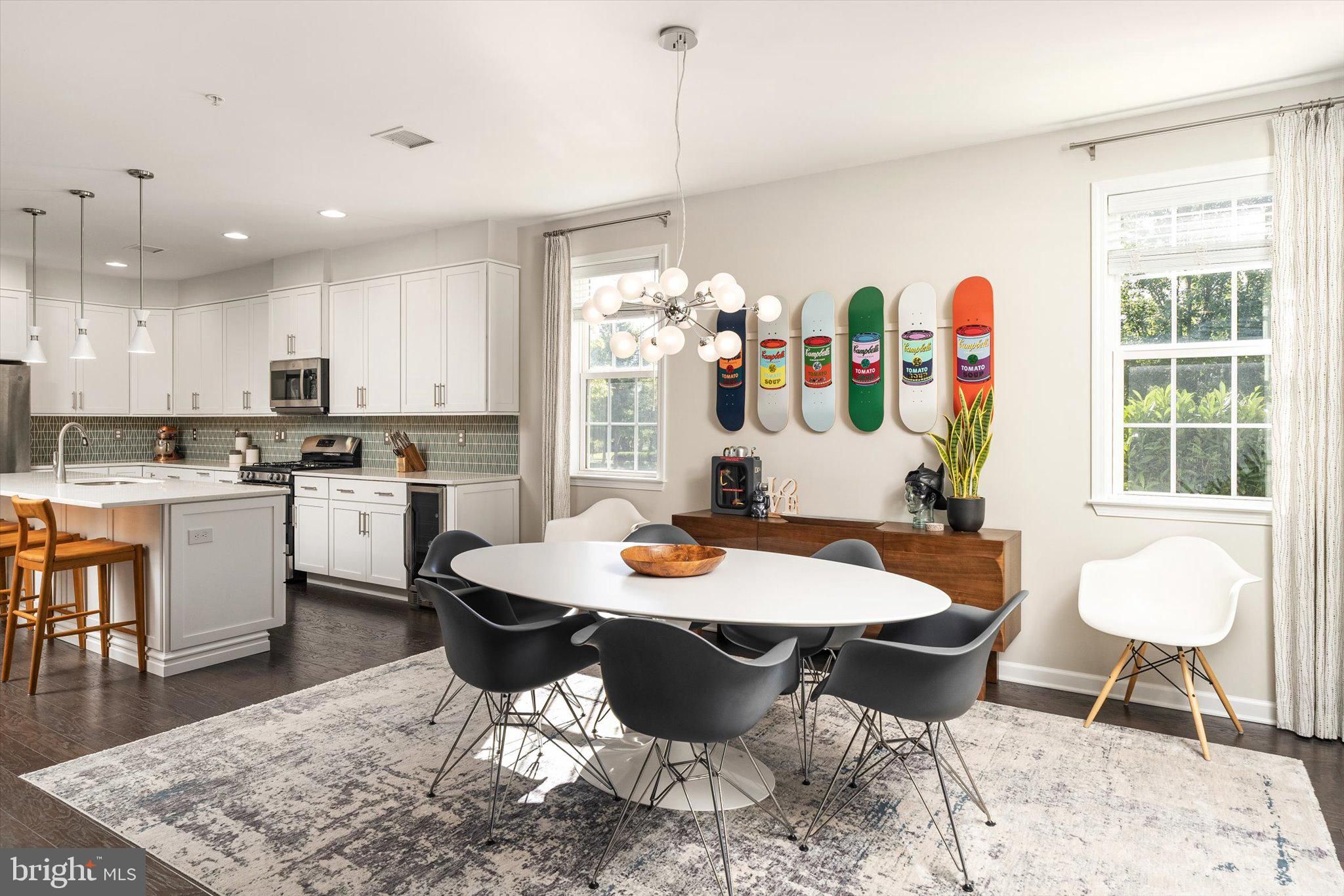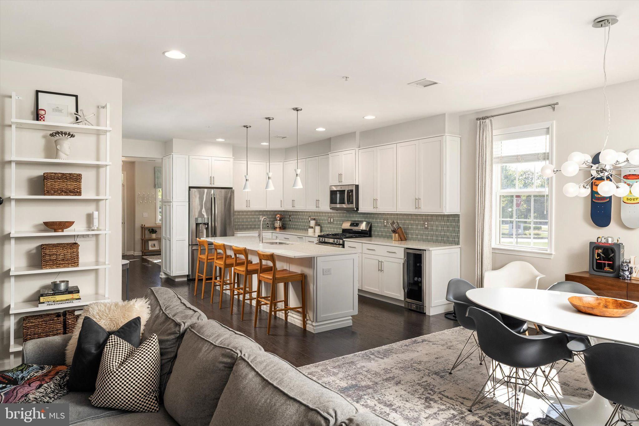 Don't miss this beautiful end-unit townhome Rosedale model in the desirable Heritage at Pennington community. As you enter this pristine 3 bedroom, 2.5 bath home you enjoy a flex space - this space could be used in so many ways…a music room, play room, wine tasting room, formal living room, or any way that works for you. From there you enter the luxurious open floor plan - the kitchen with custom white wood 42” cabinets with soft close, quartz countertops, stainless steel appliances, beverage refrigerator, custom glass mosaic tile backsplash, under cabinet lighting and an enormous island makes for a fabulous work place for the culinary enthusiast or for easy entertaining. The dining space opens to the custom paver patio through sliding glass doors. The spacious and inviting living room is open to the dining area and kitchen. It has a custom brick wall, gas fireplace, it's wired for TV above the fireplace and on the brick wall, and has built-in shelving. Finishing off the first floor is a powder room with a solid wood custom vanity and Schumacher wallpaper, a pantry that has truly been customized, an under the steps closet with a freezer and water softener tucked away. There is also a garage with an EV charger, whole house surge protector, and slot wall/custom overhead storage units. Upstairs is a spacious primary suite with two walk in closets with custom shelving, a luxurious bath with double sinks and a walk in shower. Two additional bedrooms, each with custom window treatments, custom closets, smart lighting, and wired for fans are located on the second floor. There is an additional full bathroom, Laundry with a W/D and tankless hot water system that completing the second floor. Additional features include: Custom window treatments throughout. Custom closets throughout Custom lighting throughout, including recessed lighting, designer light fixtures and smart lighting. 9’ ceilings throughout. Smart thermostats Wood floors throughout Whole house security system The COA is responsible for all exterior walls, roof, snow removal, and landscaping. The fireplace, chimney and flue are AS IS with no known defects. 10/10 rated Tollgate Grammar School in the highest rated Hopewell Valley School district This home is in walking distance to Pennington shops and restaurants - as well as easy access to major roadways and train stations. This home will not last!