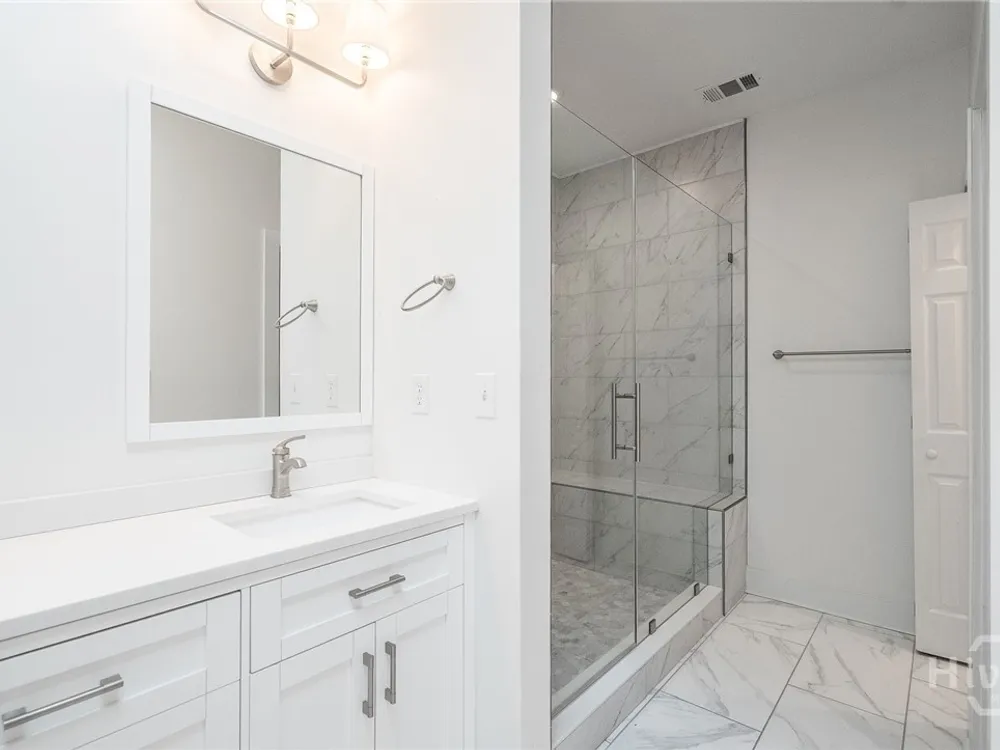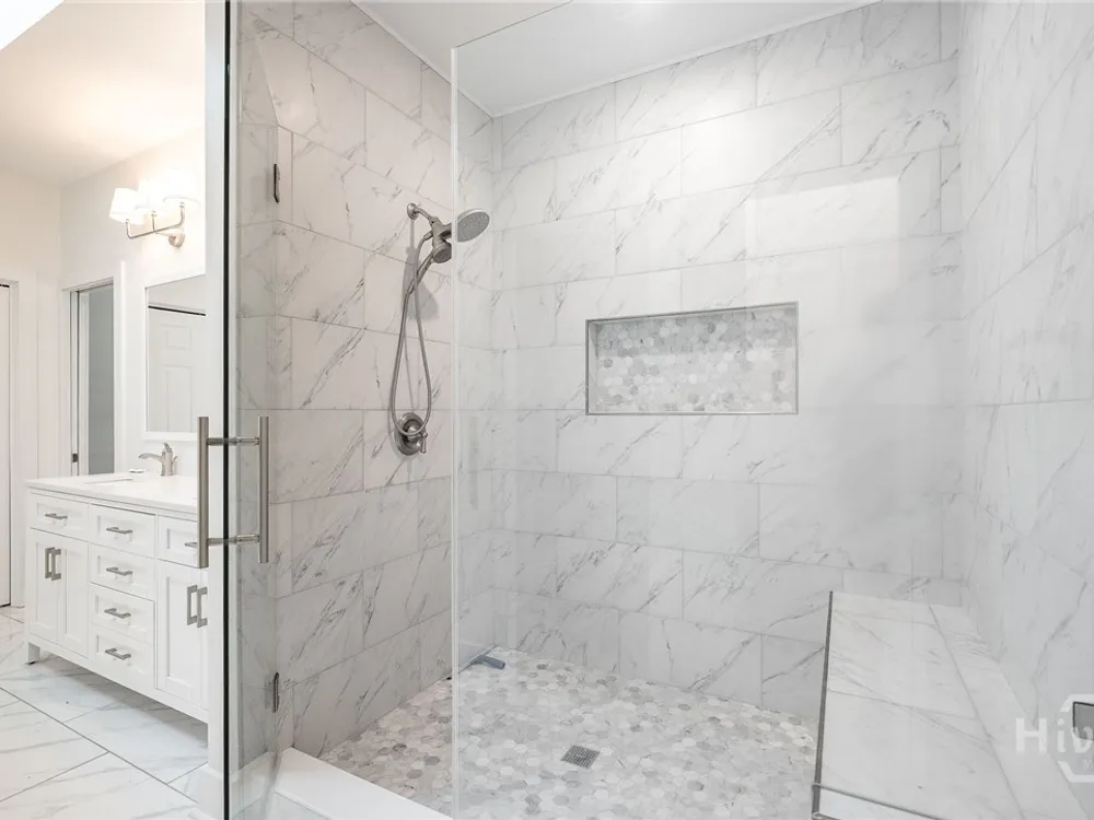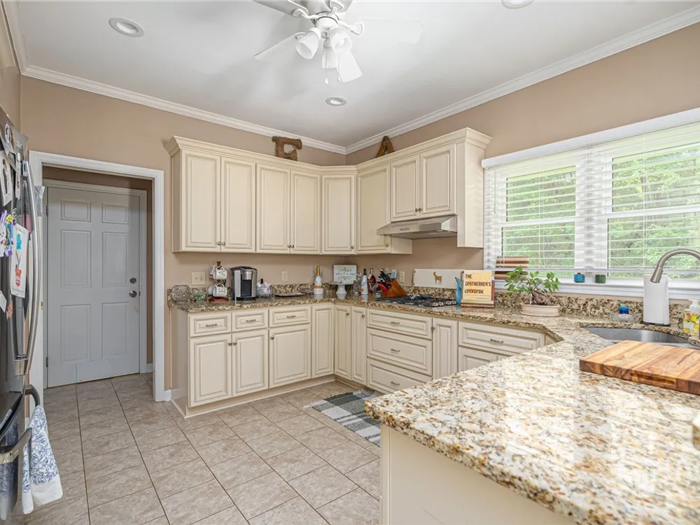 - Breakfast Area, Ceiling Fan(s), Cathedral Ceiling(s), Double Vanity, Main Level Primary, Pull Down Attic Stairs, Separate Shower