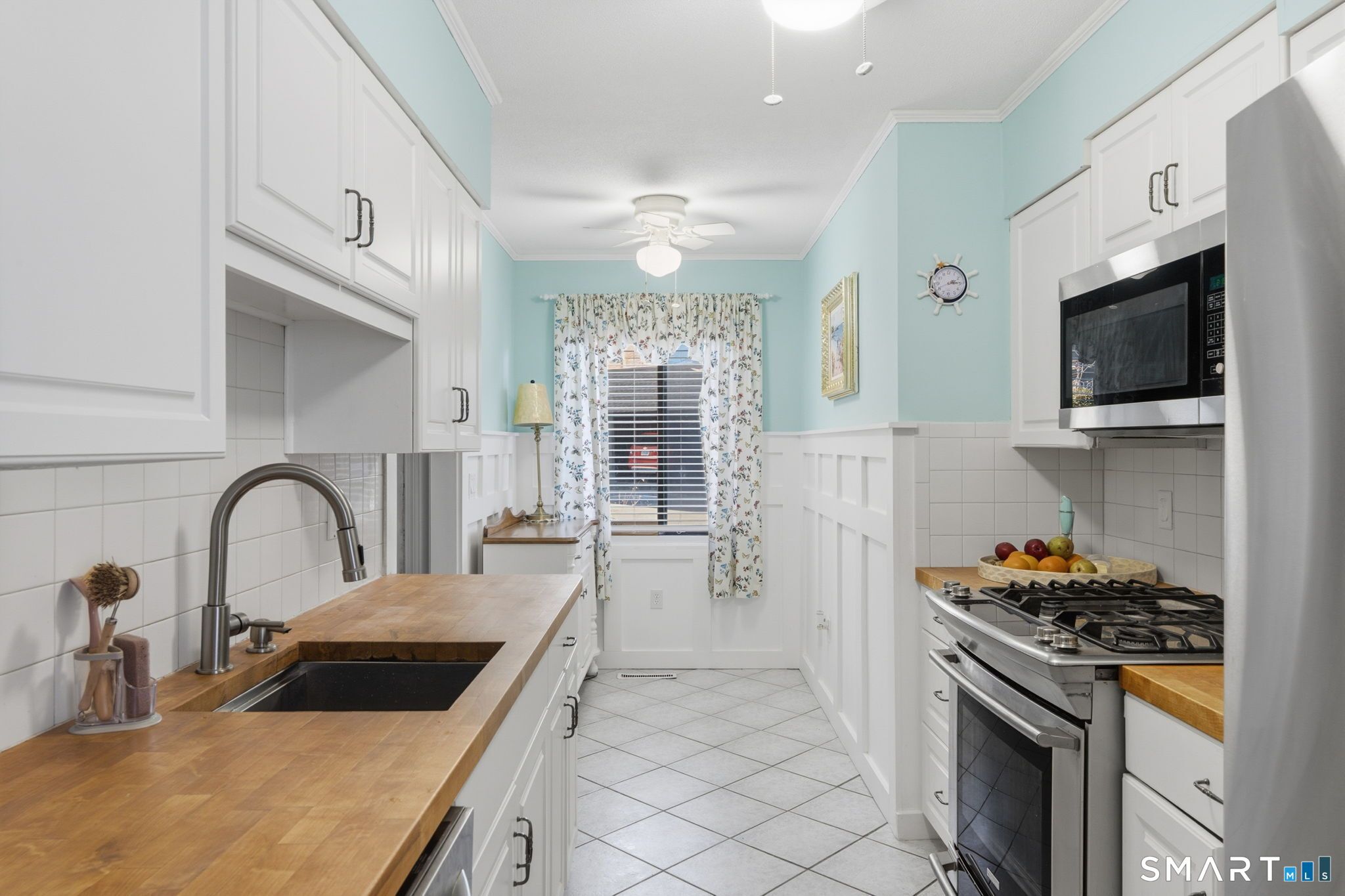 Nestled in a peaceful Southington neighborhood, this well-maintained townhouse condominium is surrounded by mature trees, walking paths, and serene ponds, offering a quiet and relaxing setting. The inviting living room features a cozy fireplace and sliding doors that lead to a private rear patio overlooking lush greenery-perfect for unwinding or enjoying the outdoors. The kitchen is thoughtfully designed with stainless steel appliances, butcher block countertops, ample cabinetry, and opens seamlessly to the dining area, making it ideal for everyday living or entertaining. New composite flooring enhances the main living areas, adding durability and a modern touch. Upstairs, both the primary bedroom and second bedroom offer access to a private balcony, creating a tranquil space to enjoy morning coffee or evening relaxation. Located in desirable Spring Lake Village, a 55+ community, residents enjoy an exceptional array of amenities including a swimming pool, clubhouse, bocce courts, tennis, and pickleball. Conveniently situated close to shopping, dining, medical offices, and the hospital. Additional highlights include gas heating and central air conditioning. 1 Coach, Building #7 Unit #1. 2 dogs or 2 cats allowed or one cat and one dog.