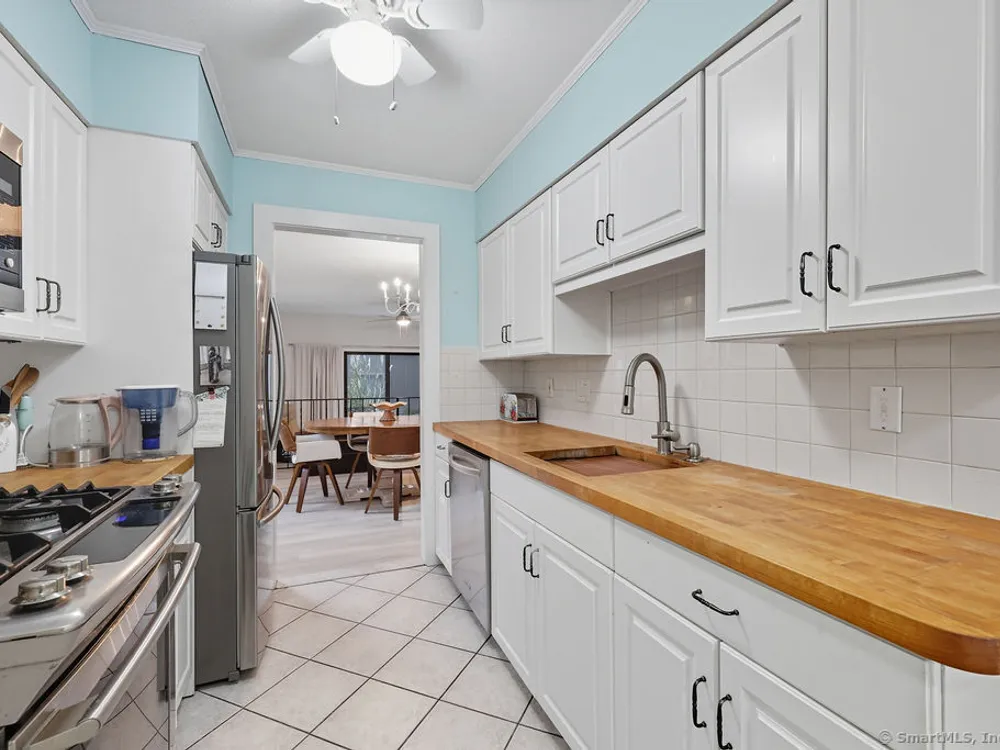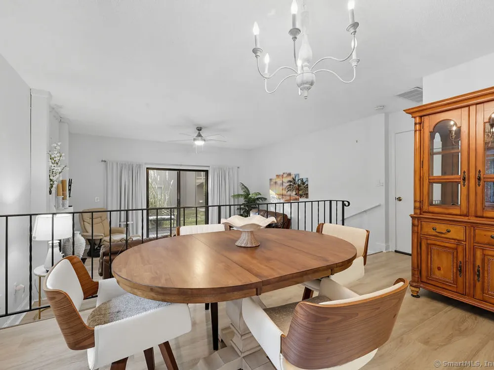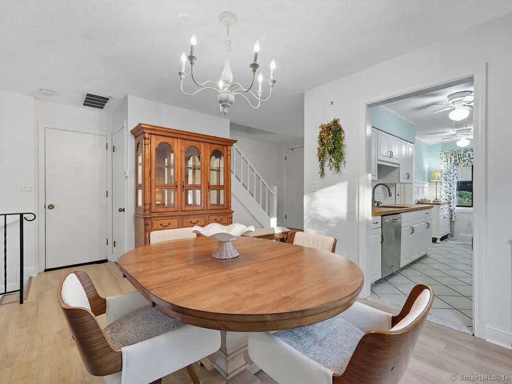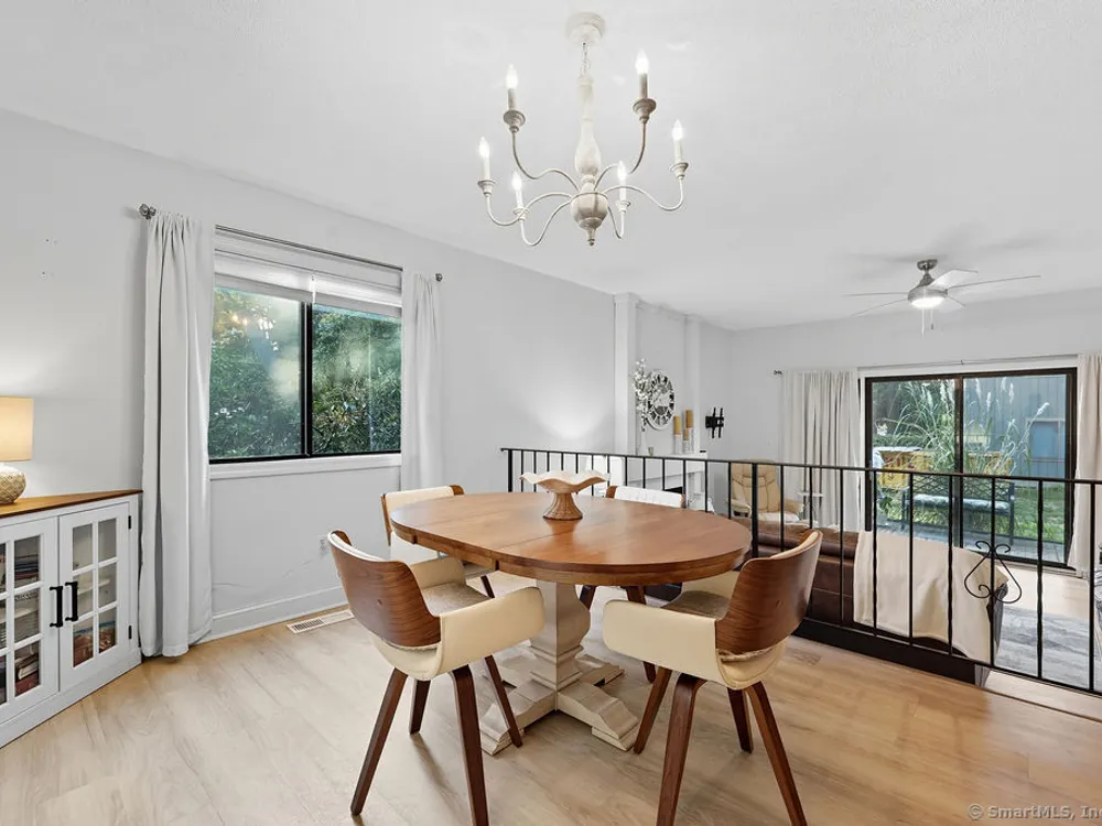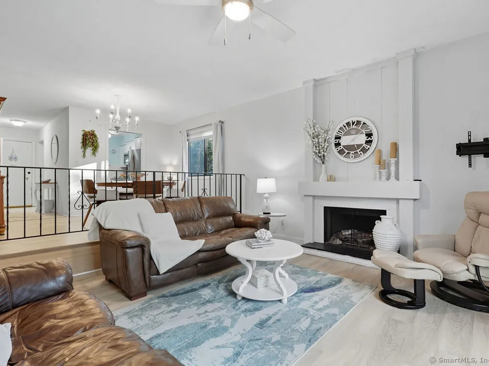 Step inside this inviting condo nestled in a peaceful Southington neighborhood surrounded by trees, walking paths, and serene ponds that make daily strolls a joy. The split-level layout creates a warm flow between the living and dining areas, enhanced by large glass doors that allow sunshine to brighten nearly every corner of the home. The living room offers a cozy spot to unwind by the fireplace or step through the sliding doors to a private back patio overlooking the greenery. The kitchen features stainless steel appliances, butcher block countertops, and plenty of cabinet space, opening nicely to the dining area-perfect for casual meals or gatherings. Upstairs, the primary suite and 2nd bedroom include a balcony where you can enjoy your morning coffee in peace. Spring Lake Village is a 55+community with lots of amenities such as pool, bocce, clubhouse, tennis and pickleball. Convenience is all around with nearby shops, restaurants, medical offices, and the hospital just minutes away, offering a comfortable balance of nature and accessibility.