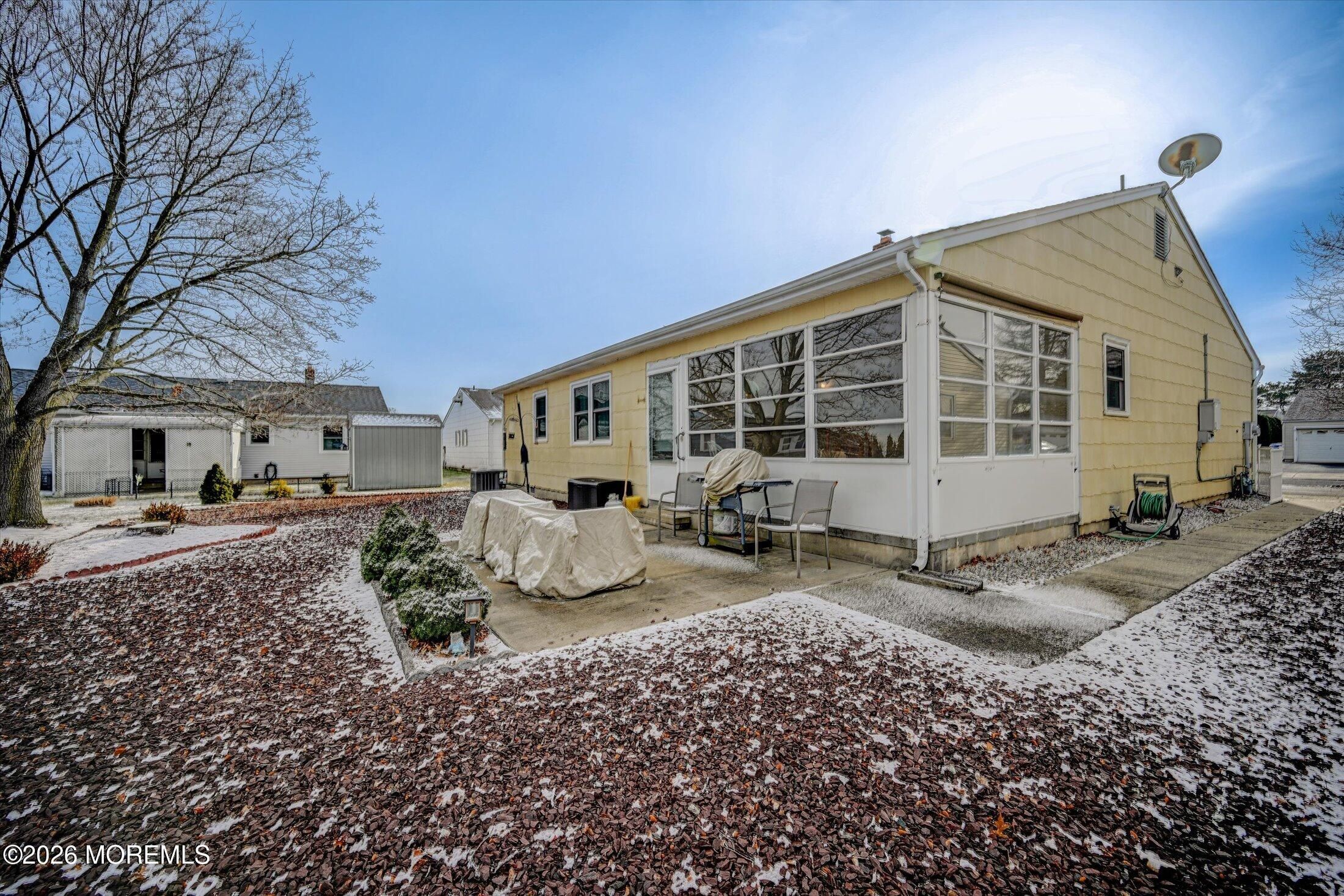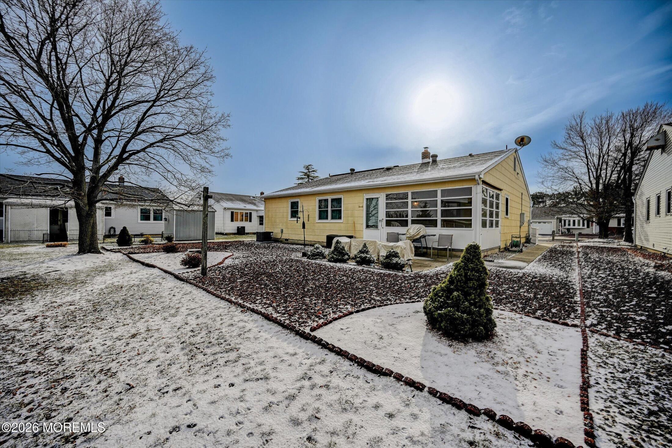 Silver Ridge North, the Yorkshire model! This property is located in an Adult Community & offers affordable living. This home has been well maintained by the same owners for over 20 years. Outside you will have an oversized driveway, front porch, and large patio in the backyard. In addition, the home has solar panels for low-cost electricity. The interior features an open layout with a living room & dining room leading to the den/family room. Off the kitchen is a sunroom that leads to the backyard. The one car garage has attic access and a washer/dryer. There are two large bedrooms, two full baths & a primary suite featuring its own bathroom. Come and see all this space for your next journey in life!