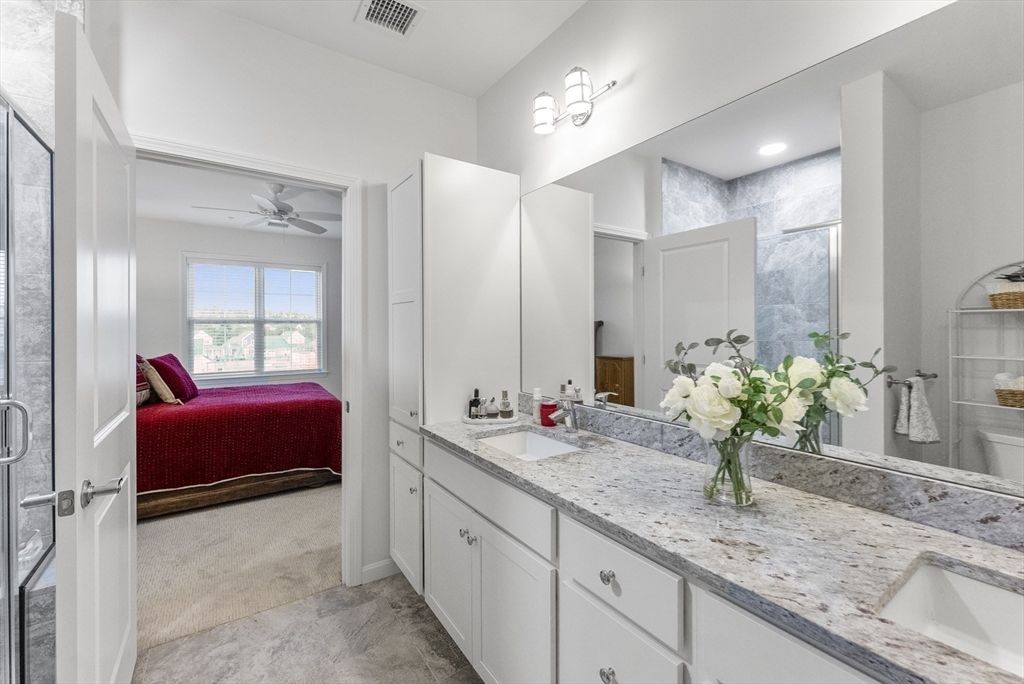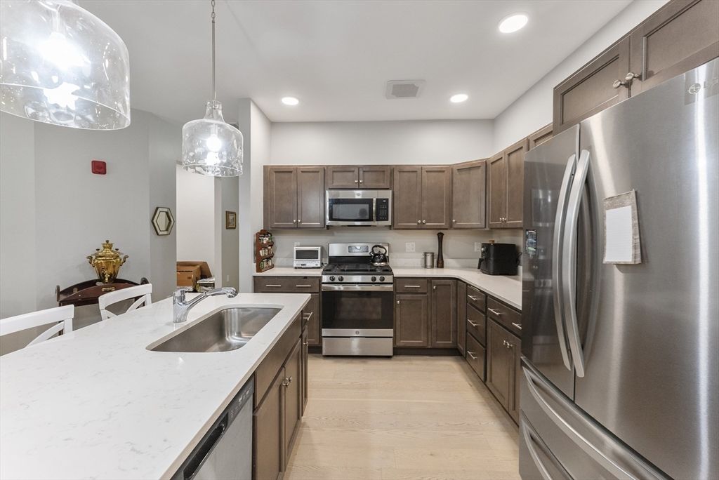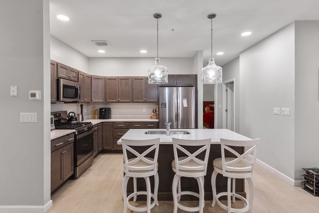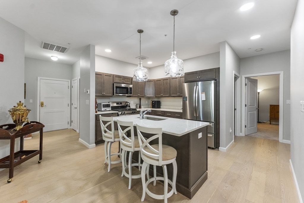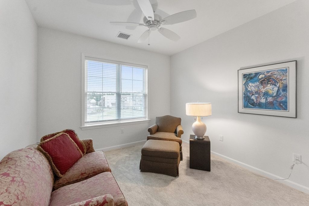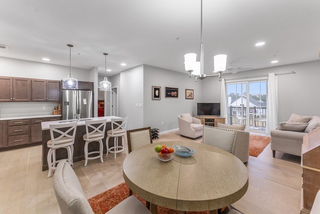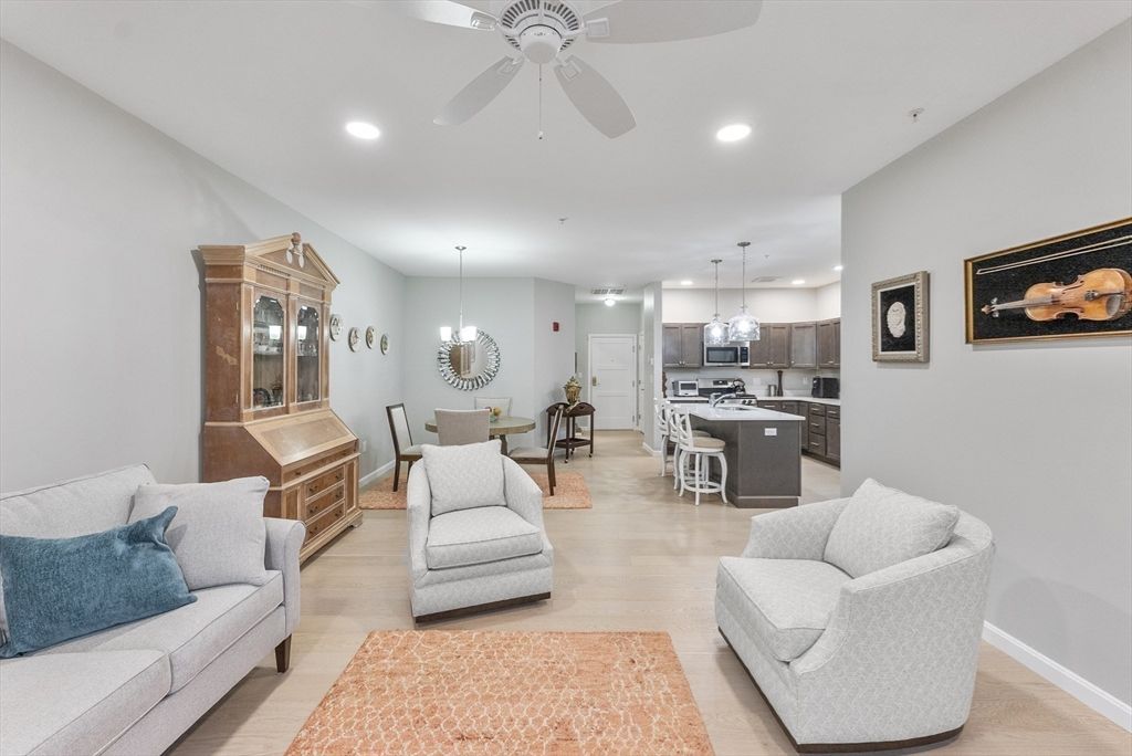 Stellar 2-bedroom, 2-bath top-floor condo with 9-foot ceilings, den or office, and full sunny balcony at sought-after Sawyers Reach – a 55+ community. Easy access from your elevator to building’s roof deck with outdoor kitchen, gas fire pit & cozy seating. Open-concept kitchen with Quartz countertops & island. Main bedroom has spacious walk-in closet, and tiled bath with double sinks. Deeded garage & outdoor parking. Town water and sewer. Pet friendly. Enjoy Sawyers Reach with its impressive clubhouse, fitness center, heated outdoor saltwater pool, Victory garden & walking trails. Discover plentiful shops, grocery stores, dining and more steps away at Colony Place. Highway access to Plymouth’s nearby historic, hip downtown & waterfront and area beaches.