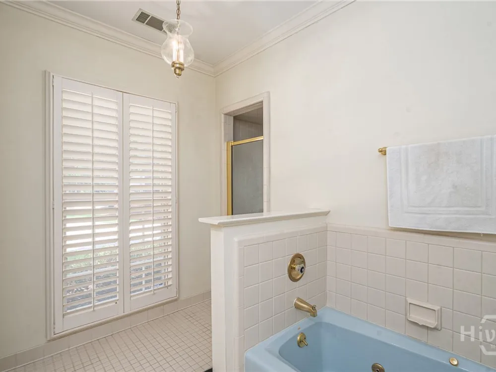 - Breakfast Area, Bathtub, Ceiling Fan(s), Double Vanity, Entrance Foyer, Fireplace, High Ceilings, Kitchen Island, Main Level Primary, Pantry, Pull Down Attic Stairs, Recessed Lighting, Separate Shower
