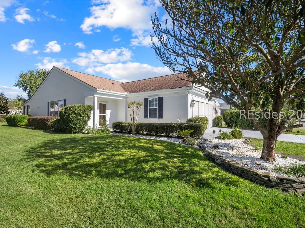 Nestled on a corner lot, this Bayberry model with lush landscaping has 2 bedrooms, 2 updated baths and is ready to move in with many attractive features including the sunroom off the kitchen. The great room has a wall full of windows letting in the natural light and overlooks the pass through into the kitchen which includes plenty of space for dining. The kitchen cabinets are newly refinished and most of the appliances are newer. Sliding glass door leads to the Sunroom which can now be used year-round and offers views of lush landscaping. The primary bedroom overlooks the back yard for privacy and leads into the remodeled bathroom with double vanities and walk-in shower. The closet has plenty of space and shelving. The second bedroom is at the front of the home and has a nice-sized closet and the guest bath is close by. There is an utility room for the washer and dryer and this leads to the 2-car garage which has numerous built-ins that create a workspace and wonderful storage. Enjoy this 55+ gated, community which has so many things to offer. Some of the sports include bocce ball, swimming in one of the 5 pools, golfing on one of the 3 18-hole courses, tennis, pickleball, the softball club or just enjoy walking the leisure trails through the community or working out. Or perhaps you have a more creative side which might include the stain glass studio or photography studio just to mention a few - there are more than 150 groups and clubs waiting for you and there is always something. Don't miss the on-site restaurants.