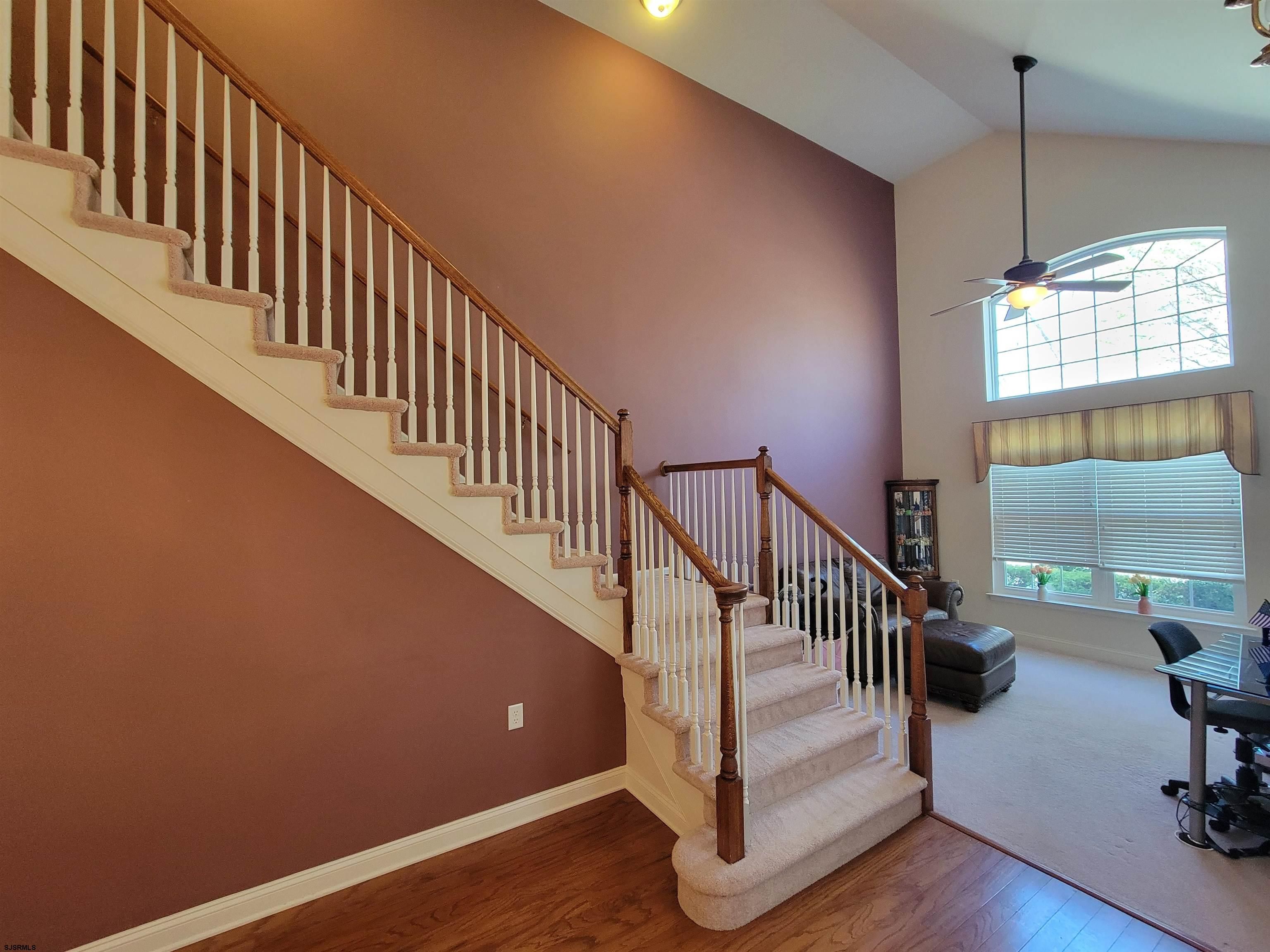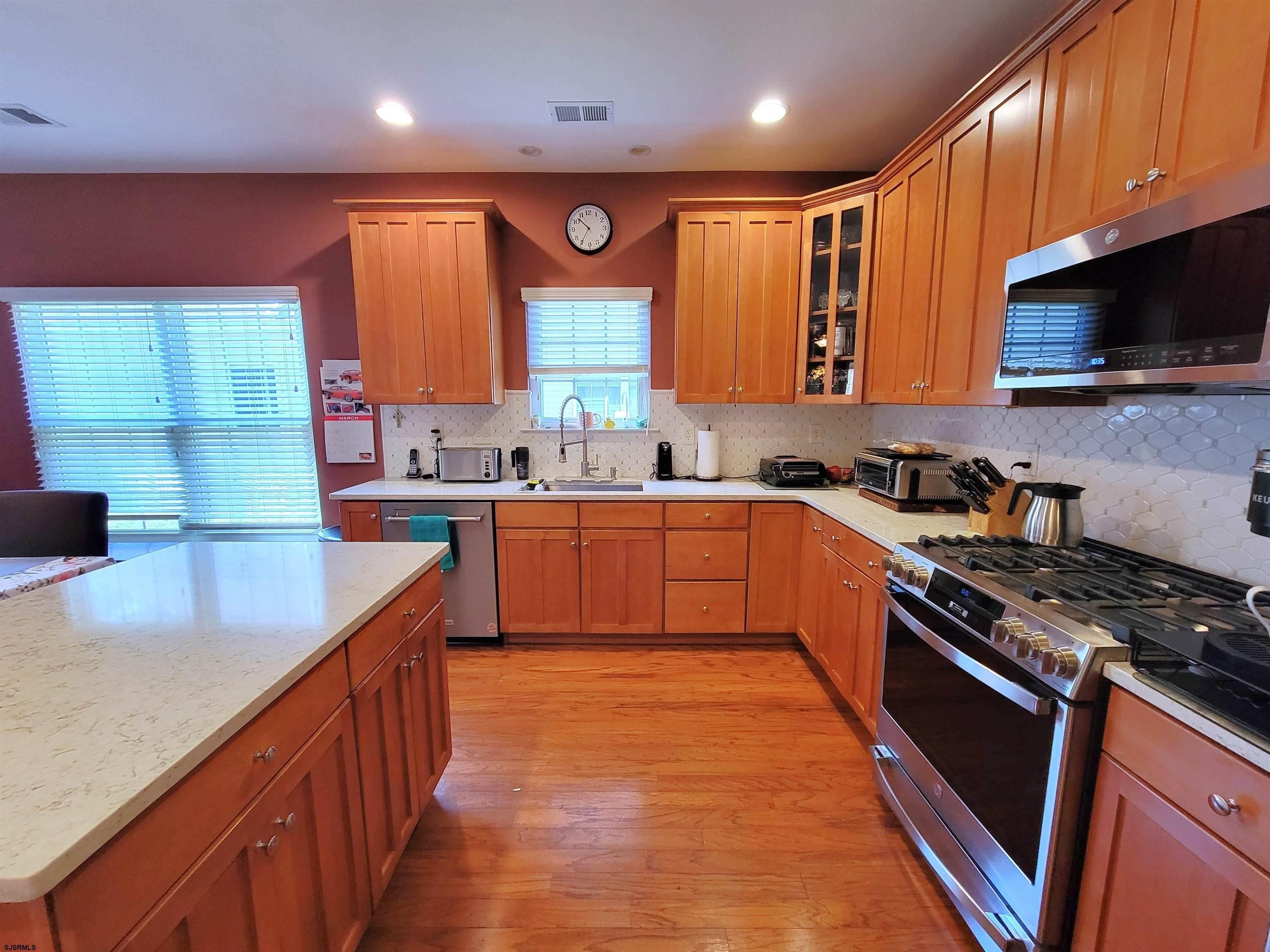 Welcome to easy living in this beautifully updated home located in the desirable 55+ community of Village Grande at English Creek in Egg Harbor Township. Perfectly situated near shopping, dining, local parks, and just a short drive to the beaches, this home offers both convenience and a vibrant lifestyle. Step inside to find stunning hardwood flooring throughout and a host of recent upgrades, including new appliances, modern countertops, and a stylish backsplash that enhances the kitchen’s appeal. Comfort and efficiency are top of mind with a new HVAC system and 10 newly installed windows that fill the home with natural light. The thoughtfully designed layout features a first-floor primary suite, offering both privacy and ease of living. Upstairs, you'll find two very large bedrooms and another full bath. There is also a flex space downstairs - perfect for a home office, craft room, or library. You'll enjoy the sun porch room that opens to an awning-covered back patio—perfect for relaxing or entertaining—and a dedicated gas line for your BBQ grill. An attached two-car garage offers convenience, and there is also additional parking for two more cars in the driveway. Enjoy resort-style amenities at the 10,000 s.f. clubhouse including indoor and outdoor pools, tennis and pickleball courts, a billiards room, a card room, a fully equipped gym, and a relaxing sauna. This home combines modern upgrades, low-maintenance living, and an active community lifestyle—don’t miss your opportunity to make it yours!