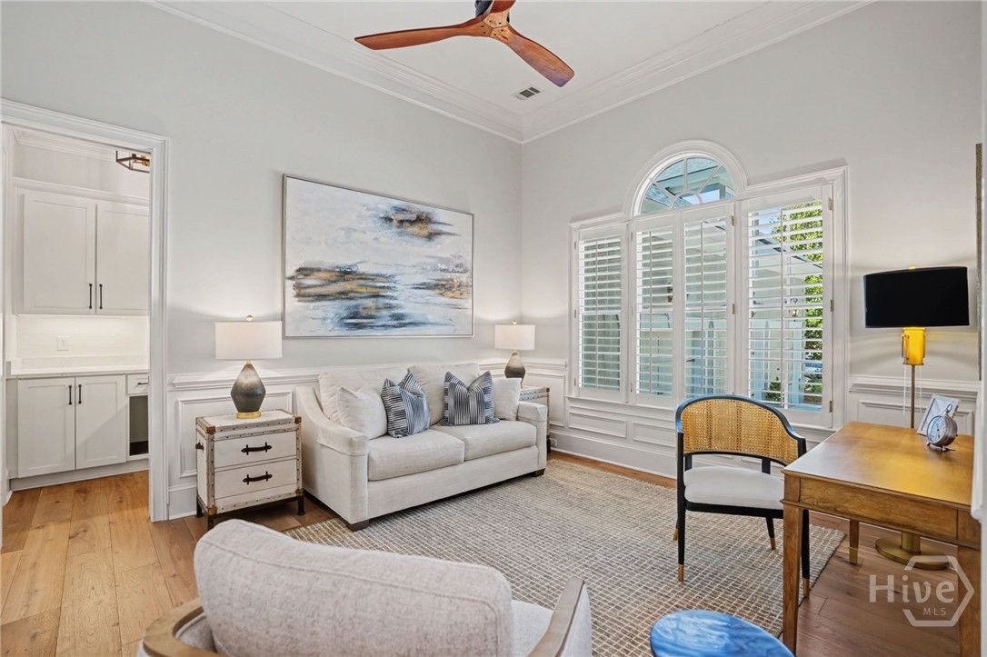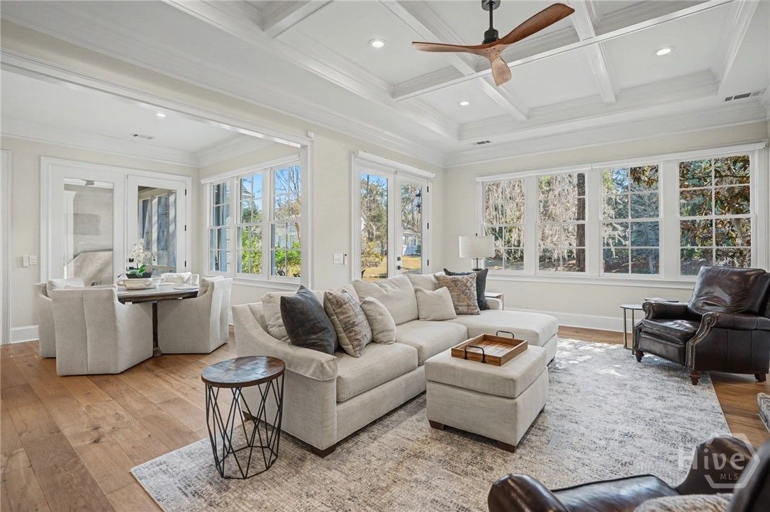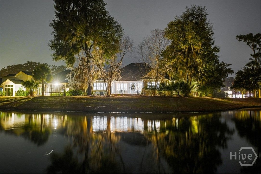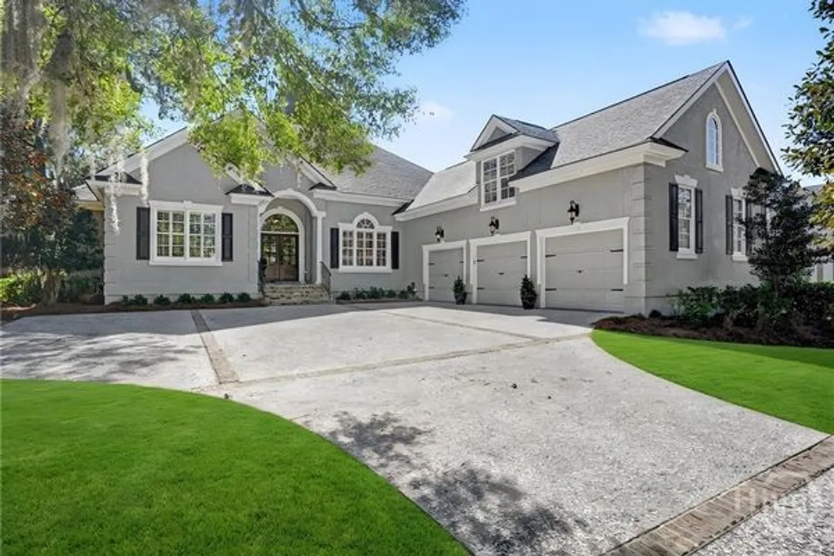 Located in the coveted Moon River section of The Landings, this beautifully renovated hard coat stucco home offers tranquil lagoon views with peekaboo views of the Intracoastal Waterway. No expense was spared in this designer-level renovation of the 4-bedroom, 4.5-bath residence with 3 car garage. Every detail of this home has been thoughtfully reimagined and meticulously upgraded. Blending timeless finishes with modern convenience, 1 Riverwatch Lane offers the rare opportunity to move in and immediately enjoy elevated design, smart functionality, and exceptional craftsmanship throughout. The thoughtfully designed floor plan features three spacious bedrooms with en suite baths on the main level and a private upstairs guest suite. Wide plank hardwood floors, marble-surround fireplace, custom built-ins, and designer lighting enhance the open living spaces, while the renovated kitchen with inlaid custom cabinetry and bathrooms showcase high-end finishes and modern functionality. Situated on a peaceful lagoon lot in one of The Landings’ most desirable neighborhoods, this home offers refined, move-in ready coastal living. Homes with this level of renovation and setting in Moon River rarely become available.