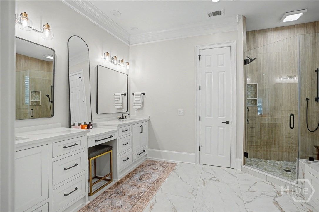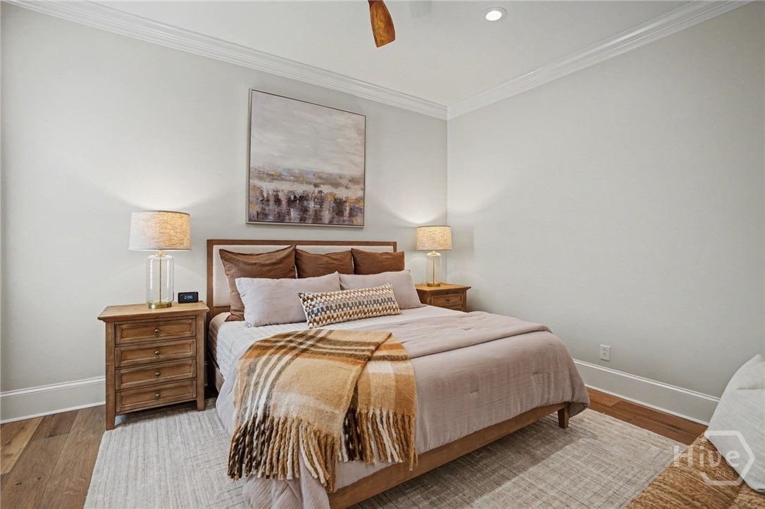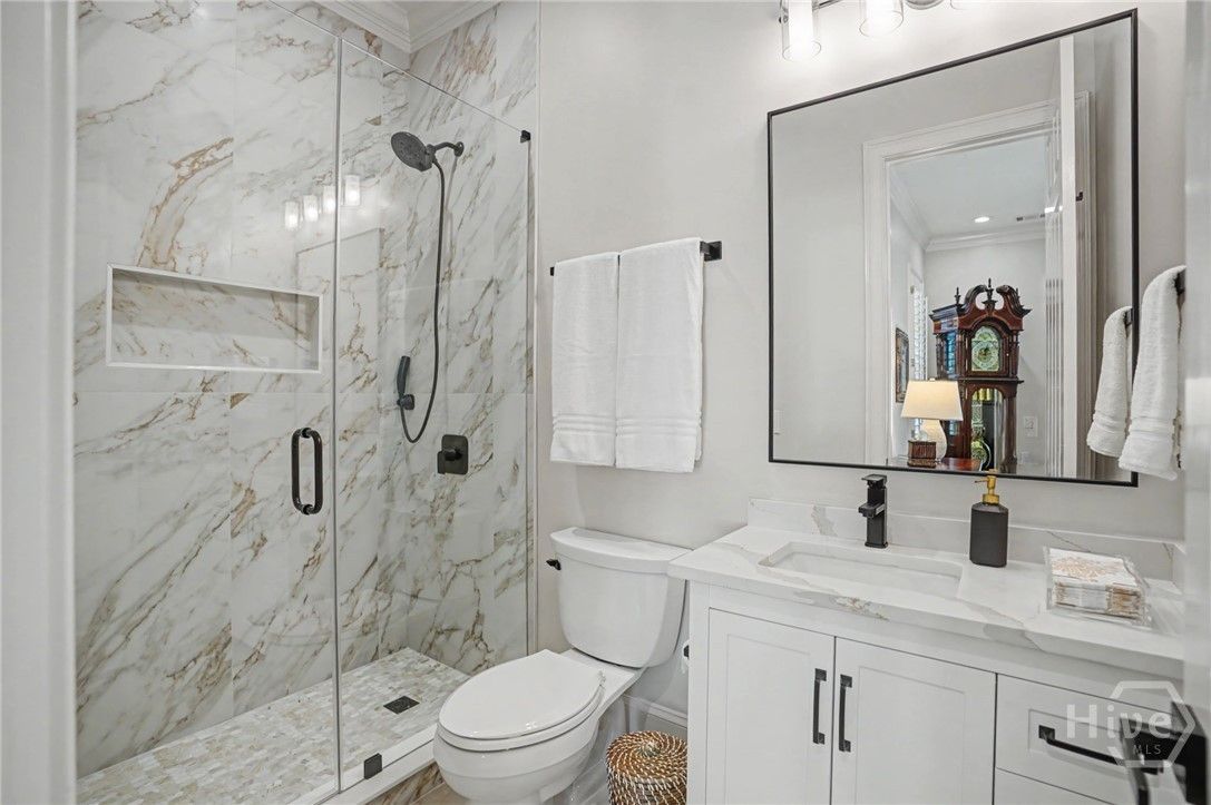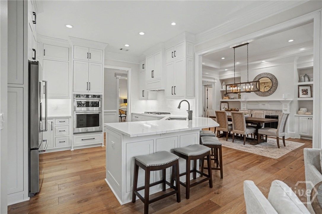 Located in the coveted Moon River section of The Landings, this beautifully renovated hard coat stucco home offers tranquil lagoon views with peekaboo views of the Intracoastal Waterway. No expense was spared in this designer-level renovation of the 4-bedroom, 4.5-bath residence with 3 car garage. Every detail of this home has been thoughtfully reimagined and meticulously upgraded. Blending timeless finishes with modern convenience, 1 Riverwatch Lane offers the rare opportunity to move in and immediately enjoy elevated design, smart functionality, and exceptional craftsmanship throughout. The thoughtfully designed floor plan features three spacious bedrooms with en suite baths on the main level and a private upstairs guest suite. Wide plank hardwood floors, marble-surround fireplace, custom built-ins, and designer lighting enhance the open living spaces, while the renovated kitchen with inlaid custom cabinetry and bathrooms showcase high-end finishes and modern functionality. Situated on a peaceful lagoon lot in one of The Landings’ most desirable neighborhoods, this home offers refined, move-in ready coastal living. Homes with this level of renovation and setting in Moon River rarely become available.