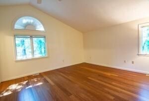 If you are looking for a duplex condo with private driveway and beautiful mature landscaping on a quiet cul de sac that will make you smile - you've just found it! This Provincetown unit is ready. Open the front door into this end unit with soaring ceilings, privacy and everything on one floor. You will find a sunny kitchen with corian countertops, tile backsplash, gas range, and loads of cabinet space. The living room/ dining room has a gas fireplace, built ins, and a door to a private deck for evening dining, or entertaining. Off of the great room you will find a hallway with first floor laundry, a primary bedroom suite, a second bedroom and another full bath with walk in shower. The primary also has cathedral ceilings with a Palladian window and private views. There is a walk in closet and a full bath. The basement is clean and clear and just waiting for your creative input. Upland Circle is centrally located not far from tennis courts, the clubhouse, indoor and outdoor pools and