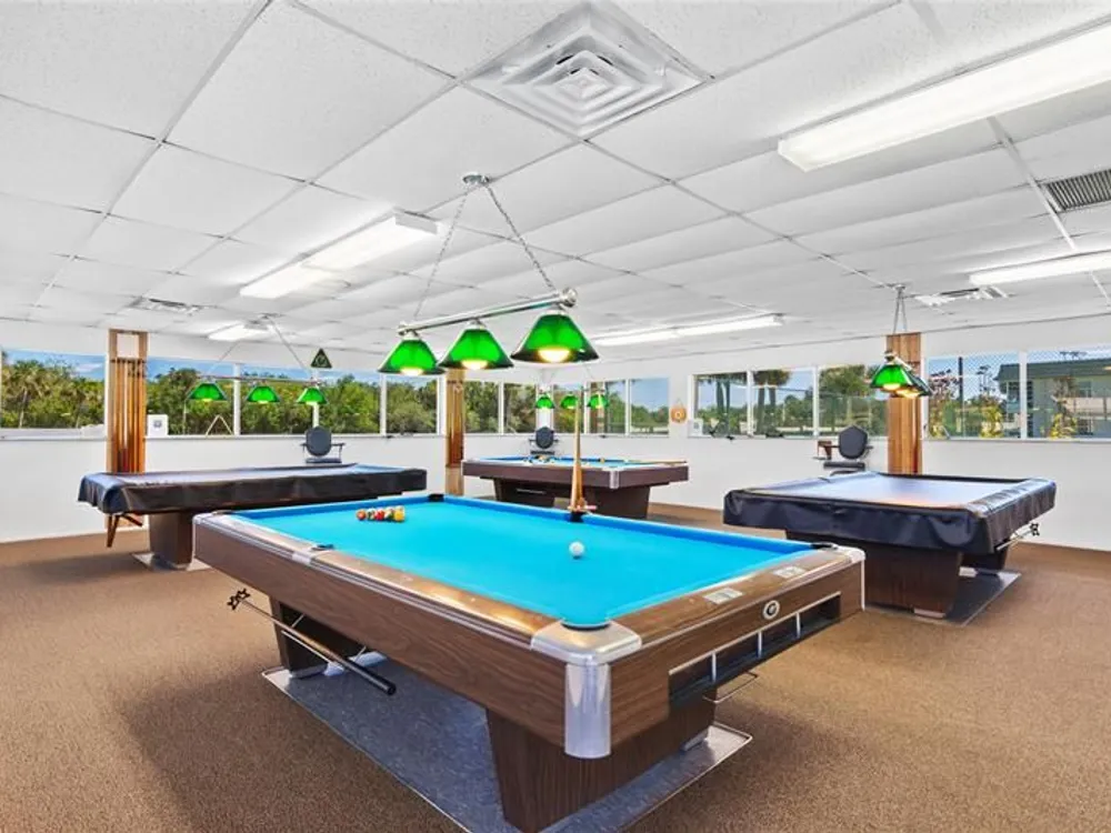 - Includes: Billiard Room, Clubhouse-Clubroom, Community Room, Fitness Center, Heated Pool, Hobby Room, Kitchen Facilities, Library, Other Amenities, Pickleball, Shuffleboard, Spa/Hot Tub, Tennis