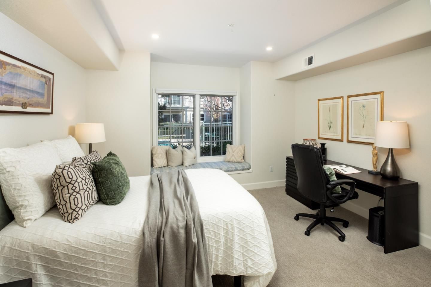 Turn the key and move right in to this ground-level condominium at the luxury Parc Regent community for active senior living. The homes location within the community is ideal, just down the hall from the buildings secure entrance and from the Regency Room where continental breakfast is offered on weekdays and residents gather for community events. The entire home is light and bright and beautifully remodeled amid an open concept floor plan with private patio looking out to the pool and spa. Gleaming hardwood floors, crown moldings, and recessed lighting add timeless design elements. The kitchen is beautifully appointed with honed quartzite countertops, including breakfast bar seating that connects with the living area. Just off the foyer is a large office/den that doubles as a guest room across from a full bath, while the primary suite is tucked at the rear of home with its own en suite remodeled bath. In-unit laundry, underground parking, assigned storage closet, plus a gym and community garden are added amenities. With a location just across from the Los Altos Village, this home is ever so convenient and the perfect place for active senior living.