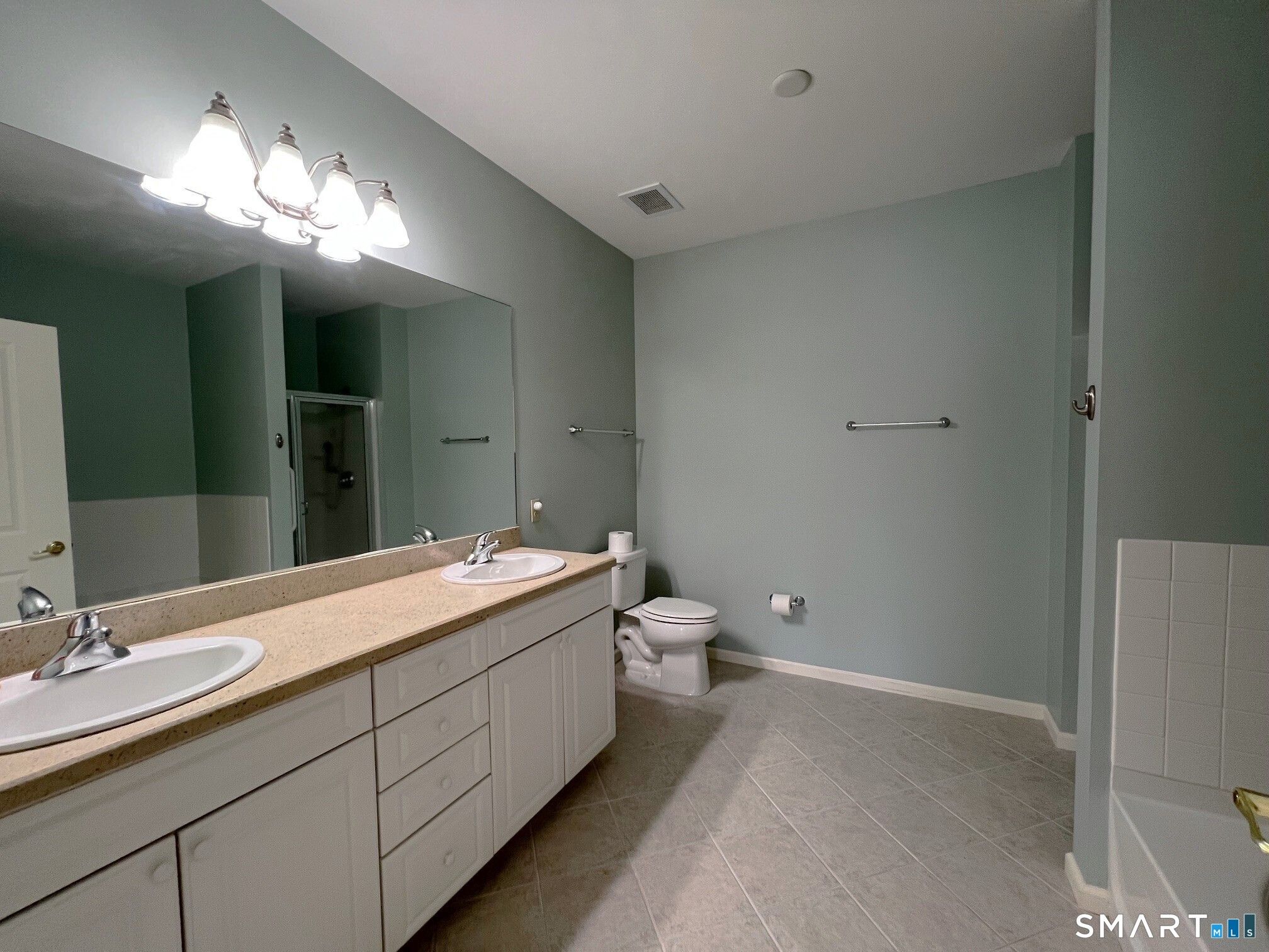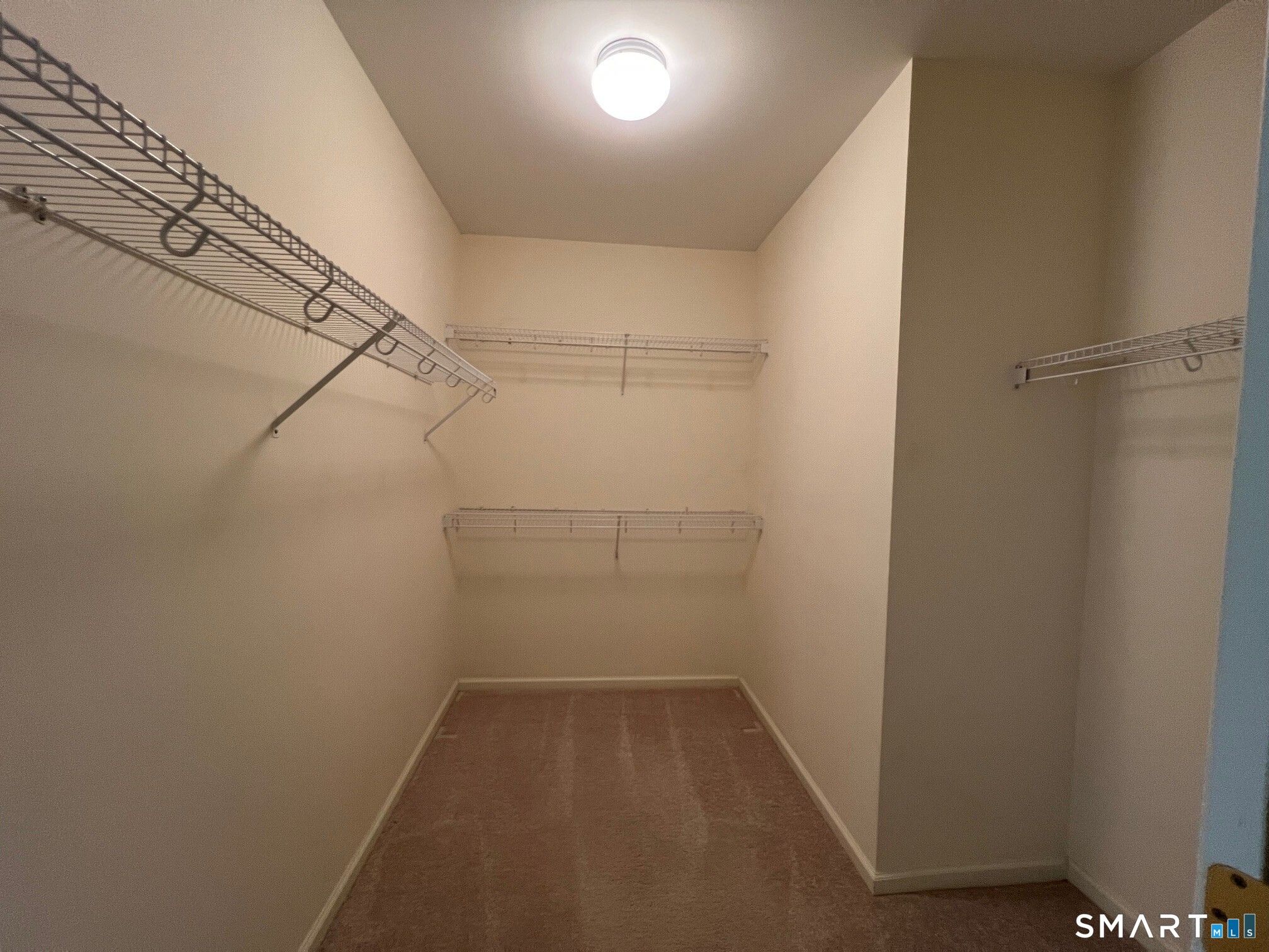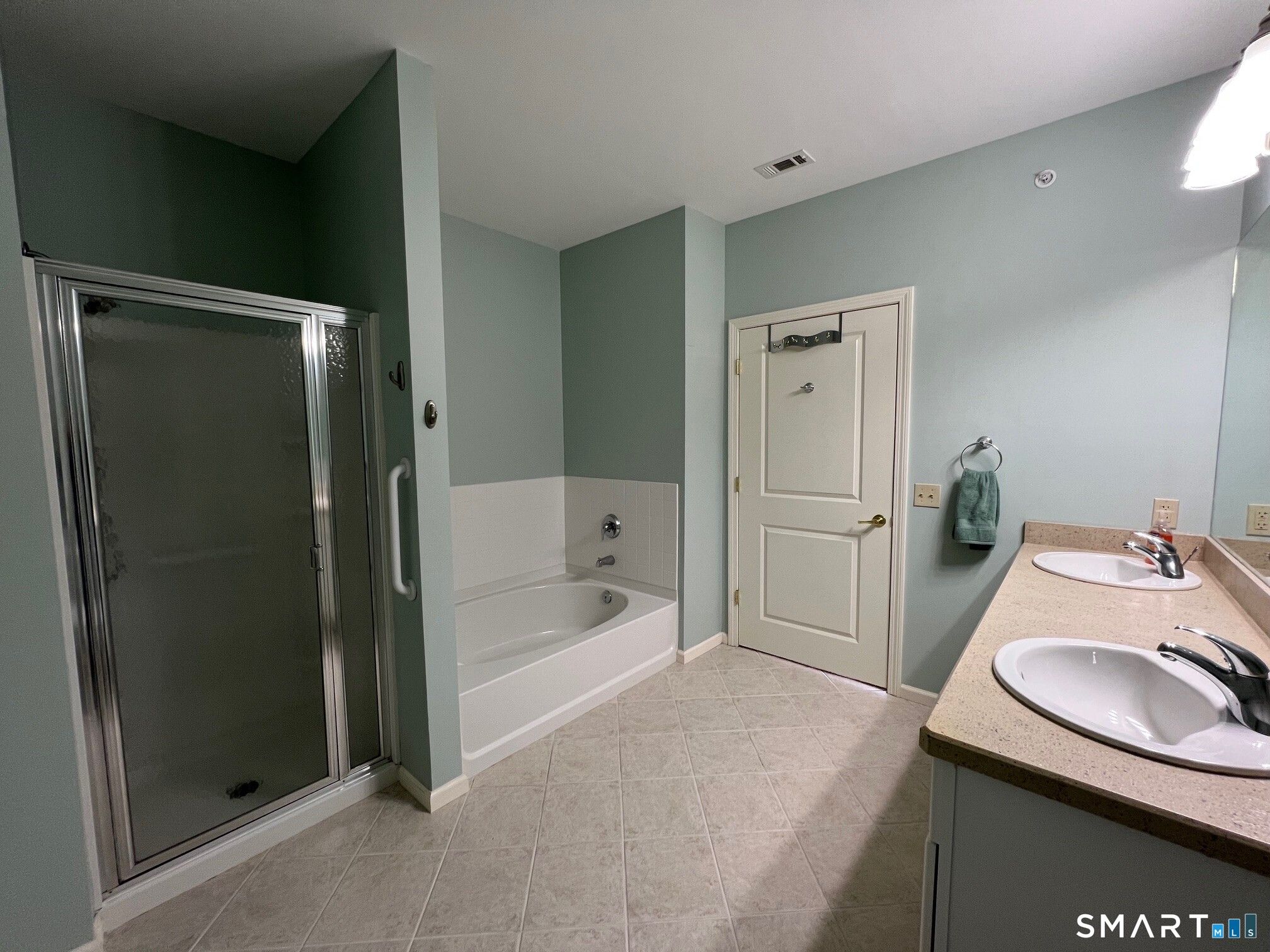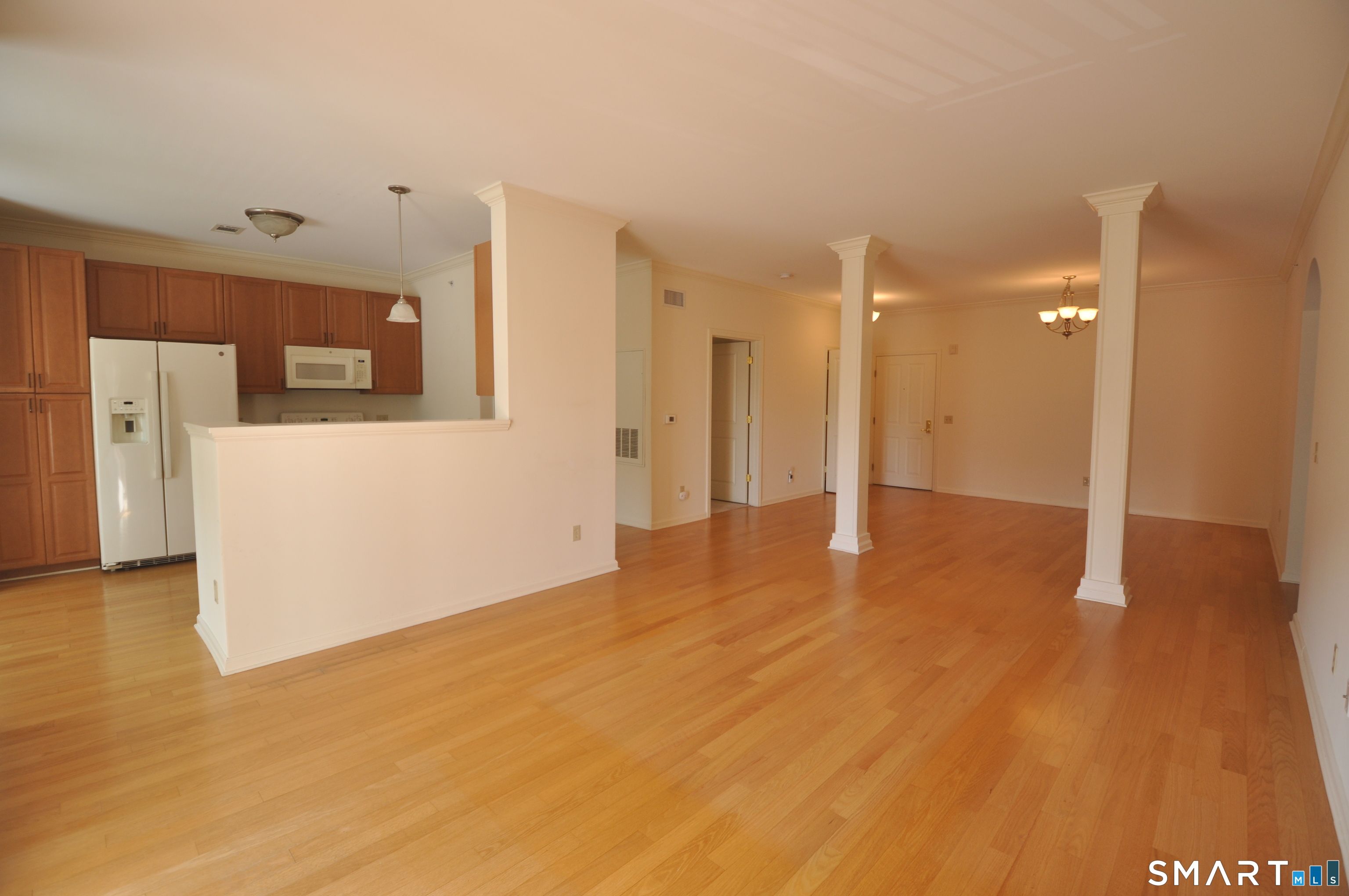 Don't miss this chance to own in Hopmeadow Place, Farmington Valley's sought-after 55+ community. Beautiful hardwood floors highlight the open floor plan of this sparkling unit. The large, newly carpeted Master Bedroom Suite features a spacious walk-in closet, double sink vanity, walk-in shower, and soaking tub. The roomy second bedroom offers extra storage in its walk-in closet, plus there's a second full bathroom in the hallway. Enjoy meals with a view of Talcott Mountain from the breakfast nook's picture window or your private balcony. The fully equipped kitchen has granite countertops and a handy pull-out pantry. A separate laundry room includes a full-size washer and dryer. Two indoor garage parking spaces are reserved for you, along with a storage unit. Socialize with neighbors while watching sports on TV, gathering for morning coffee, playing cards or bingo, or enjoying any activity you like in the community rooms. The lounge features a gas fireplace and a full kitchen with plenty of seating for events. You'll find a library, fitness center, and a large furnished patio with a grill that makes entertaining easy. Located in downtown Simsbury, you are close to grocery and drug stores, medical offices, restaurants, nature trails, the Farmington River, places of worship, the town library, and Simsbury Meadows, which hosts the Hartford Symphony in the summer. Golf, tennis, and swimming pools are nearby at Simsbury Farms Recreation facility.