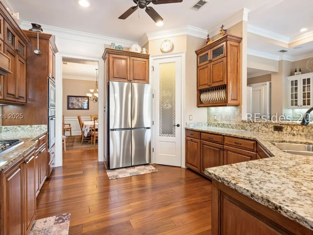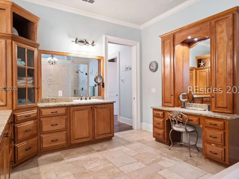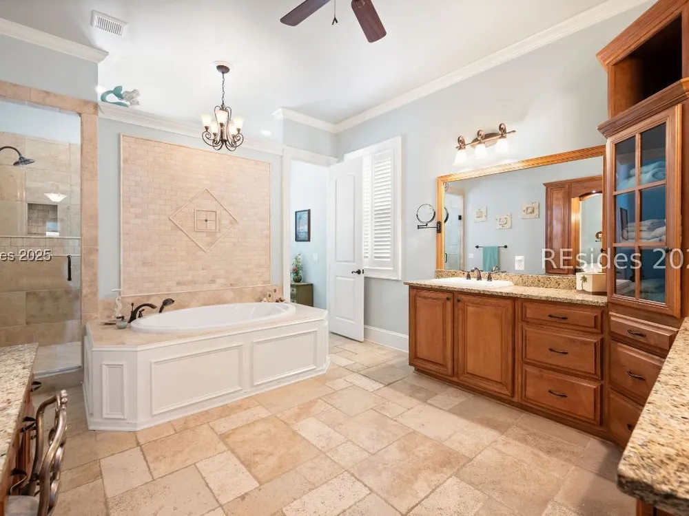 - Attic Access, Bookcases, Built-in Features, Tray Ceiling(s), Ceiling Fan(s), Main Level Primary, Multiple Primary Bathrooms, Smooth Ceilings, Separate Shower, Unfinished Wall(s), Window Treatments, Central Vacuum, Entrance Foyer, Eat-in Kitchen, Pantry