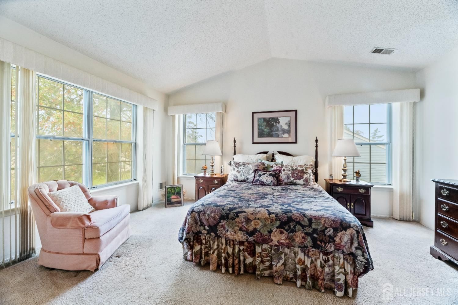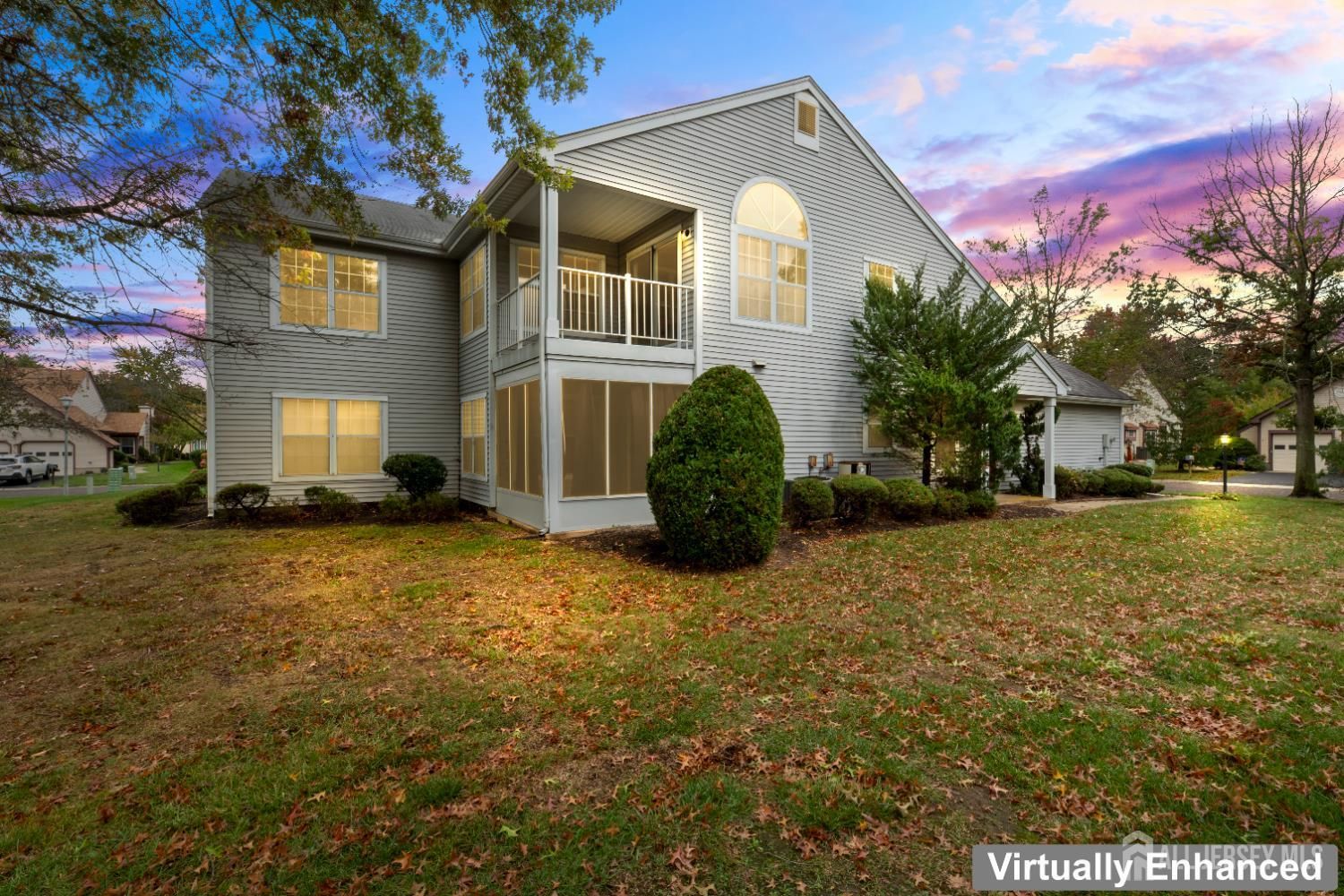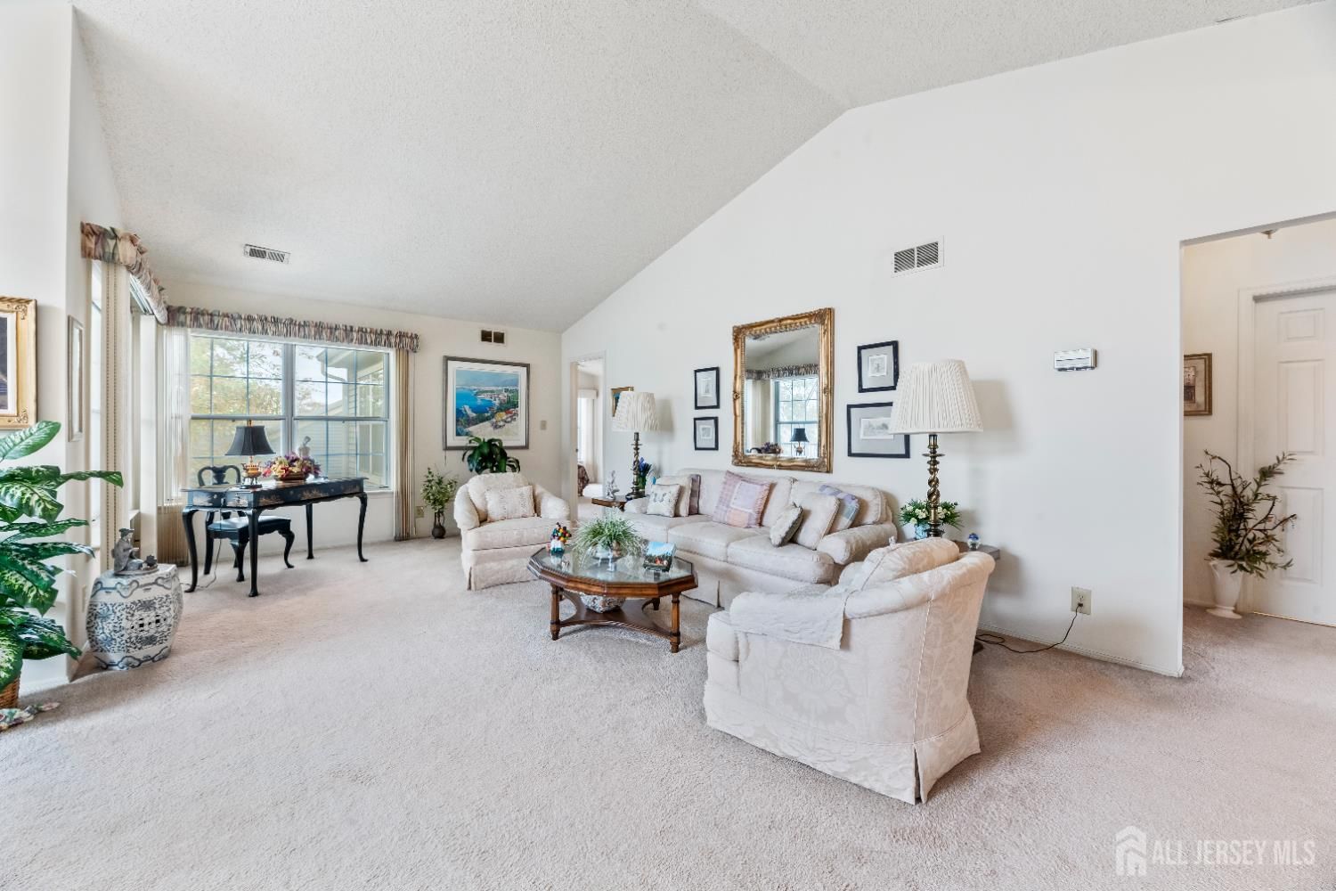 55+ Adult Community. Welcome to this stunning penthouse in the highly sought-after Concordia 55+ Adult Community. This light-filled home features soaring cathedral ceilings and an abundance of windows that bathe the space in natural sunlight. Unwind in the spacious living room, entertain in the formal dining area, and cook with ease in the inviting eat-in kitchen. The expansive primary suite features a large closet and an ensuite bath with dual sinks, a soaking tub, and a separate shower stall. A generously sized second bedroom sits adjacent to another full bath, ideal for guests or additional living space. A sliding glass door from the dining room leads to a lovely balcony-perfect for relaxing with your morning coffee. You'll also enjoy the convenience of a den or office space and a dedicated laundry room. Enjoy resort-style living with access to Concordia's impressive amenities, including a clubhouse, fitness center, indoor and outdoor pools, scenic paths and biking trails, and so much more! Plus, you'll love the easy access to Route 33, shopping, dining, and recreation.