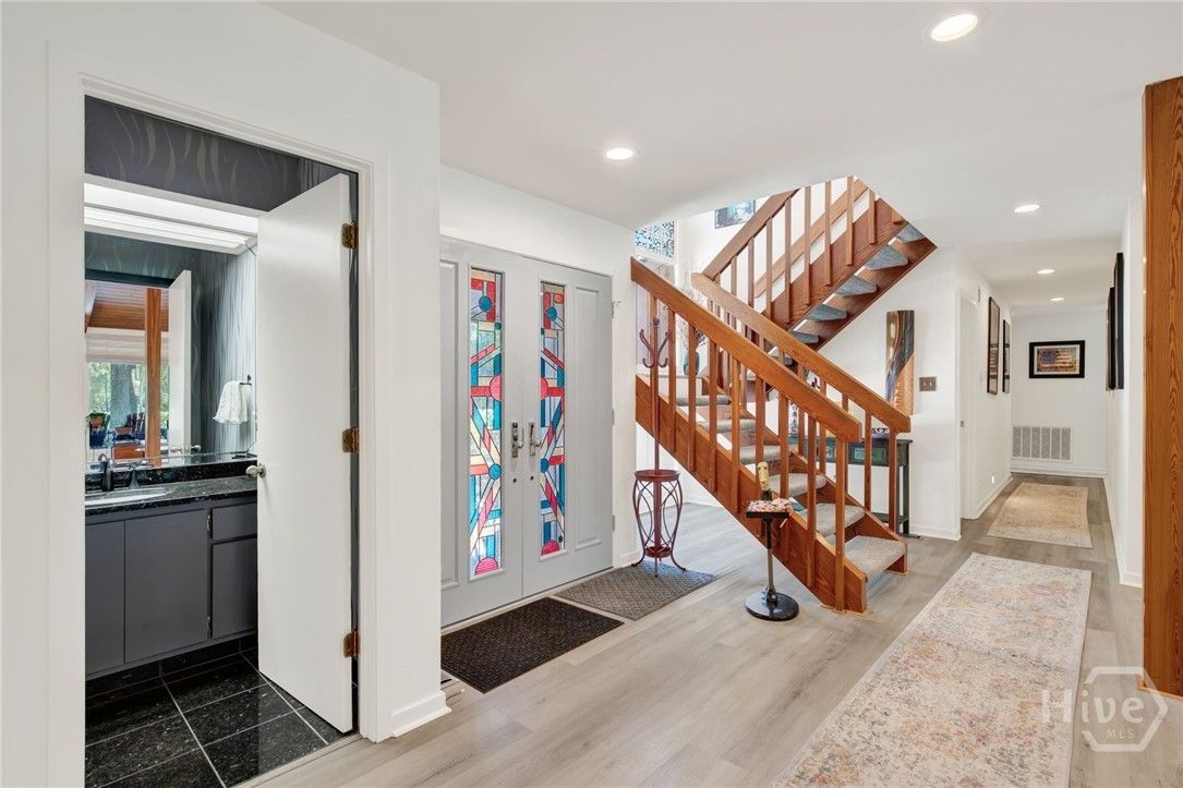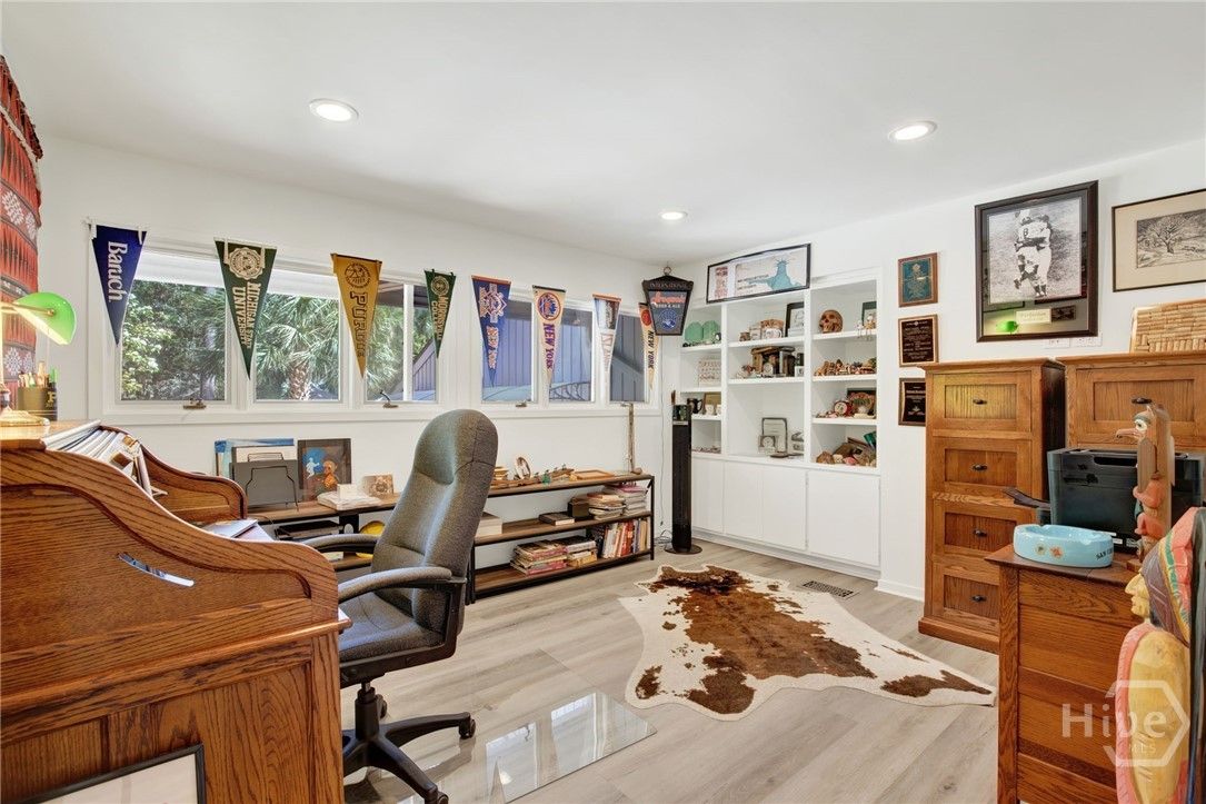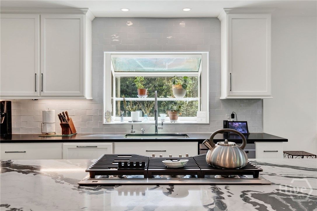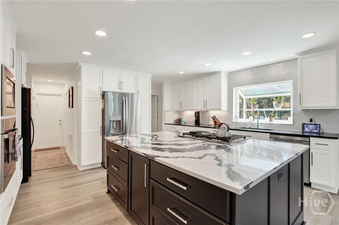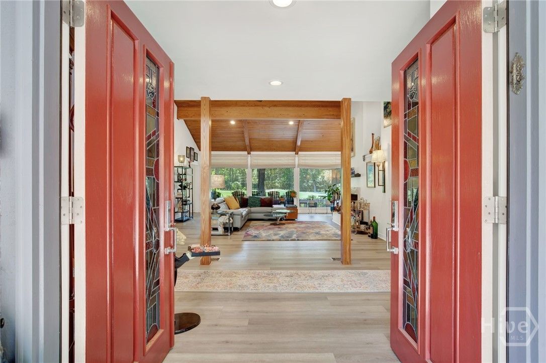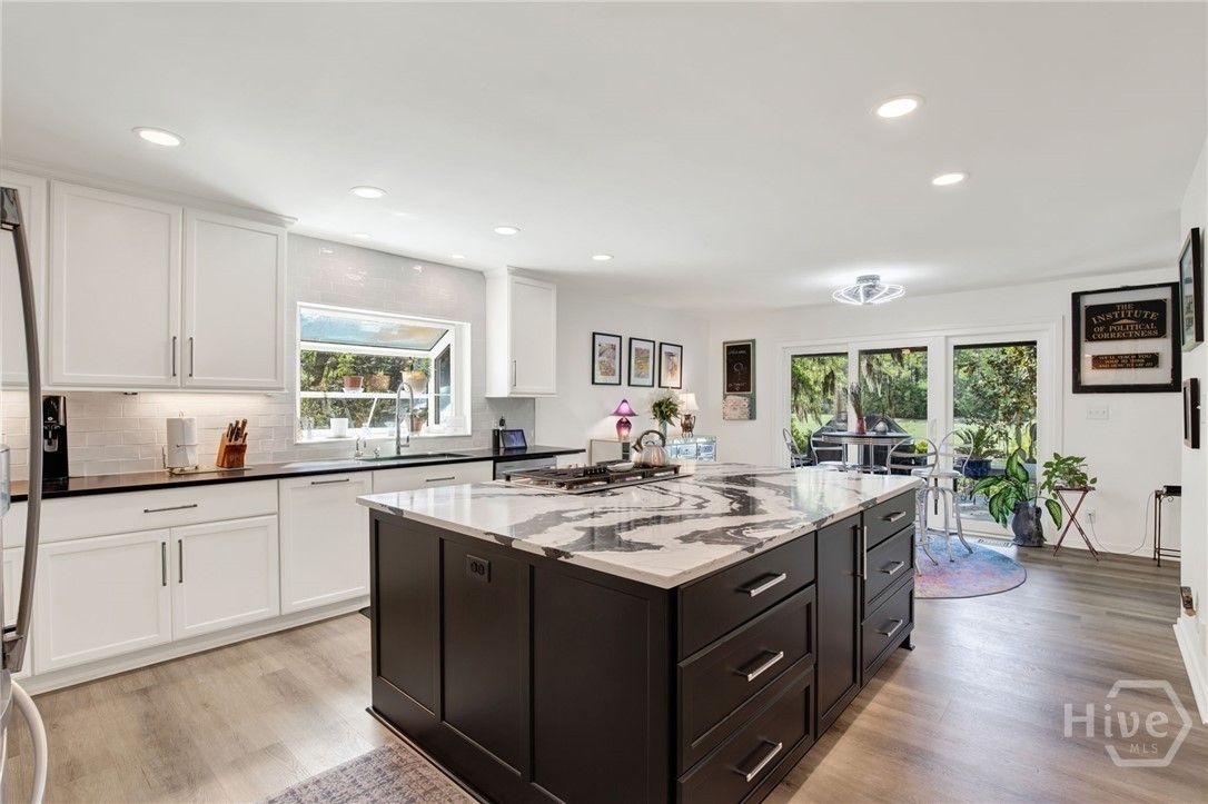 This is where life gets better! Located in The Landings, within minutes of Marshwood main gate and club. This exceptional 4BR/4.5BA contemporary home offers over 4,000 sq ft of thoughtfully designed living with stunning panoramic views of the lagoon, Magnolia Golf Course, and a private heated in-ground pool. Designed for both entertaining and everyday comfort, the open floor plan creates the perfect balance of shared spaces and private retreats. The main-level owner’s suite features a fully renovated spa-like bath with double vanities, soaking tub, and a dream walk-in closet, plus a den or oversized office. Upstairs, three additional bedrooms and two full baths provide plenty of room for guests or family.Recent upgrades include a brand-new roof, engineered wood flooring, updated fixtures, redone staircase, and recently updated appliances with a gas cooktop. Skylights fill the home with natural light, while a wet bar enhances the entertaining experience. The fully conditioned two-car garage includes a dedicated workspace, ask for a detailed renovation sheet which highlights the extensive improvements throughout. This is luxury Landings living at its finest—offering space, style, and unbeatable views. *Some amenities require extra membership