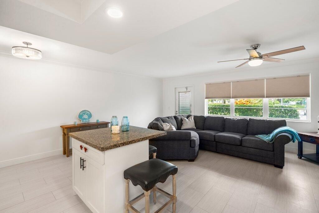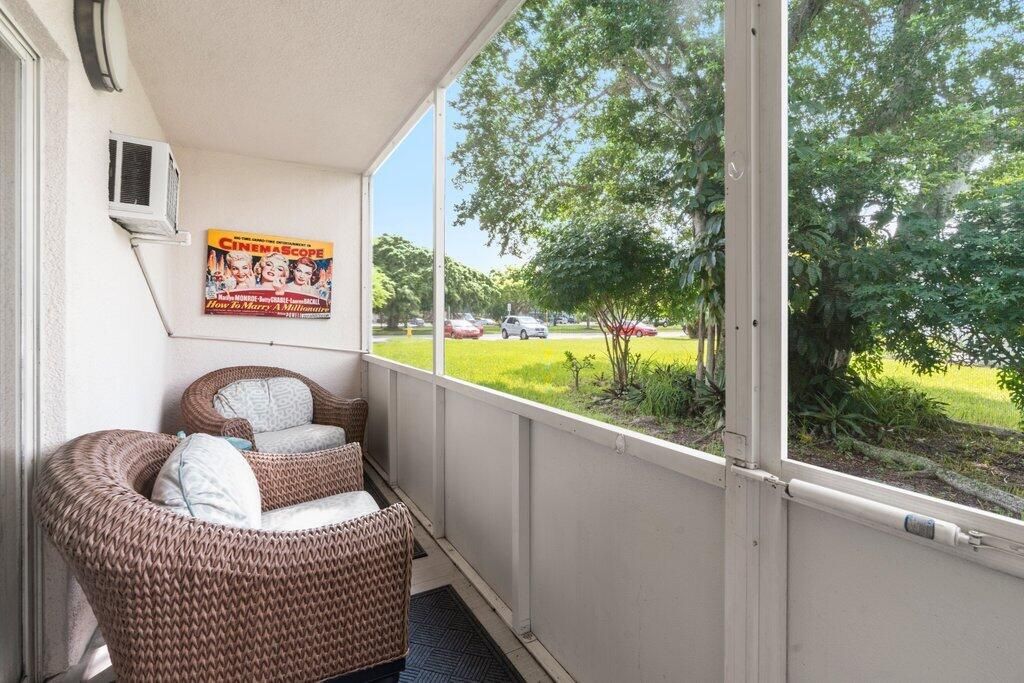 This beautifully updated 1-bedroom, 1.5-bathroom condo (55+) is move-in ready and packed with upgrades. Step into a bright, open kitchen featuring white cabinets, granite countertops, a stylish tile backsplash, recessed lighting, stainless steel appliances, and an island perfect for entertaining.Throughout the home, you'll find detailing such as crown molding, smooth ceilings, and ceramic tile floors that enhance the light and airy feel. The bathrooms have been tastefully updated with modern tile, recessed lighting, and a sleek glass-enclosed shower, & more.Just steps from the pool and East Gate, and minutes to beaches, shopping, and dining.Resort living at Century Village includes a theater, gym, indoor & outdoor pools, pickleball, tennis, & more!