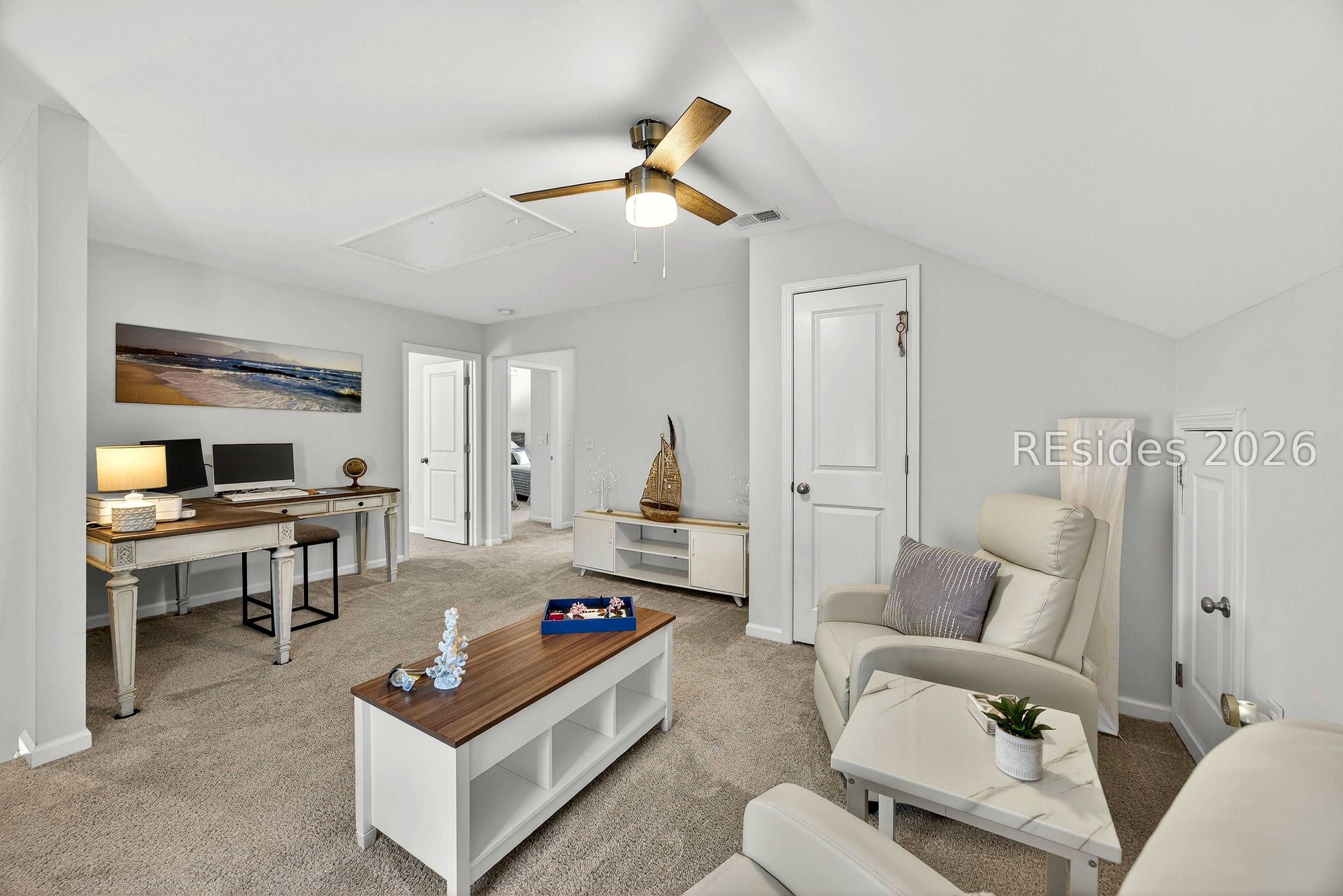 - Ceiling Fan(s), Main Level Primary, Pull Down Attic Stairs, Smooth Ceilings, Pantry