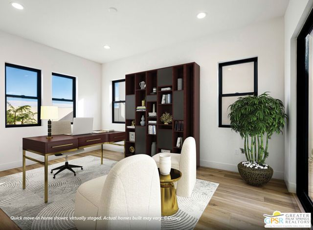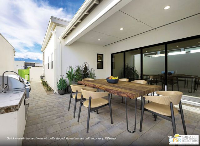 Welcome to Cotino, a Storyliving by Disney community, located in Rancho Mirage. Nestled in the serene Longtable Park section of the community, this exquisite 2-bedroom, 2.5-bathroom home (Atelier) by Shea Homes is thoughtfully designed for those 55+ who seek a harmonious blend of luxury and tranquility. Offering approximately 2,262 square feet, this residence will allow you to experience resort-style living inside the private gates of Cotino. An open front courtyard warmly welcomes you to the home, leading to a stunning one-level floor plan that's perfect for entertaining. The spacious great room and dining area flow effortlessly into a wrap-around outdoor living space, ideal for relaxing or hosting gatherings. The kitchen boasts a large central island and chef-quality appliances, making meal preparation a delight. The primary suite serves as a luxurious retreat with a spacious bath and direct access to a secondary private outdoor living space, creating the perfect personal oasis. The split layout ensures privacy for the second bedroom, which includes its own en-suite bath. Additional conveniences include a flexible space on the first floor can be tailored to your lifestyle needs perfect for an office or studio overlooking the outdoor areas. Cotino combines natural beauty, charming parks, and the magic of Disney to create a unique and vibrant community, perfect for beginning your next chapter. Come see for yourself and experience all that this exceptional community has to offer.
