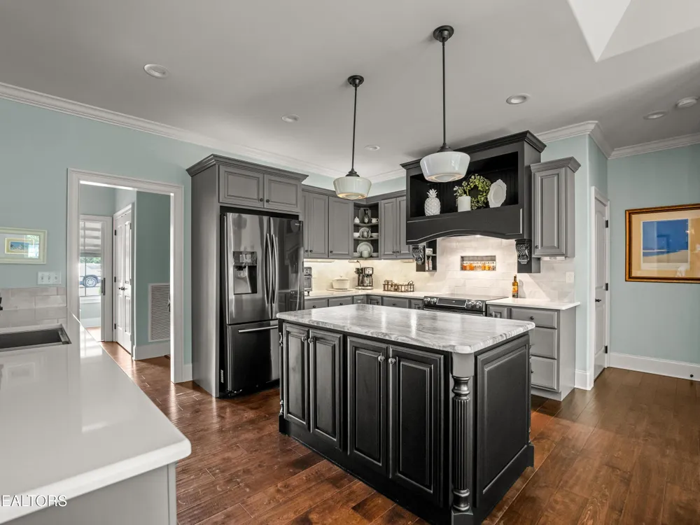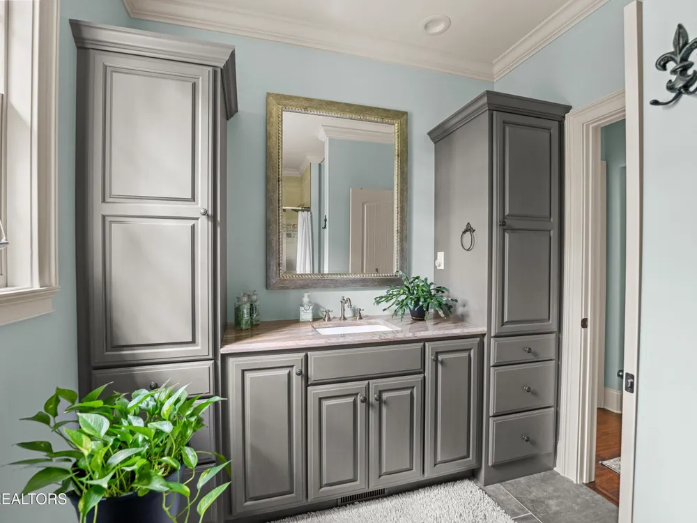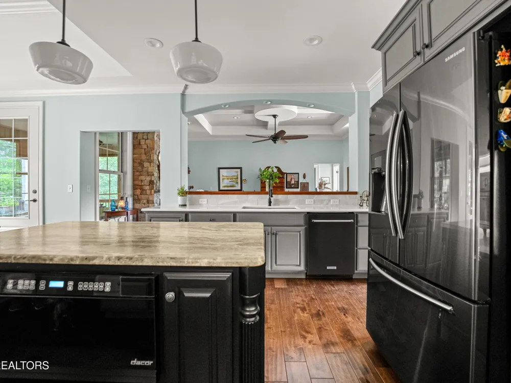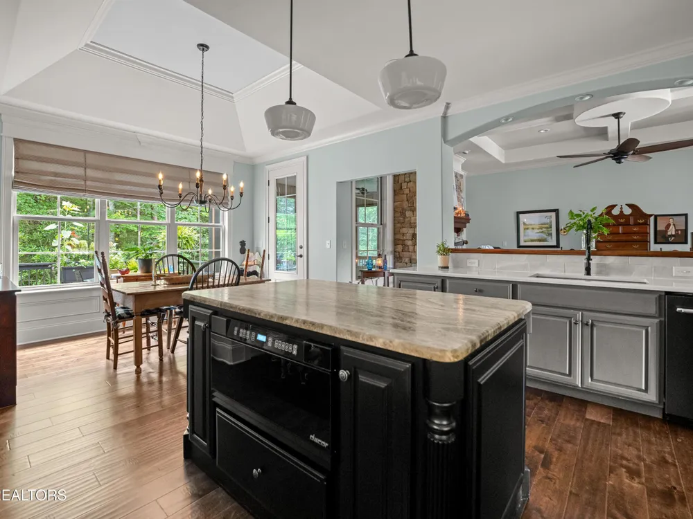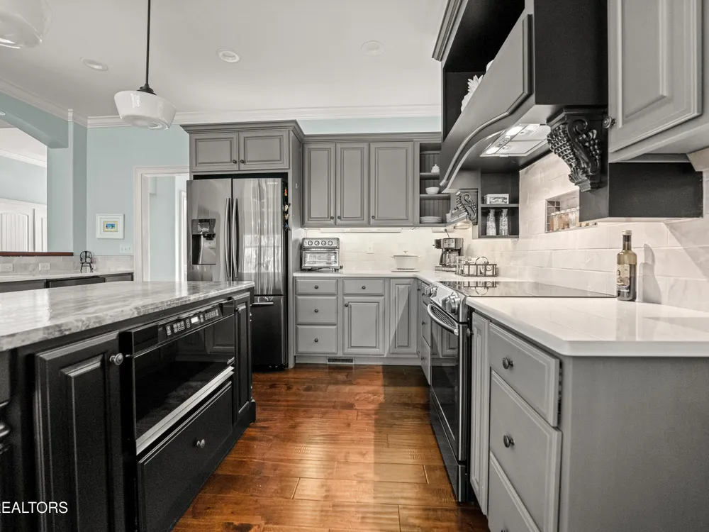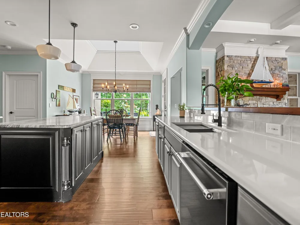 Luxury meets Craftsmanship in this One-Of-A-Kind Fairfield Glade Home. Step into timeless elegance with this custom all-brick-and-stone masterpiece constructed in 2016 by one of Fairfield Glade's premier builders. From the moment you enter the wide foyer with trey ceiling and intricate millwork, you will know this home is something truly special. The stunning great room boasts a soaring trey ceiling, a handcrafted native Crab Orchard Stone fireplace and a rich walnult mantle by Pearl Mantel--complete with a hidden pearl inlay. A 72' designer fan perfectly complements the custom finishes. The chef's kitchen is a dream; solid wood cabinetry, sleek white quartz countertops, a marble island with leathered finish (installed 2022), and a premium Ruvati Workstation sink with high-end accessories. A built-in spice niche over the stove, spacious pantry, powder room and laundry room add style and function. Enjoy forested views from the light-filled breakfast area or entertain on the expansive Trex deck and 16'x14' newly screened porch. Retreat in the luxurious primary suite with a trey ceiling, custom wood-trimmed windows, and spa-style bath featuring dual vanities, granite countertops, and a massive 13'x7' wet-room shower with dual heads and ceiling rain shower. The 7' x 10' walk-in closet is fully customized for effortless organization. This thoughtfully designed split-bedroom floor plan includes two generous guest rooms (one with a custom walk-in closet) and a fully remodeled guest bath with walk-in tiled shower and granite vanity. Upstairs, a finished 21'x14' bonus room with mini-split offers the perfect flex space for a media room, studio or private guest suite. Even the utility spaces shine; an oversized garage with crown molding and new insulated door (2025), walk-in crawl space with commercial dehumidifier and safe room. The LeafGuard gutter system (2023) comes with a lifetime transferable warranty. A whole-house surge protection system is in place. Every inch of this home has been carefully curated for comfort, style and longevity. Don't miss your chance to own this rare gem in Fairfield Glade! **Buyer to verify all information before making an informed decision***