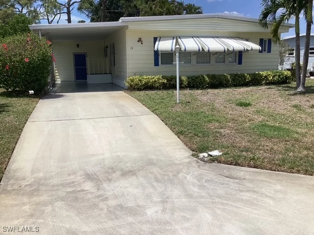 Location! Location! Walk to everything from this well cared for home! Just around the corner is the saltwater pool, clubhouse, Tiki hut, fitness room, library, and billiard room. Relax out back on outdoor patio or on a screened in lanai and enjoy nature. New A/C in 2022 and new flooring. Spacious living room plus a separate sitting area with fireplace. Lota of natural light thru replacement windows. Great size carport with views of well manicured landscaped lawn. Riviera Golf Estates is a great over 55 community with many activities! All this tucked away yet only 15 minutes from 5Th Ave. and beautiful beaches! And YES , you own the land! Also a well for irrigation.
