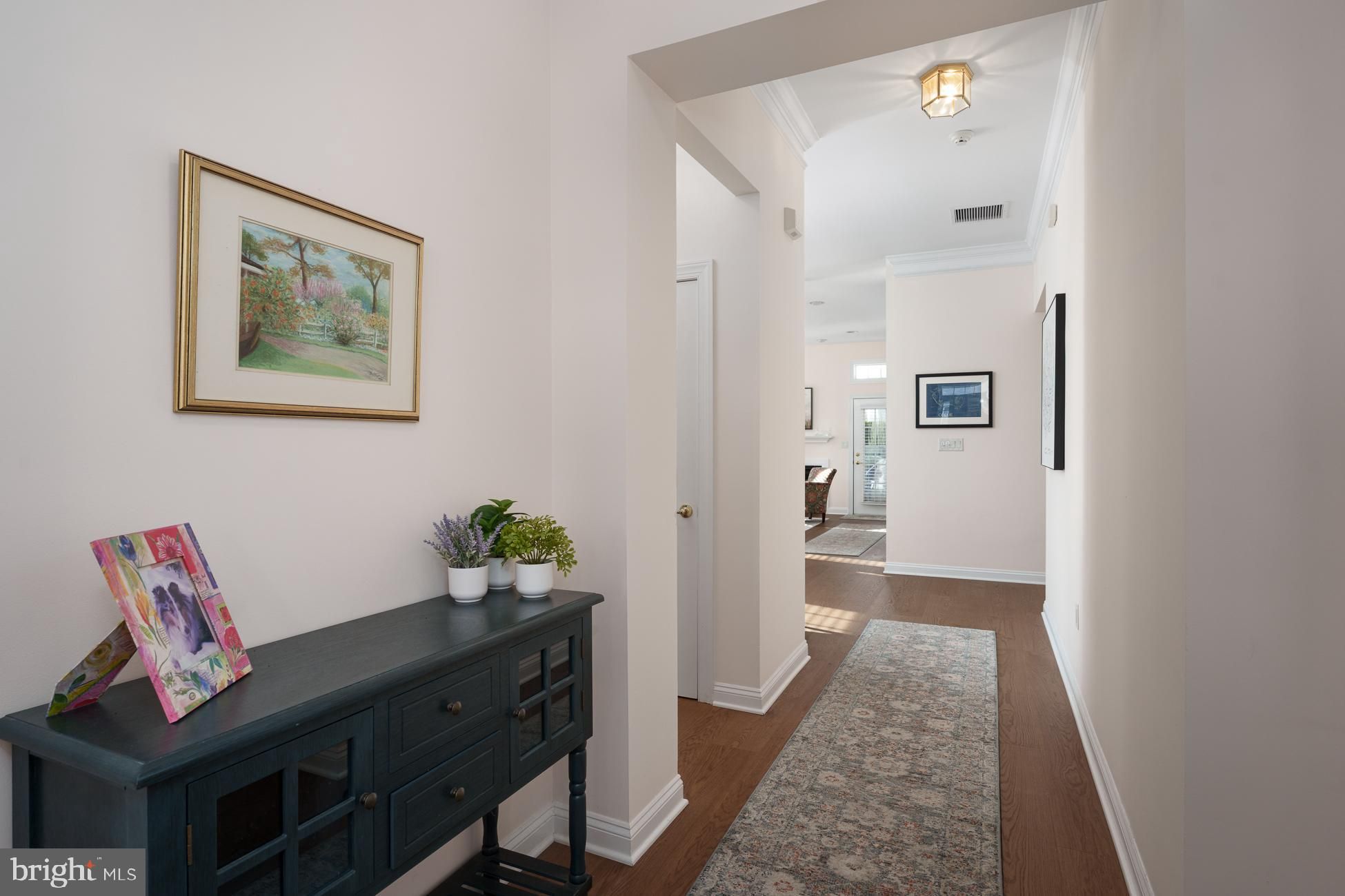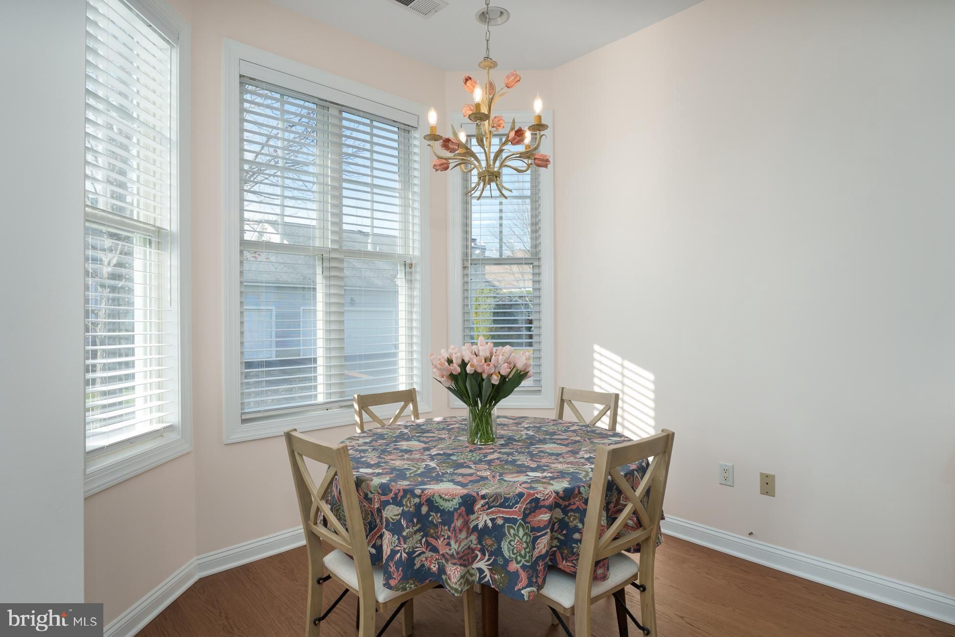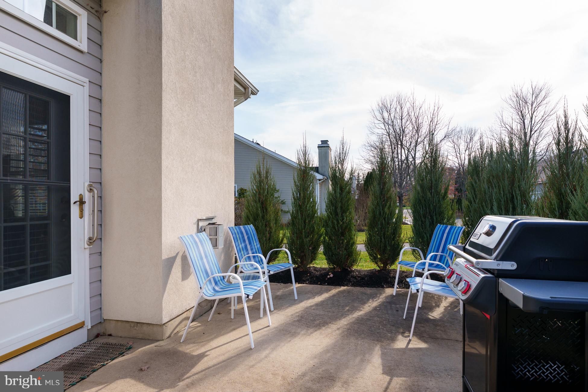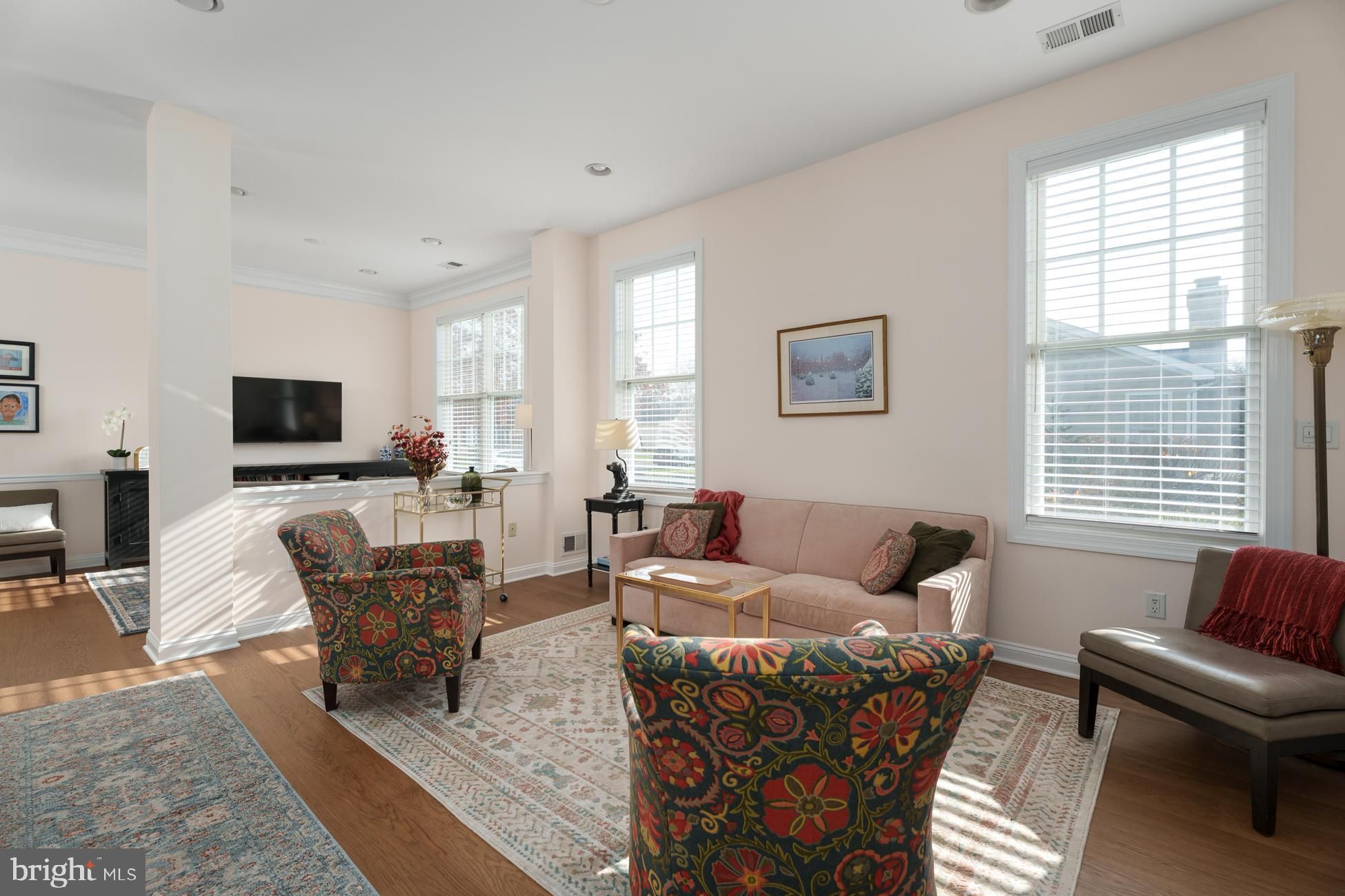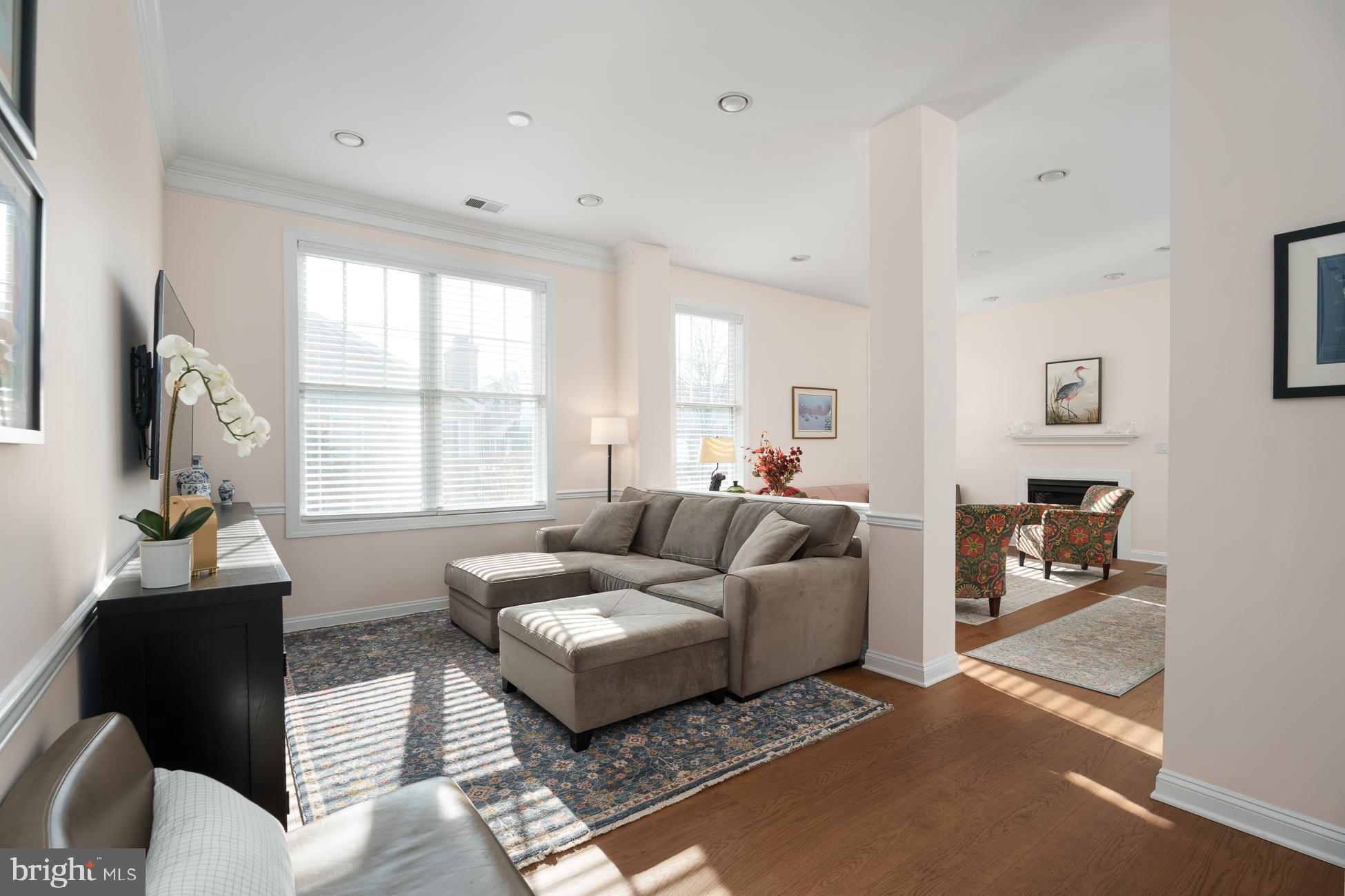 Welcome to this stunning, move-in ready home in the Four Seasons at Historic Cranbury adult community, ideal for those looking to downsize without compromise. Filled with natural light and high ceilings, the open-concept floor plan features a flexible space including living room with gas fireplace, cozy den and updated kitchen with quartz countertops, tile backsplash, stainless appliances and new cabinetry and a dining area surrounded with windows. Recently added engineered hardwood flooring throughout and abundant recessed lighting create a stylish yet warm environment, perfect for entertaining or just relaxing and watching a movie. The quiet outdoor patio offers an oasis with modern landscaping. Two fully renovated bathrooms with high-end countertops, vanities, flooring, fixtures and lighting showcase attention to both comfort and quality. The primary bedroom with tray ceiling has an extra-large walk-in closet, while the additional bedroom provides versatile space for visiting guests, remote work, or both. A new Trane HVAC system installed in 2025 ensures peace of mind. All screens have been replaced and custom wood blinds adorn every window. New washer/dryer, two-car garage with direct indoor access and plenty of additional storage in a large attic, complete an easy-living, one-floor lifestyle. Located just off Main Street in the heart of Cranbury’s historic village, the community offers easy access to the library, local shops, and favorite restaurants. Residents also enjoy a clubhouse with pool, tennis and pickleball courts, and walking and biking paths—all just steps from home. Perfect for those who love to travel or simply want a worry-free lifestyle, Four Seasons at Historic Cranbury provides true lock-and-leave living, with all outdoor maintenance handled by the community. Centrally located near the New Jersey Turnpike and Northeast Corridor rail line, with quick access to New York, Philadelphia, the Jersey Shore, and nearby Princeton’s cultural and university offerings, this home offers the perfect balance of simplicity, comfort, and connection.