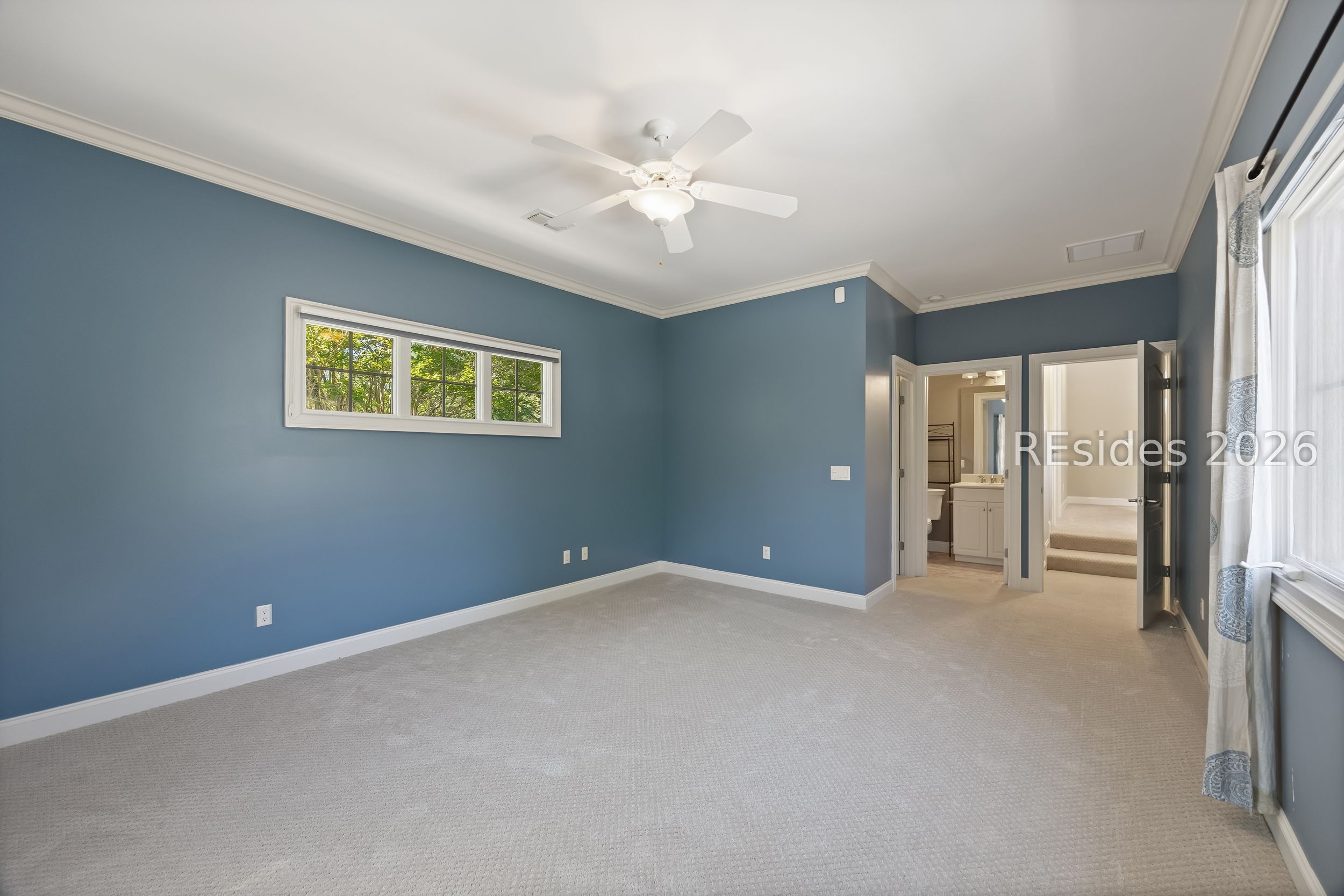 - Attic Access, Bookcases, Built-in Features, Ceiling Fan(s), Carbon Monoxide Detector, Main Level Primary, Multiple Primary Bathrooms, Smooth Ceilings, Separate Shower, Wired for Data, Wired for Sound, Window Treatments, New Paint, Pantry