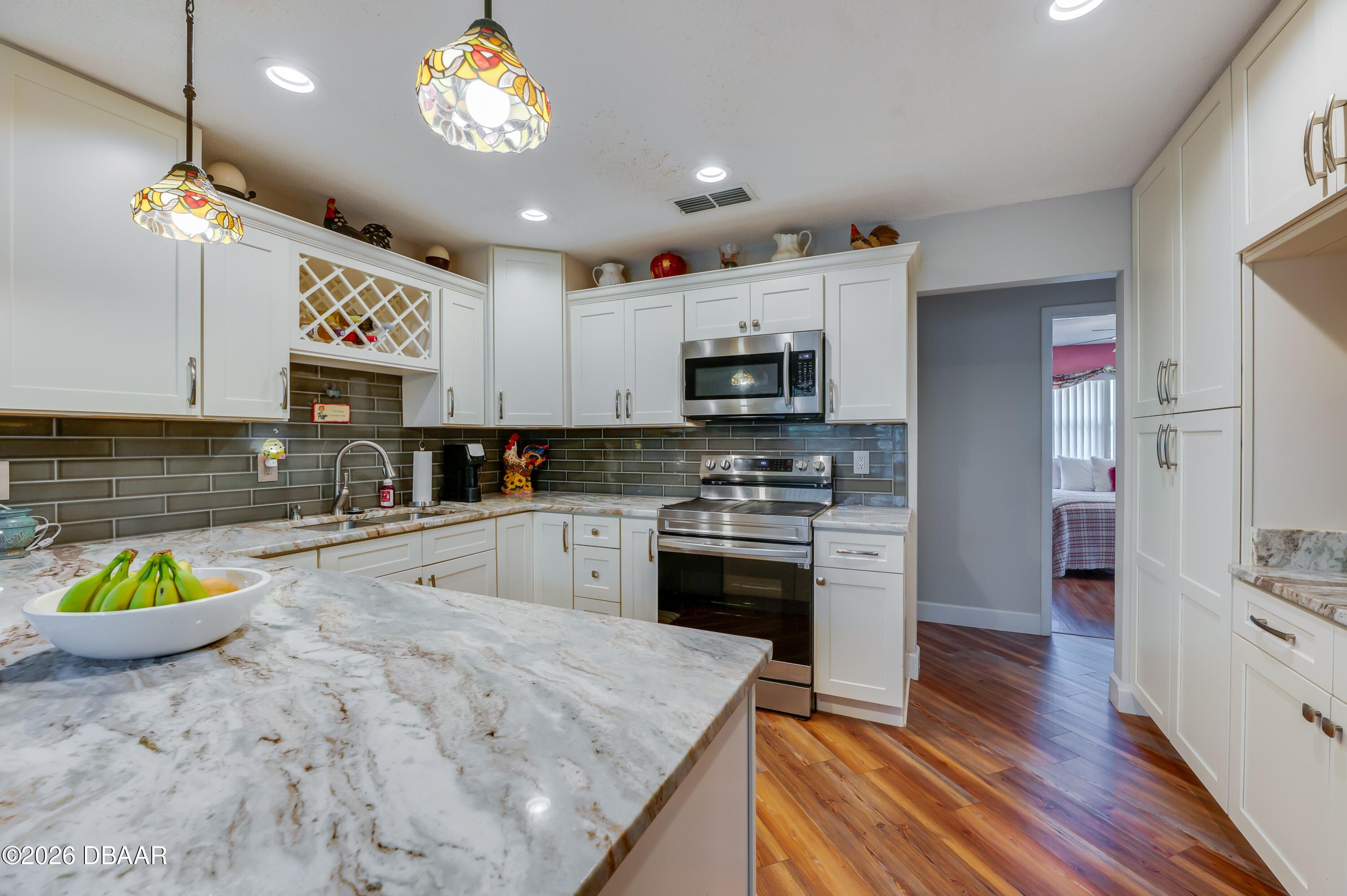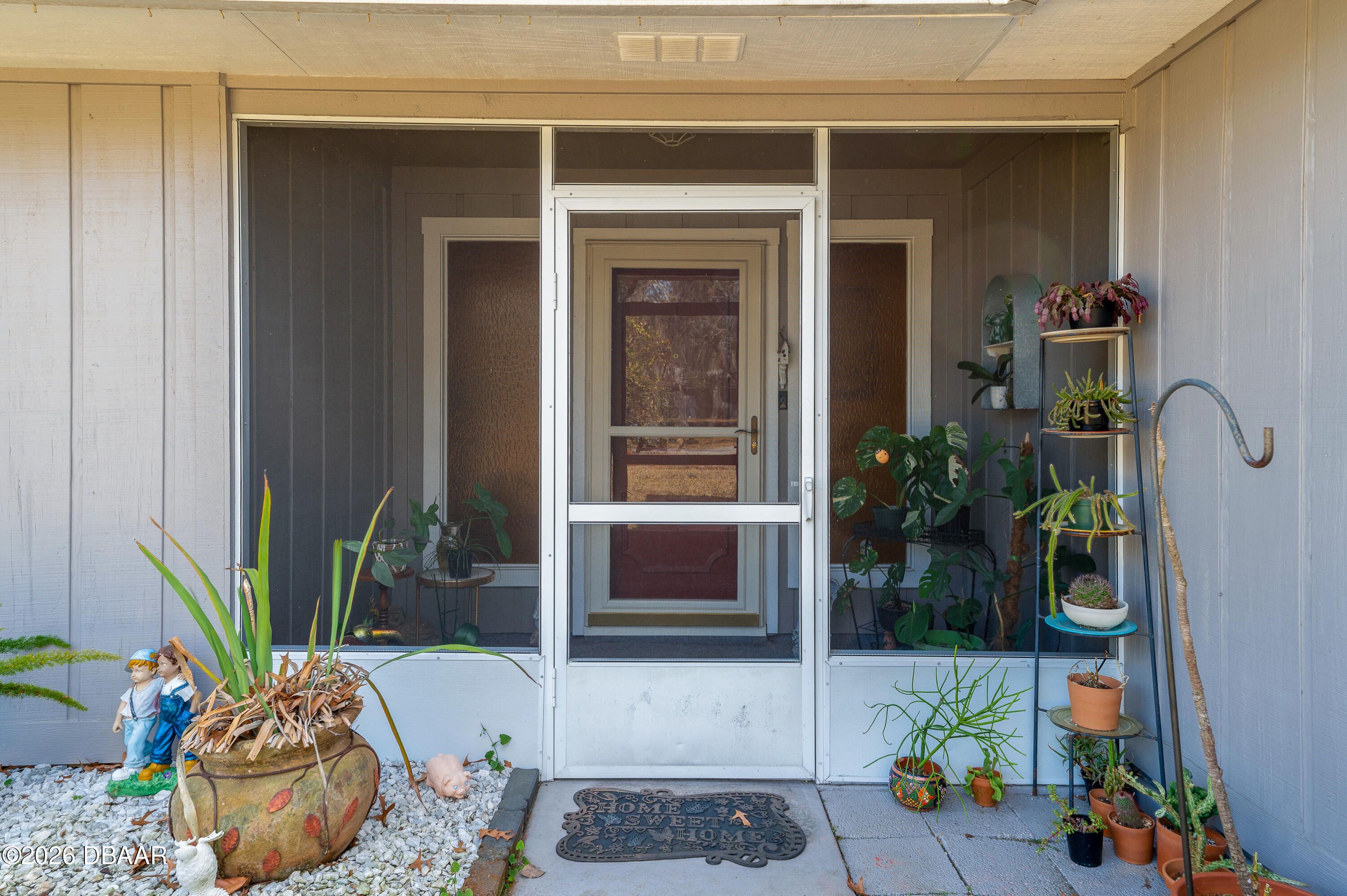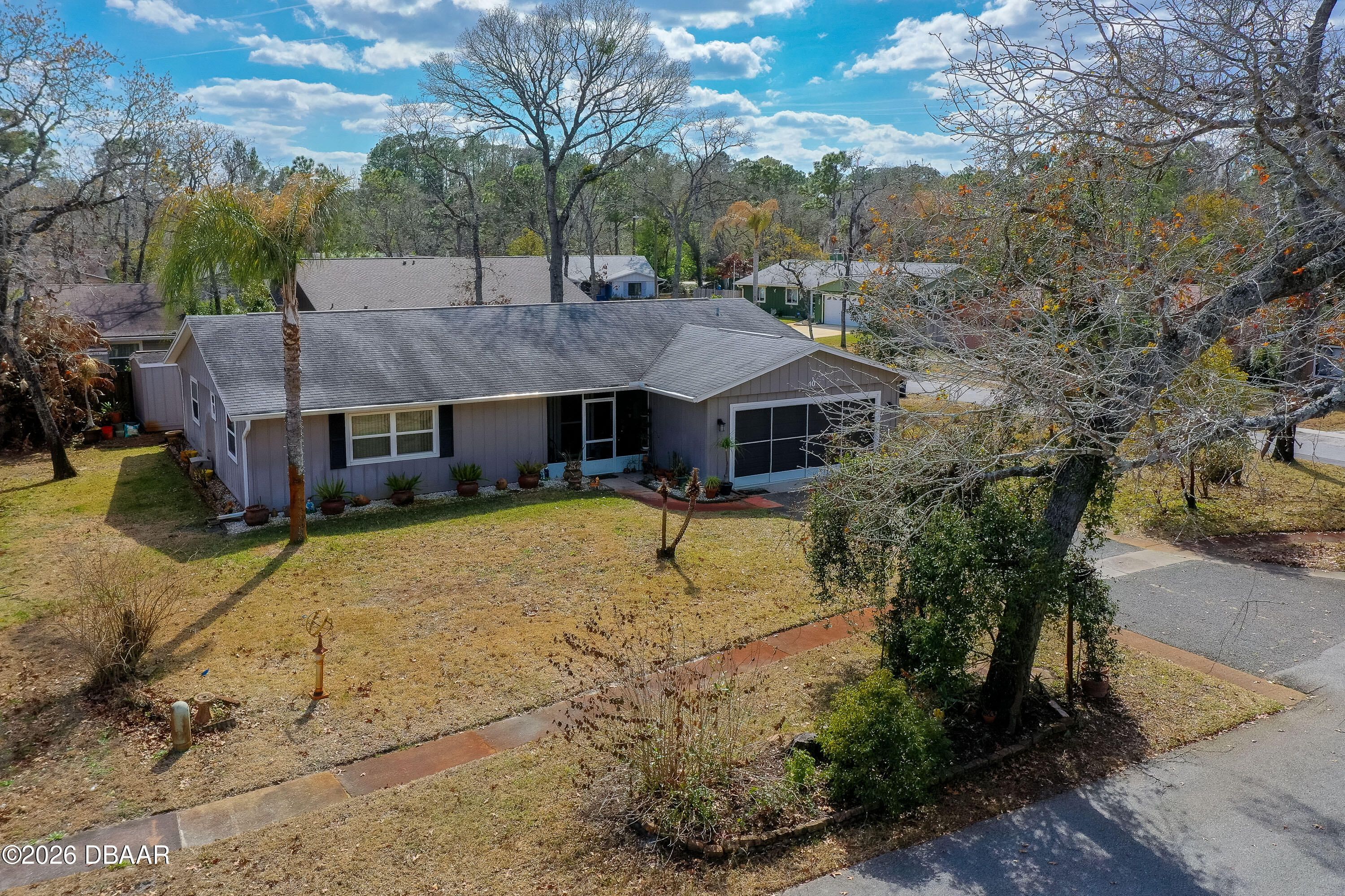 Corner-lot Gem in Summer Trees Family Section! No age restrictions. This beautifully maintained 3-bedroom, 2-bathroom home in Summer Trees offers 1,602 square feet of comfortable living space in the heart of Port Orange. This property combines inviting indoor spaces with peaceful outdoor surroundings. Inside, luxury vinyl flooring flows throughout, creating a cohesive and modern feel. The open living and dining area provides excellent flexibility for everyday living and entertaining with sliding glass doors that lead to the screened porch. The fully remodeled kitchen is a standout feature, showcasing granite countertops, white shaker-style cabinetry with soft-close drawers and a breakfast bar with seating. Generous counter space and floor-to-ceiling cabinetry offer both style and functionality. The primary suite is spacious and filled with natural light with direct access to the ensuite bath...Continued... Two additional bedrooms provide oversized and comfortable spaces for guests, hobbies, or a home office, while the second full bathroom includes a walk-in shower with glass enclosure and a vanity with storage. The spacious screened-in porch with tiled flooring overlooks the backyard, creating a peaceful setting for morning coffee or evening relaxation. A detached storage shed along the side yard provides convenient space for tools, lawn equipment, or seasonal items. Enjoy access to a community park with a lake and miles of walking paths surrounded by nature. The home is also conveniently close to shopping, dining, medical facilities, and major roadways, making daily errands and commuting simple and efficient. All information recorded in the MLS is intended to be accurate but cannot be guaranteed.