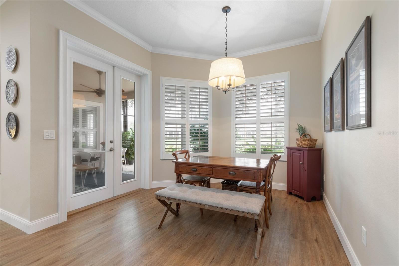 Welcome to this beautifully updated three bedroom, two bath home, 3 car tandem garage with a breathtaking pond/lake view. This home is located in the sought after Grand Haven golf community. This residence offers modern upgrades and stylist finishes throughout. Step inside the front door and you will find a light filled open floor plan. A formal living room and dining room off the foyer with a large gathering room. The open floor plan features luxury vinyl flooring, a designer kitchen with beautiful blue cabinets and perfectly curated decor. You feel like you have entered a model home but better. The kitchen has stainless steel applicences, a walk in pantry, bar height counter tops and plenty of storage The breakfast room has a wonderful view of the lake and access to the lanai. The primary bedroom boosts a large walk in closet and a extra space for perhaps an office, exercise area or reading nook. The other two bedrooms and guest bath are spacious. The bathrooms and kitchen were recently remodeled, plantation shutters added, roof, water filtration system, painted garage floor, paver driveway and sidewalk and new screen for lanai. Enjoy peaceful evenings from your patio overlooking the serene lake, all while living in a secure, gated community known for its charm and amenities. This is more than a home. I know you will fall in love with it the moment you step through the door.