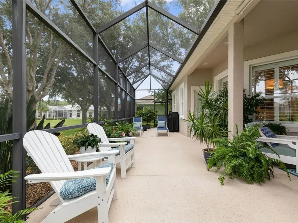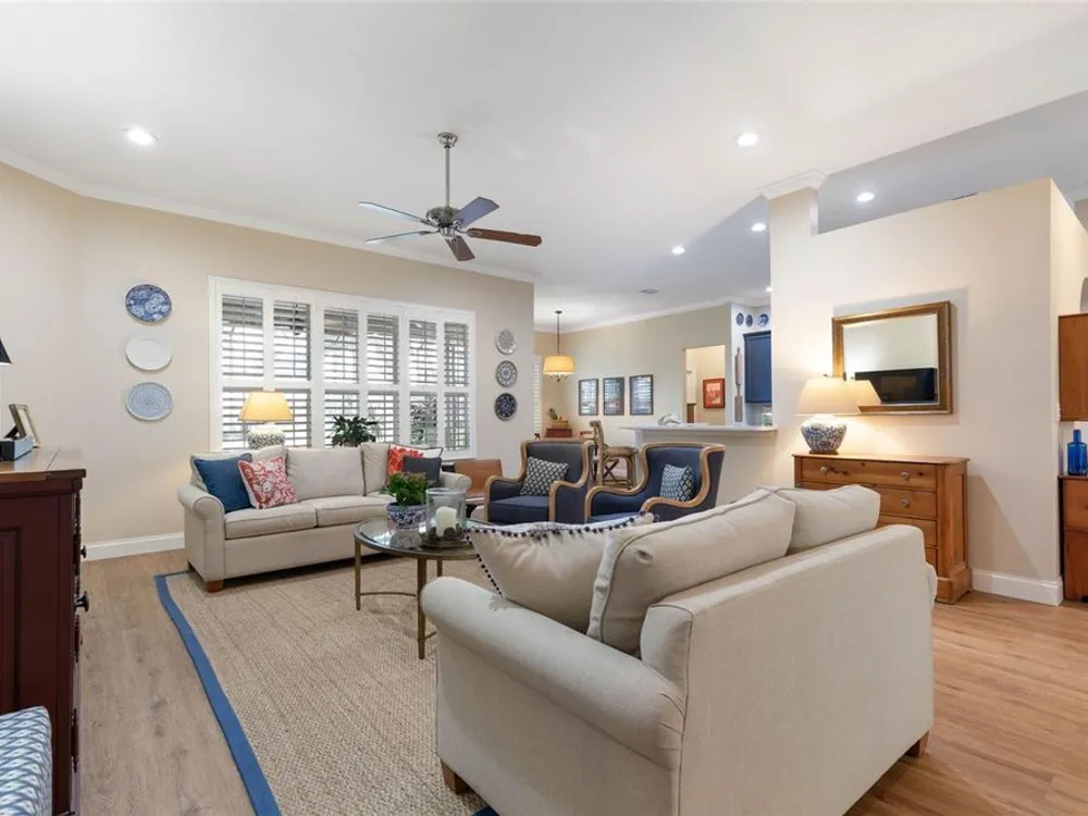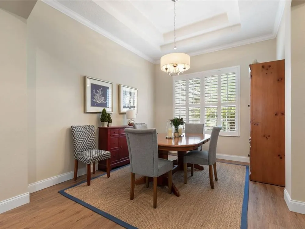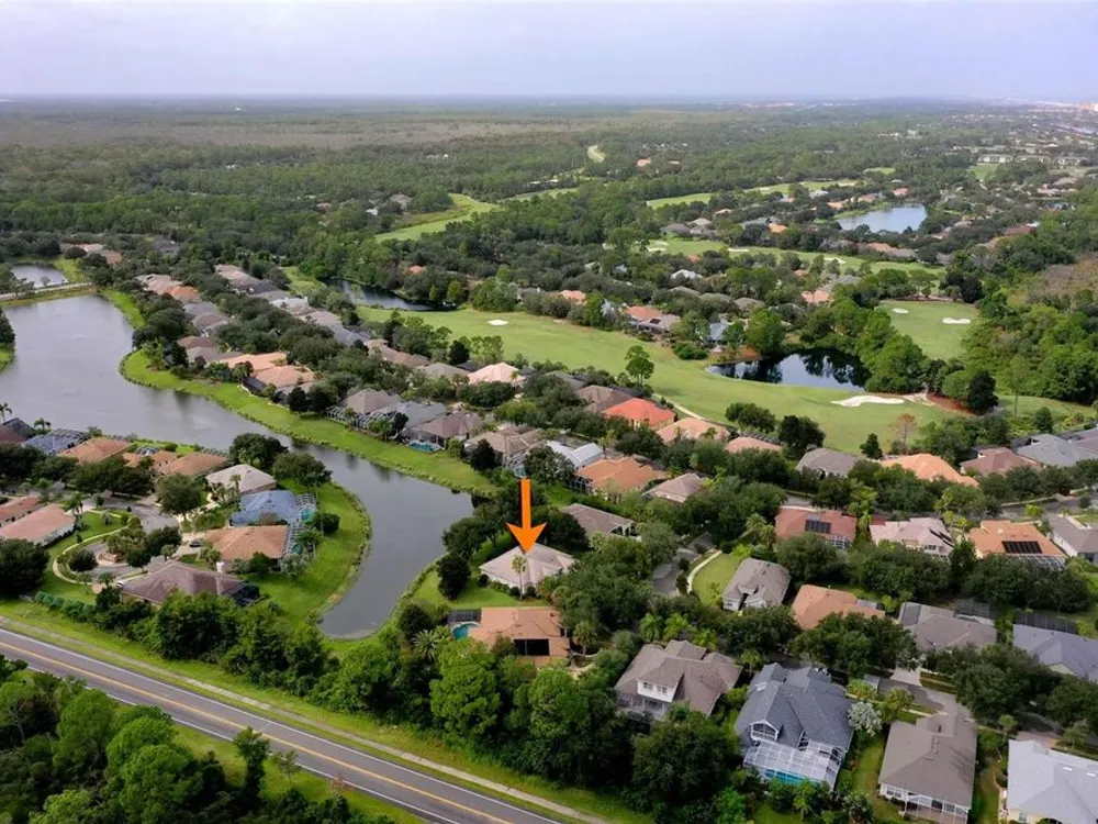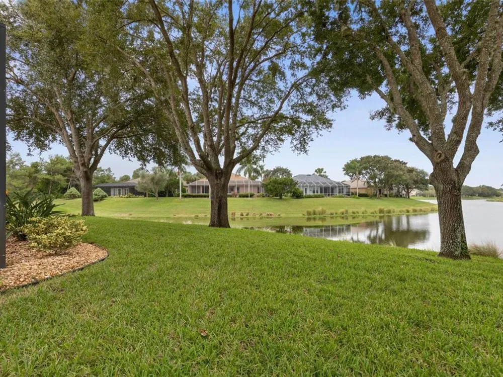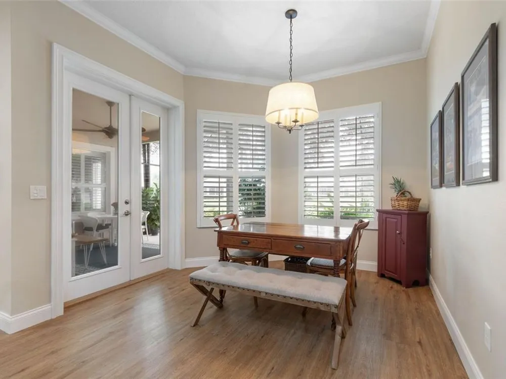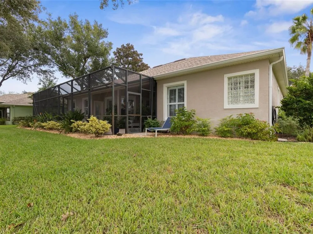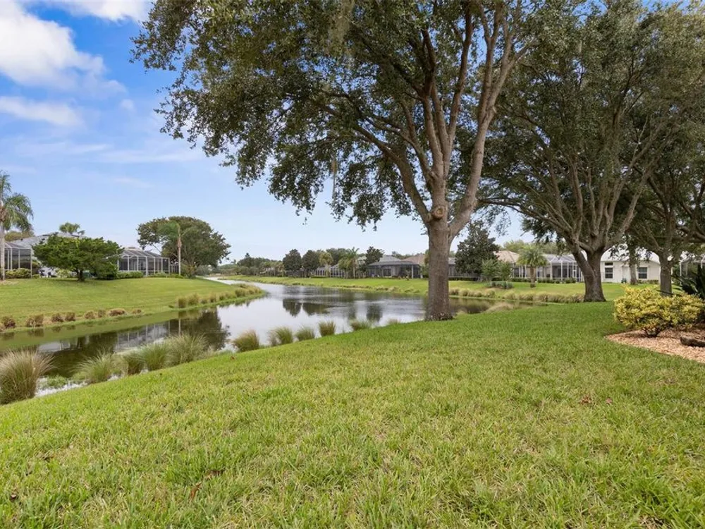 Welcome to this beautifully updated three bedroom, two bath home, 3 car tandem garage with a breathtaking pond/lake view. This home is located in the sought after Grand Havenn golf community. Designed to impress, this residence offers modern upgrades and stylist finishes throughout. Step inside the front door and you will find a light filled open floor plan. A formal living room and dining room off the foyer with a large gathering room. The open floor plan features luxury vinyl flooring, a designer kitchen with beautiful blue cabinets and perfectly curated decor. You feel like you have entered a model home but better. The kitchen has stainless steel applicences, a walk in pantry, bar height counter tops and plenty of storage The breakfast room has a wonderful view of the lake and access to the lanai. The primary bedroom boosts a large walk in closet and a extra space for perhaps an office, exercise area or reading nook. The other two bedrooms and guest bath are spacious. The bathrooms and kitchen were recently remodeled, plantation shutters added, roof, water filtration system, painted garage floor, paver driveway and sidewalk and new screen for lanai. Enjoy peaceful evenings from your patio overlooking the serene lake, all while living in a secure, gated community known for its charm and amenities. This is more than a home. I know you will fall in love with it the moment you step through the door.