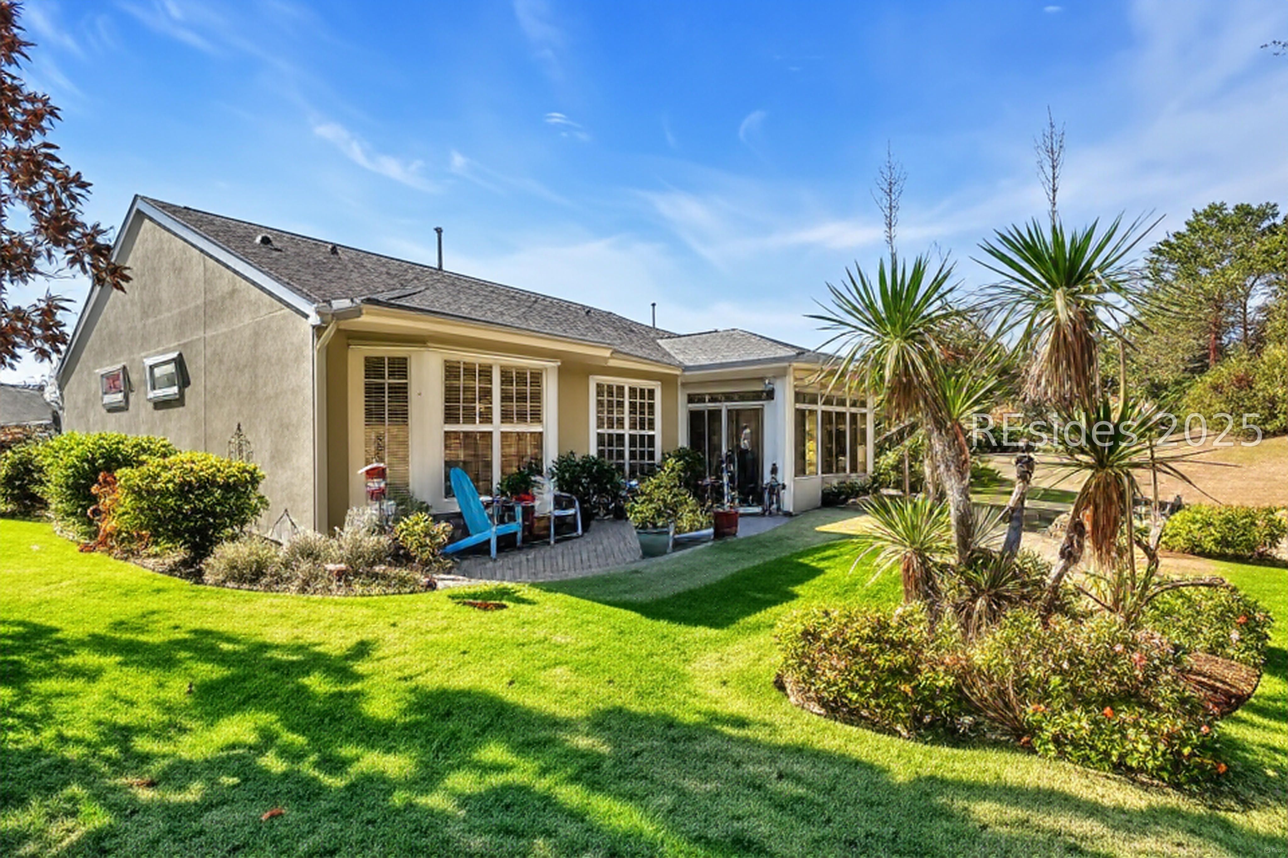 Welcome to 10 Thomas Bee Drive, a pristine Egret model in Heritage Oak Place-Sun City Hilton Head's premier 55+ gated paradise! Fall in love with the new LVP flooring flowing throughout this move-in-ready gem: 2 beds + den/2 baths, open-concept flow, and smooth ceilings. The chef's kitchen shines with granite counters updated with stainless appliances, and a large pantry. Enjoy great bedroom separation; the cozy den is ideal for a home office or craft room. The owner's suite pampers with a bay window, newly tiled, walk-in shower, soaking tub, and huge walk-in closet. Relax in your bright 4-Season Carolina room with glass sliding windows plus a large paver patio overlooking a beautifully landscaped backyard with private butterfly garden views-perfect for serene Lowcountry mornings or evenings! Updates galore: Newer roof (2019), HVAC (2016), April Aire system (2017), water heater (2023), and paver framed driveway and walkway with herb garden accents. This very well-maintained home is priced to sell! LOCATION IS EVERYTHING: Stroll minutes to Hidden Cypress Golf Course, Fitness Center, pool & Clubhouse; Softball Field, Pickleball and Tennis Courts, Woodshop, and Dog Park. Other world class Sun City amenities include THREE championship golf courses, six pools, and three (soon to be four) fitness centers. The Town Square with it's Magnolia Hall- Performing Arts Theater; Pavilion, Craft facilities, 180 clubs and events are a quick golf-cart ride away. Just 20 min to Hilton Head beaches, Tanger Outlets, Publix, great hospitals, and top-tier healthcare facilities. Retirees: Trade high taxes for SC bliss and save on this dream... starts here!