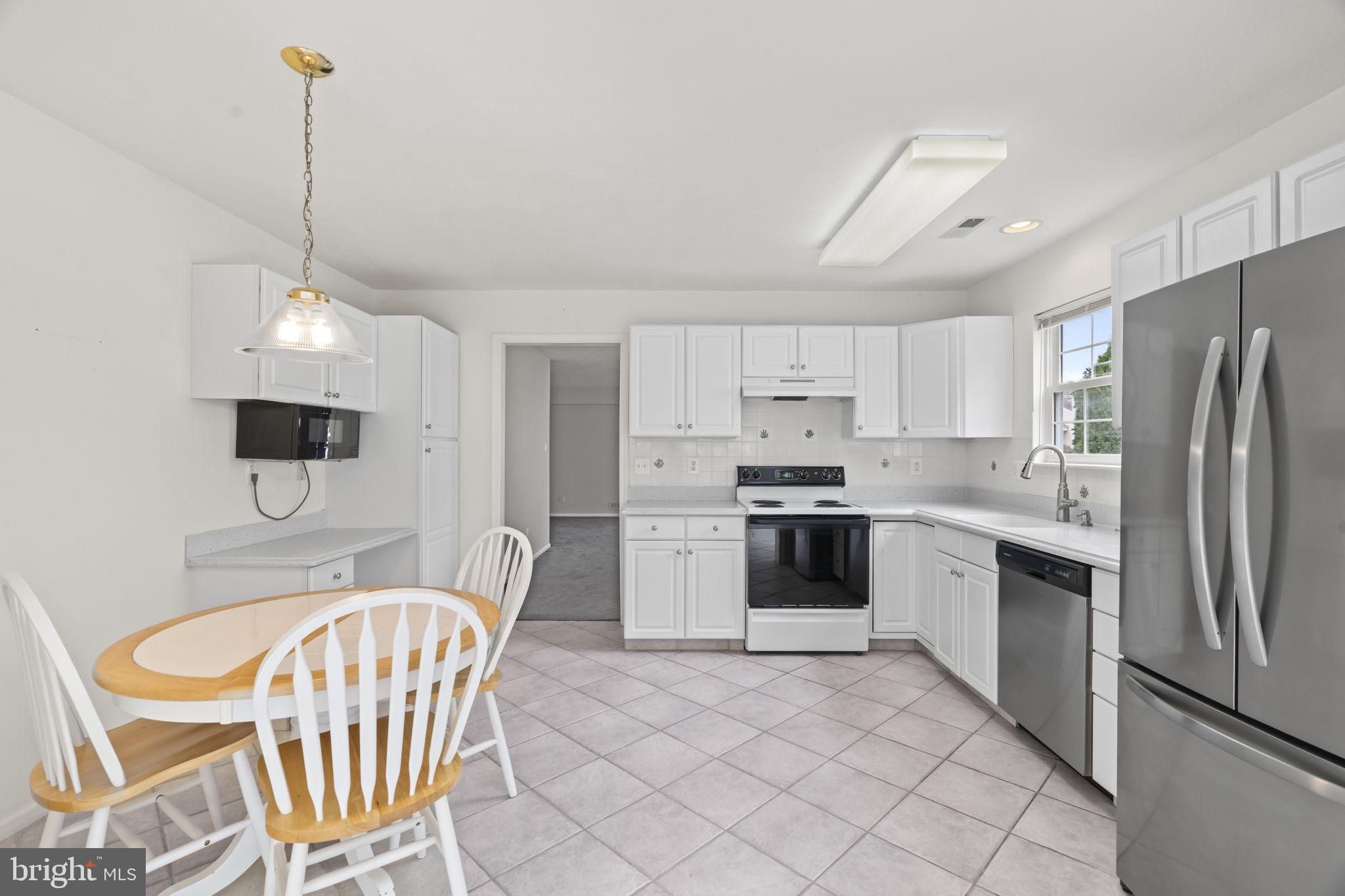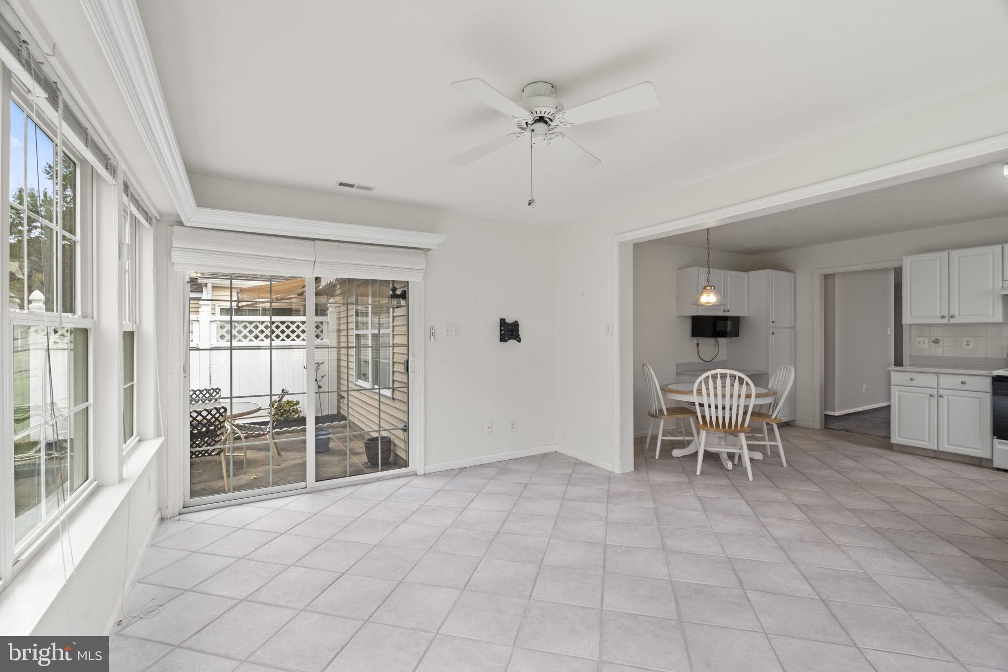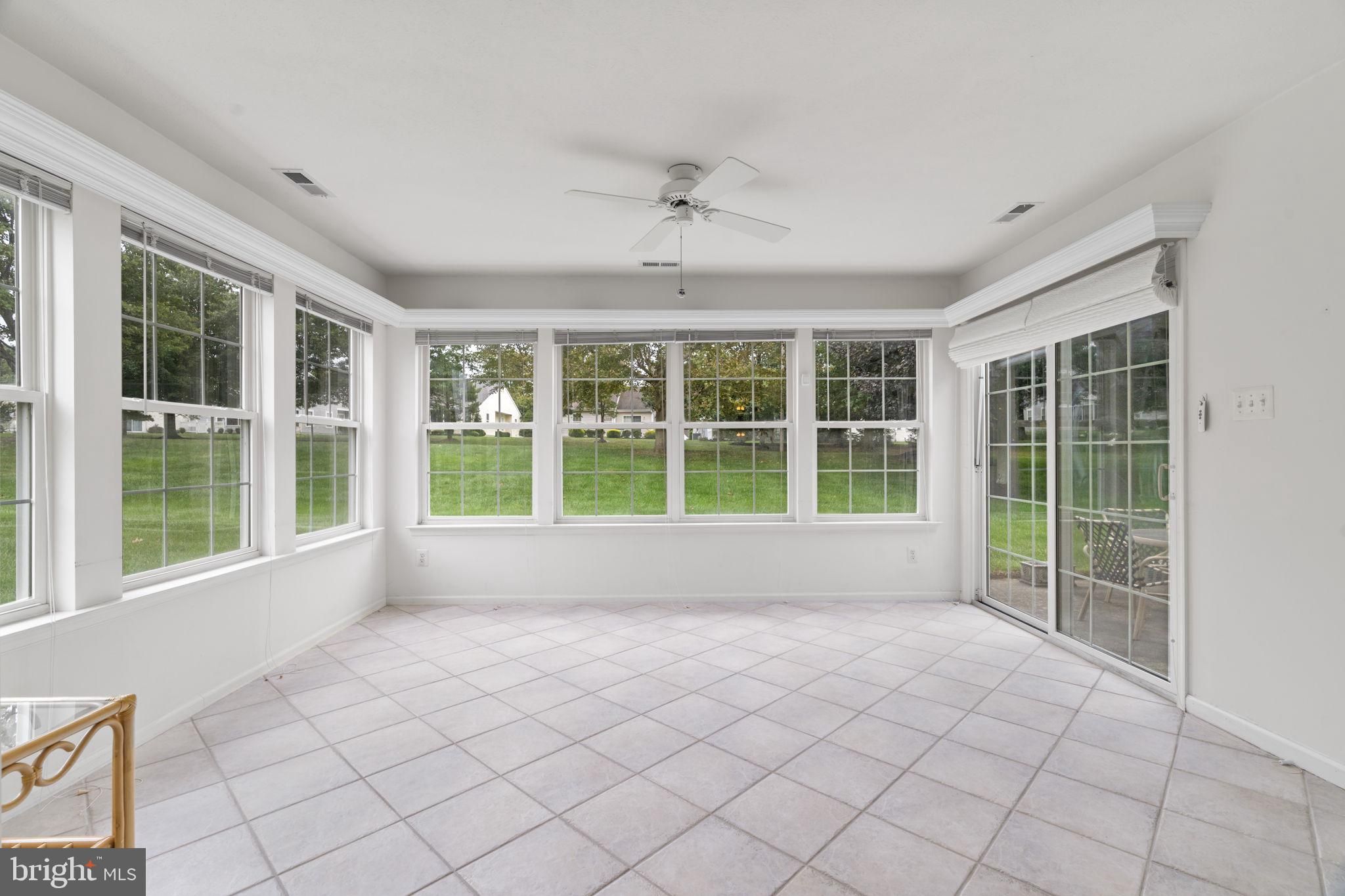 Welcome to this beautifully maintained end-unit patio home in the highly desirable Holiday Village East active adult community. This spacious Rosemont model offers nearly 1,600 sq ft of comfortable one-floor living and is tucked away on a quiet cul-de-sac. Step inside to a bright, sun-filled floorplan featuring neutral paint, new plush carpeting, and ceramic tile flooring in the foyer. The formal living and dining rooms provide a warm and welcoming space for hosting gatherings, while the updated eat-in kitchen features classic white cabinetry, mostly stainless steel appliances, and a built-in desk workspace. A convenient pantry closet offers extra storage. Just off the kitchen, you’ll find the light-filled four-season sunroom—a perfect place to relax or entertain while enjoying peaceful views of the open backyard. Step outside to a private concrete patio, ideal for morning coffee or al fresco dining, complete with a new remote-controlled awning for added comfort. The primary suite, located at the rear of the home for privacy, includes a large walk-in closet and an en suite bath with a walk-in shower. A generous guest bedroom with closet and a nearby full hall bath are located at the front of the home—perfect for overnight guests. Additional features include a laundry room with washer and dryer, and access to a one-car garage with pull-down attic stairs for extra storage. Enjoy the convenience of a newer water heater (2023), HVAC system (2014), new gutters (2023), custom window treatments, a security system, and an underground sprinkler system. The roof was replaced by the HOA in 2011. Holiday Village East offers resort-style amenities, including lawn maintenance, snow and leaf removal, a clubhouse, outdoor pool, tennis, pickleball, bocce courts, and a full calendar of social activities—all for a low monthly fee of just $156. Conveniently located near top-rated medical centers, shopping, dining, and with easy access to Philadelphia and the Jersey Shore, this is low-maintenance living at its best. Schedule your private showing today and discover why Holiday Village East is one of the area’s most sought-after 55+ communities! ***A couple of photos are virtually staged.***