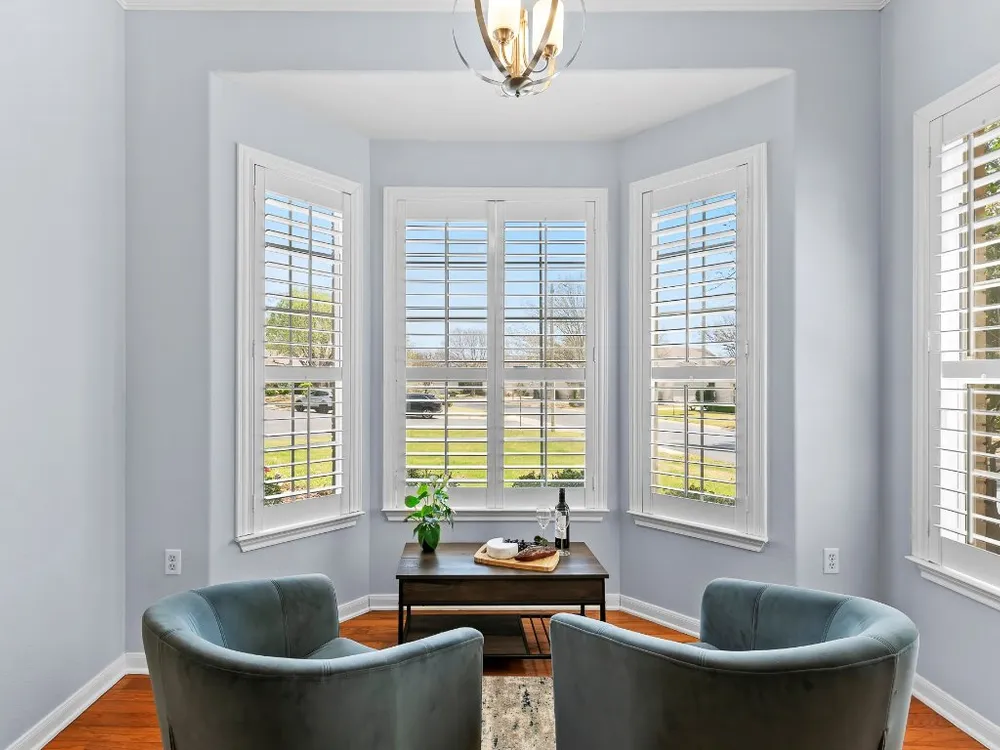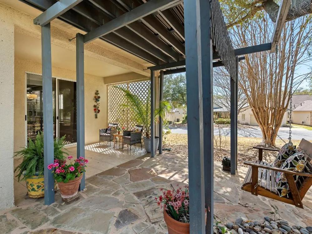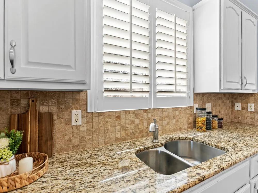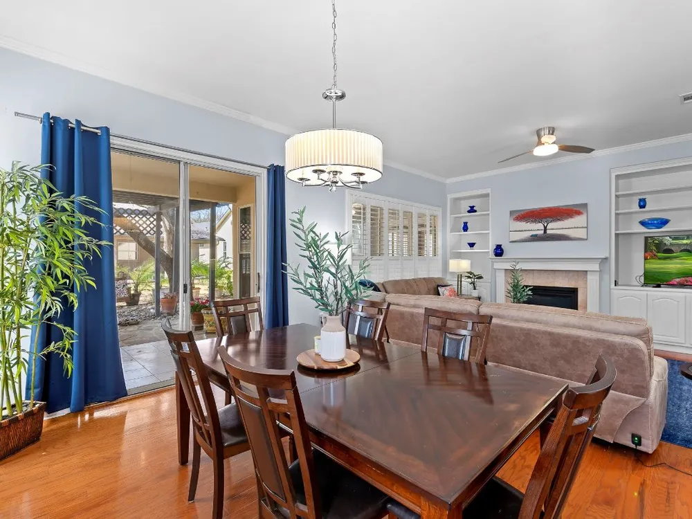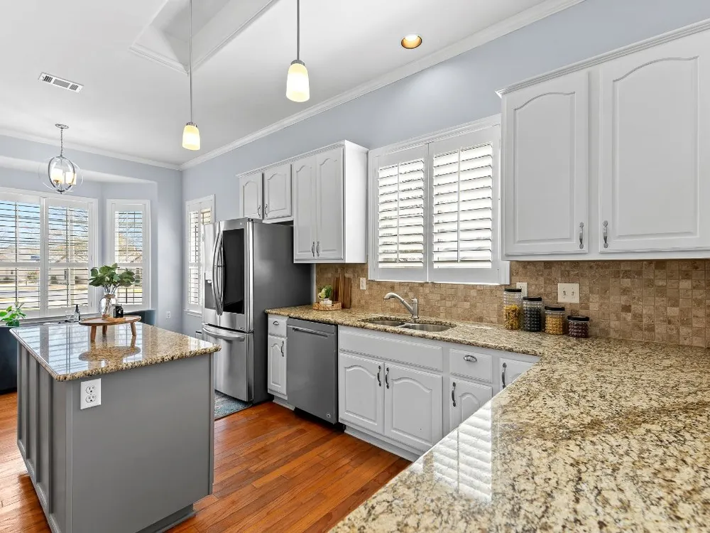 Fantastic price! Located on a charming corner cul-de-sac lot on one of the best streets in Sun City, this Trinity model welcomes you with beautiful wood floors in the main areas, and plantation shutters throughout. Opening the 8 ft solid wood door found in the original Del Webb homes, the full-glass storm door and sidelight provide great natural light in the entry. French doors give privacy to the office, complete with a wall of built-ins, while even more built-ins frame the fireplace in the living room. In the spacious kitchen, rich granite countertops surround the island, and the bay-windowed breakfast room offers a great spot to enjoy your morning coffee. A newer gas range, smart refrigerator and stainless- steel appliances are a bonus! With a welcoming back porch and extended stone patio with pergola providing serene outdoors space, there is plenty of yard left to fence in for a furry friend. Enjoy year-round the heated and cooled sunroom that provides a private retreat just off the primary bedroom. The primary bathroom features dual sinks and a separate soaking tub and shower. Additional shelves in the primary closet will make for easy organization, and with the laundry room relocated to the garage, that extra flex space inside is an ideal home drop-zone or hobby/craft room. NOTE- Seller will return laundry room to inside if buyer desires, with accepted contract. Storage cabinets in the garage, as well as a decked attic, 2022 HVAC, 2025 Water Heater. Don't miss the opportunity to make this home your own! *Home can be sold with furniture, please inquire with agent.*