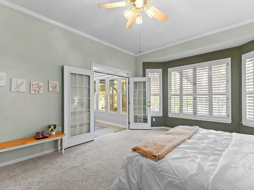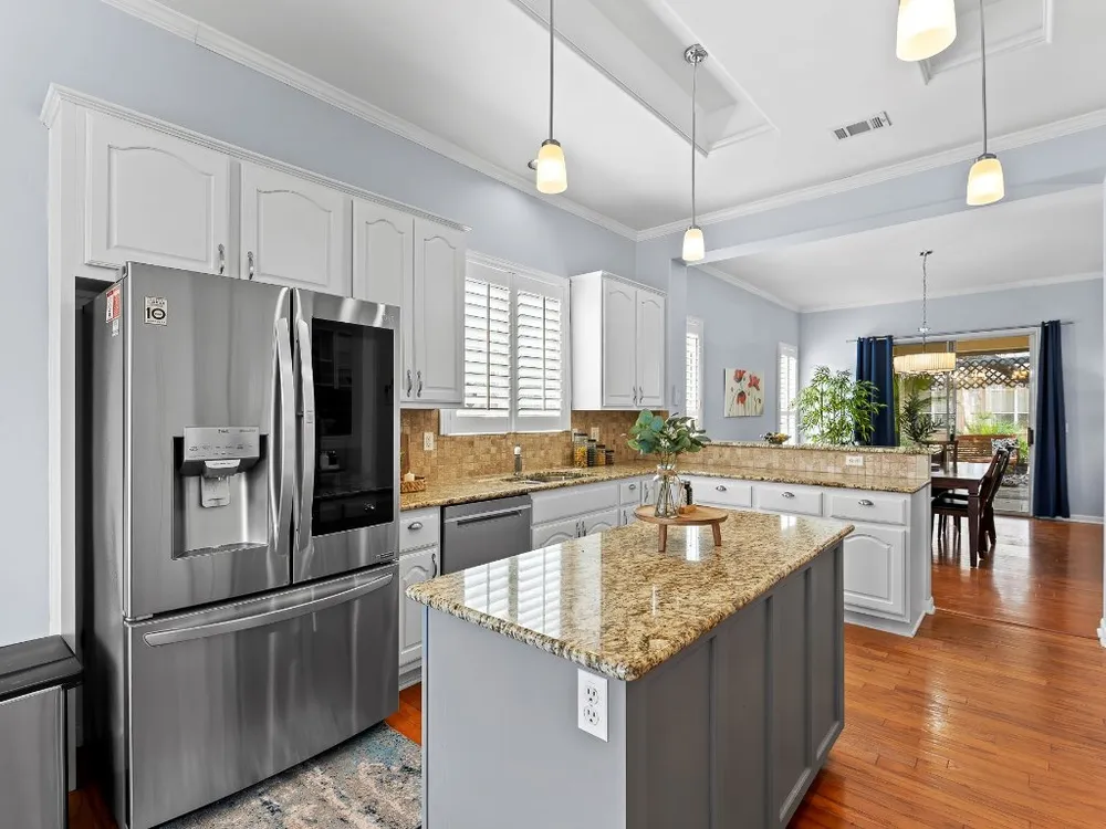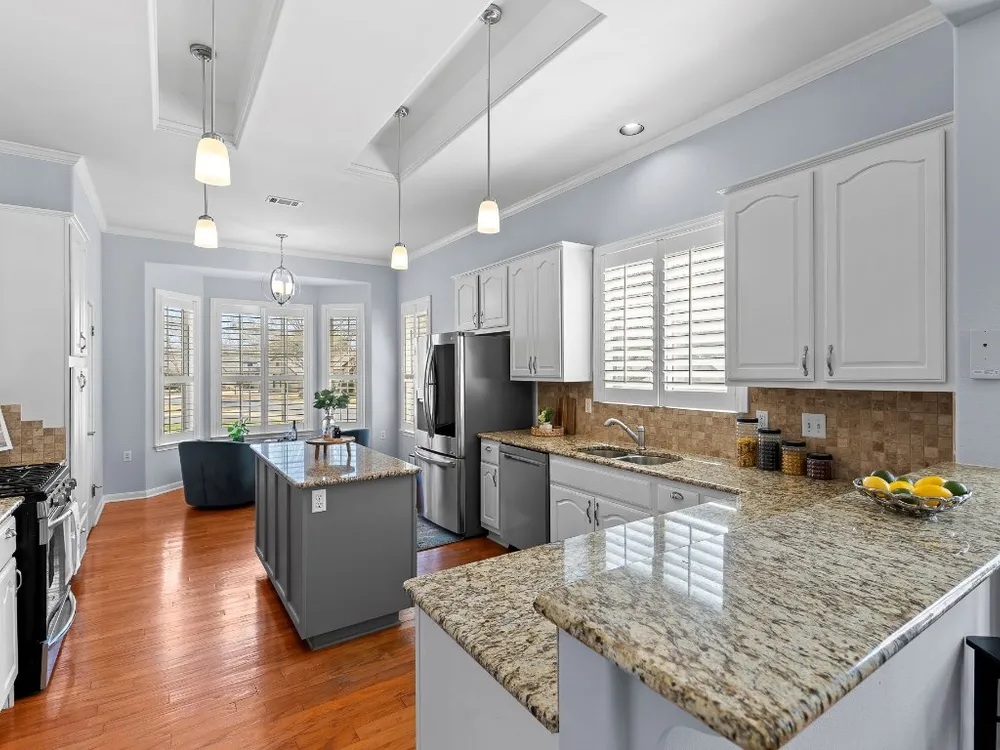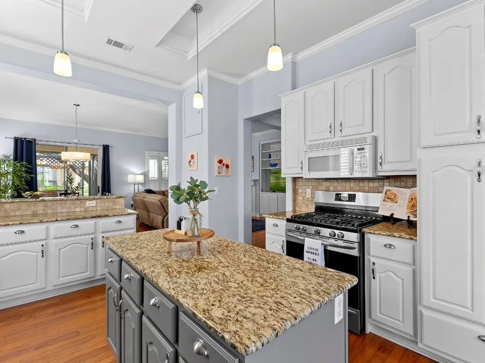 - Ceiling Fan(s), Chandelier, Separate/Formal Dining Room, Double Vanity, Entrance Foyer, Eat-in Kitchen, French Door(s)/Atrium Door(s), Granite Counters, Kitchen Island, Multiple Dining Areas, Main Level Primary, NoInteriorSteps, Open Floorplan, Pantry, Recessed Lighting, Walk-In Closet(s), High Speed Internet