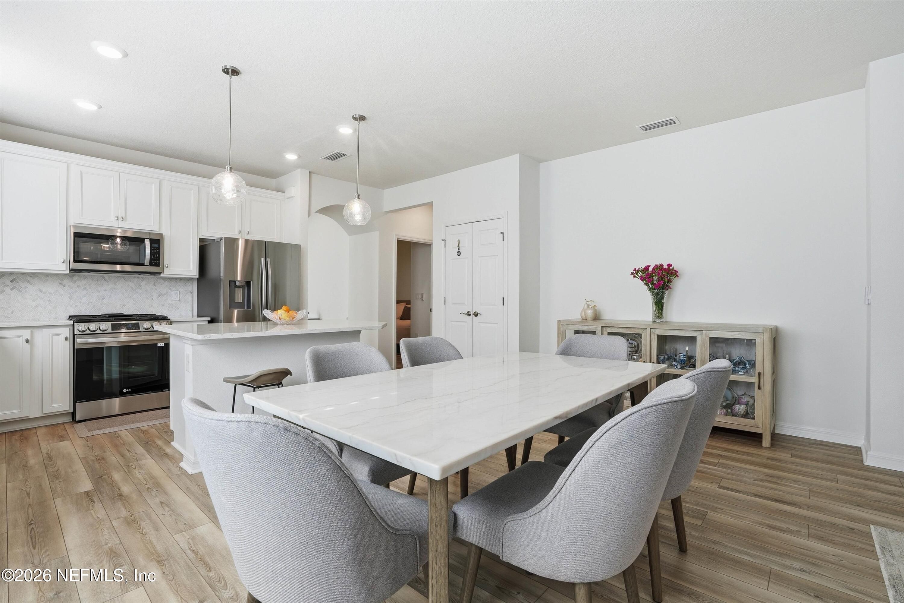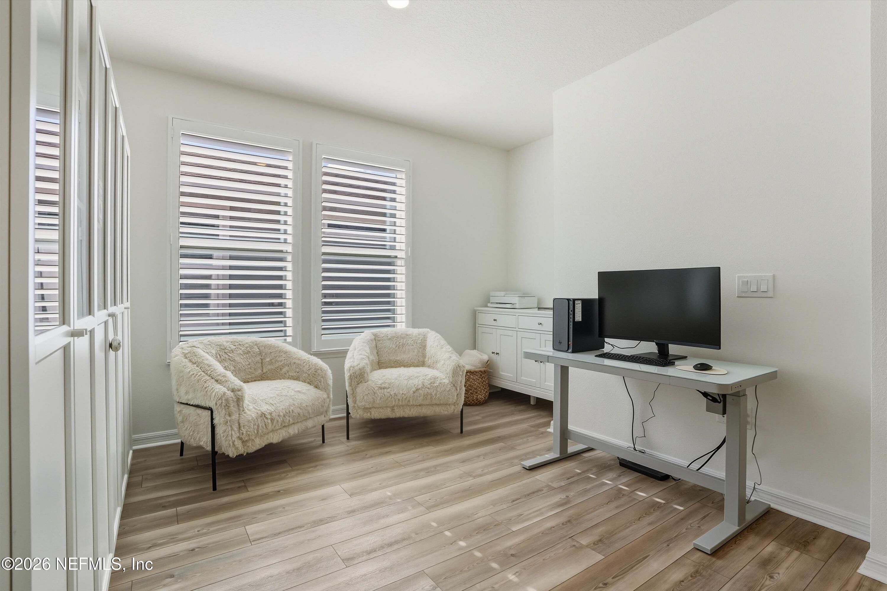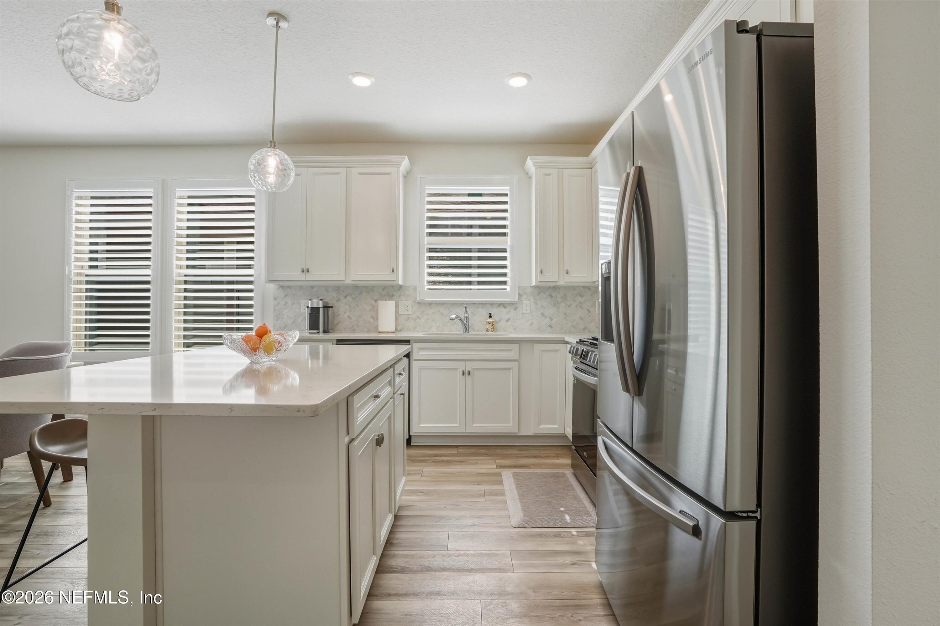 Welcome to this EXTENSIVELY UPGRADED villa with flex room in premier 55+ Del Webb Nocatee! This meticulously maintained Ellenwood floorplan features WOOD-LOOK LVP FLOORING throughout, & an open layout perfect for entertaining. The GOURMET KITCHEN boasts 42'' white cabinets, QUARTZ COUNTERTOPS, stylish new backsplash, designer pendant lights, GAS RANGE WITH AIR FRYER (2024), and dimmers. Relax in your EXTENDED SCREENED LANAI with TV and tinted sliding doors. PREMIUM UPGRADES include: plantation shutters, high-end ceiling fans with remotes, whole house WATER SOFTENER, keyless entry, upgraded thermostat, EV outlet, gas WASHER/DRYER (2024), & new Kohler toilets. Fresh paint throughout! The spacious owner's suite features walk-in closet with BUILT-INS. Garage has full insulation, epoxy floors & shelving. SHORT WALK to the CANOPY CLUB featuring pools, pickleball, tennis, fitness, & onsite restaurant & bar. Enjoy all Nocatee amenities, nearby beaches & golf. Golf-cart friendly community!