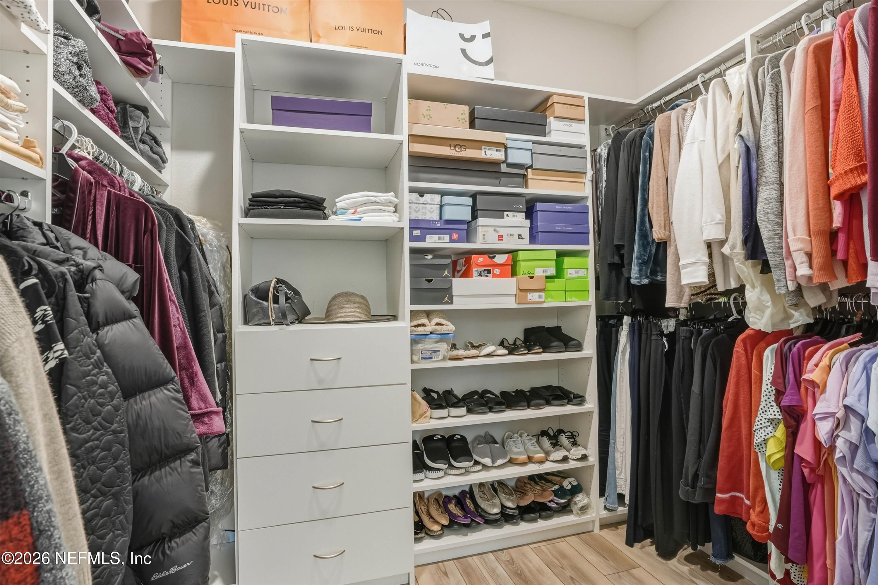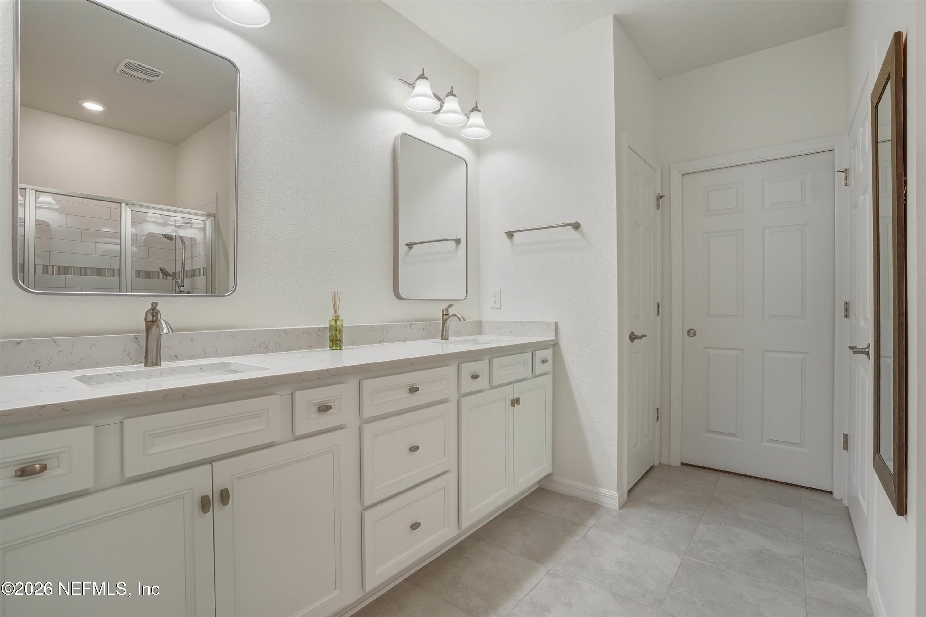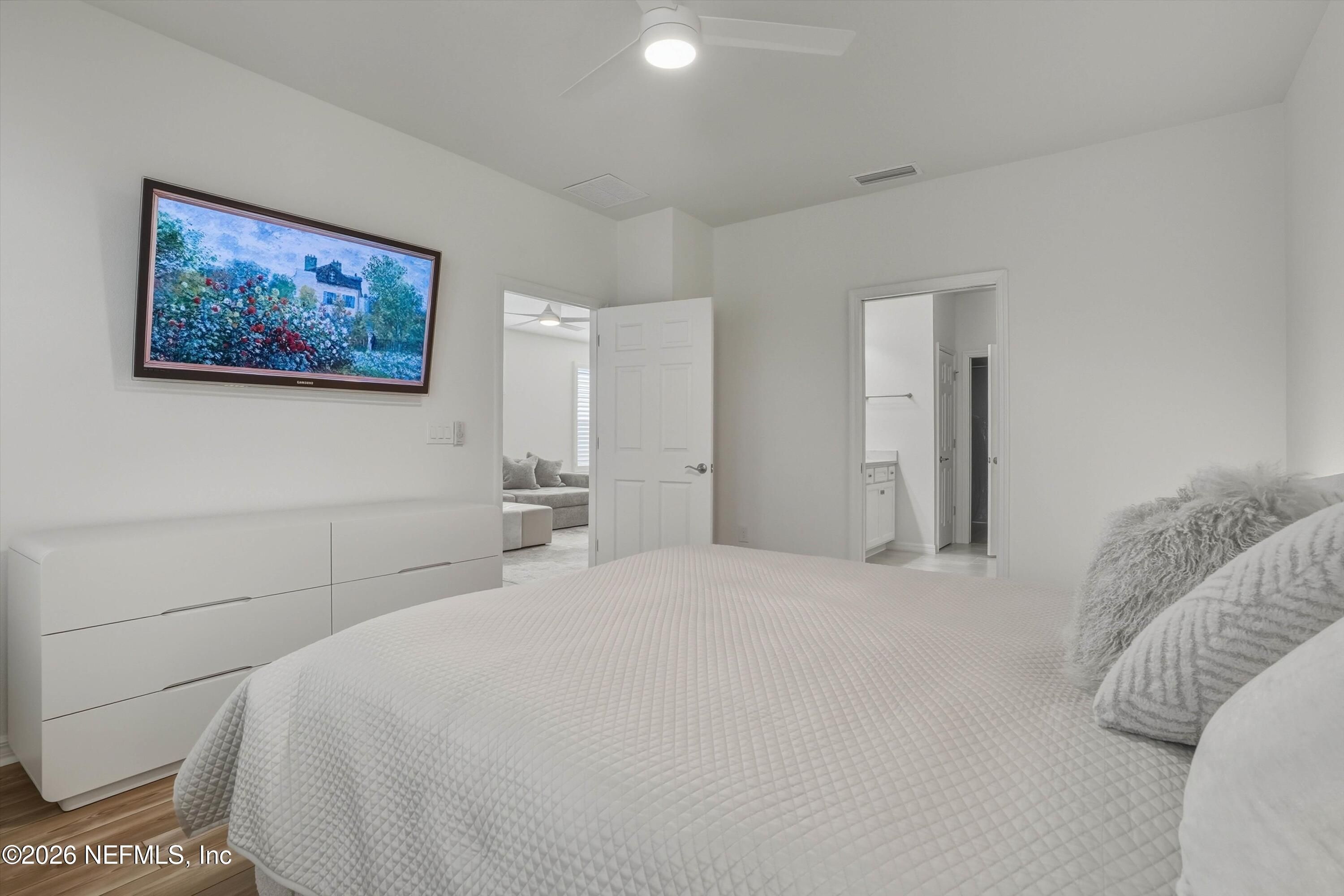 Welcome to this EXTENSIVELY UPGRADED villa with flex room in premier 55+ Del Webb Nocatee! This meticulously maintained Ellenwood floorplan features WOOD-LOOK LVP FLOORING throughout, & an open layout perfect for entertaining. The GOURMET KITCHEN boasts 42'' white cabinets, QUARTZ COUNTERTOPS, stylish new backsplash, designer pendant lights, GAS RANGE WITH AIR FRYER (2024), and dimmers. Relax in your EXTENDED SCREENED LANAI with TV and tinted sliding doors. PREMIUM UPGRADES include: plantation shutters, high-end ceiling fans with remotes, whole house WATER SOFTENER, keyless entry, upgraded thermostat, EV outlet, gas WASHER/DRYER (2024), & new Kohler toilets. Fresh paint throughout! The spacious owner's suite features walk-in closet with BUILT-INS. Garage has full insulation, epoxy floors & shelving. SHORT WALK to the CANOPY CLUB featuring pools, pickleball, tennis, fitness, & onsite restaurant & bar. Enjoy all Nocatee amenities, nearby beaches & golf. Golf-cart friendly community!
