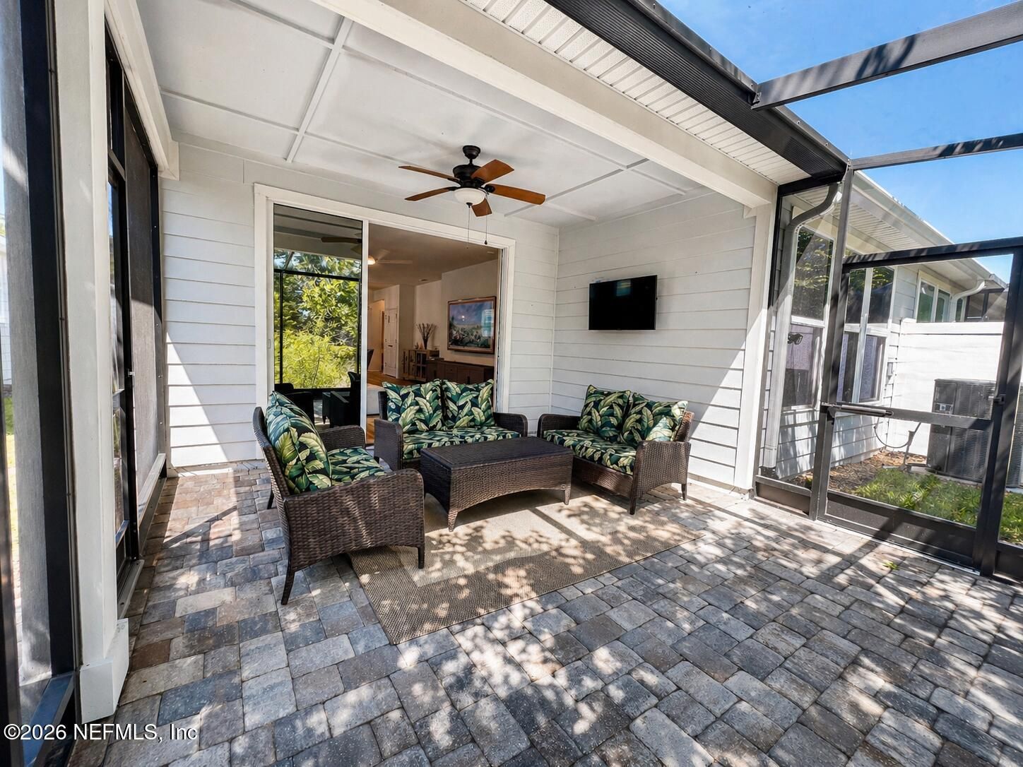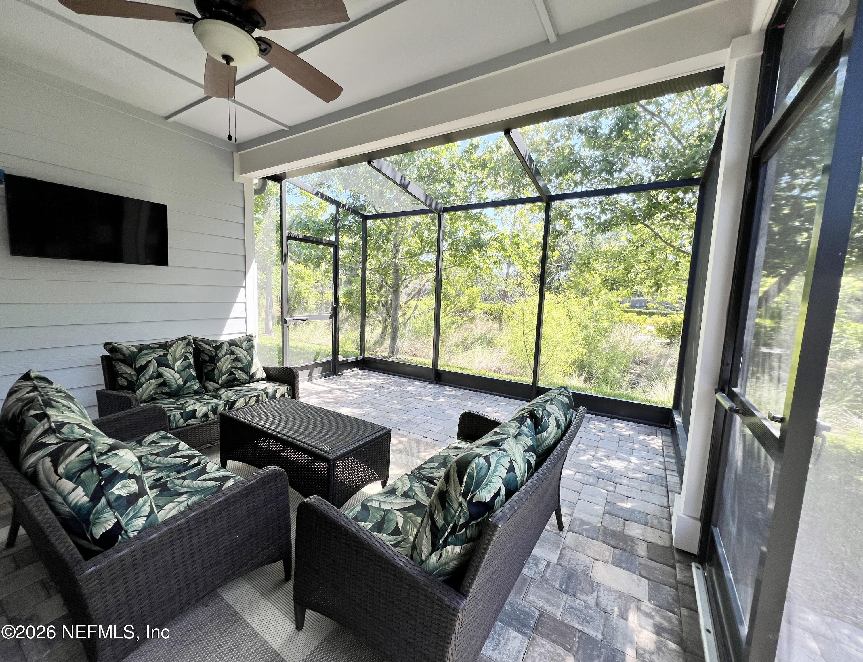 SELLER WILL PAY 1 YEAR OF HOA DUES WITH ACCEPTED CONTRACT BY 5/30/26. Check out these upgrades! Upgrades include plantation shutters, ceiling fans, whole-house water softener, keyless entry, upgraded thermostat, EV outlet in garage, gas washer/dryer, new gas range with air fryer, insulated garage with epoxy floors and shelving, tinted sliding patio doors, new Kohler toilets, fresh paint throughout and extended lanai.Maintenance-free living that includes lawn care, power washing, exterior painting, termite service, and reclaimed irrigation water allowing you to enjoy a true lock-&-leave lifestyle. This perfect location is ust a 3-minute walk to the Canopy Club! Del Webb Nocatee is a premier 55+ community offering resort-style living: dual pools, a relaxing spa tub, a pickleball community with over 300 members, tennis, bocce, billiards, a full-service restaurant and bar, ballroom, fitness center, and even a community garden & kayak launch to the Intracoastal. Enjoy additional living space with the extended lanai, the perfect spot to relax and take in the peaceful views. And when you're ready to explore beyond the gates, golf cart paths connect you directly to everything Nocatee has to offer: waterparks, live concerts, food trucks, restaurants, and shopping just minutes away!