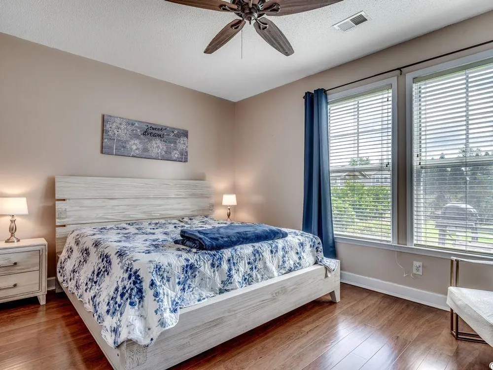 Gorgeous townhome in Windsor Park at Berkshire Forest area of Carolina Forest, that has been nicely decorated and recently updated with stainless appliances and kitchen cabinets have been refinished with granite counter tops . An accent wall enhances the kitchen and dining area, with laminate flooring in main living area of first floor and tile in the kitchen. Master bedroom is on first floor with upgraded shower doors in master bath. Up stairs has a loft that looks down over the living area. There are two bedrooms upstairs, one of which has its own private bath, and the other shares a hall bath. Screened porch with patio for grilling and relaxing ! Berkshire Forest has a great amenity center complete with pickleball Courts, tennis courts, 3 large pools, splash pool for kids, lazy river, fitness center and clubhouse. Berkshire Forest is convenient to shopping and just minutes from the beach!