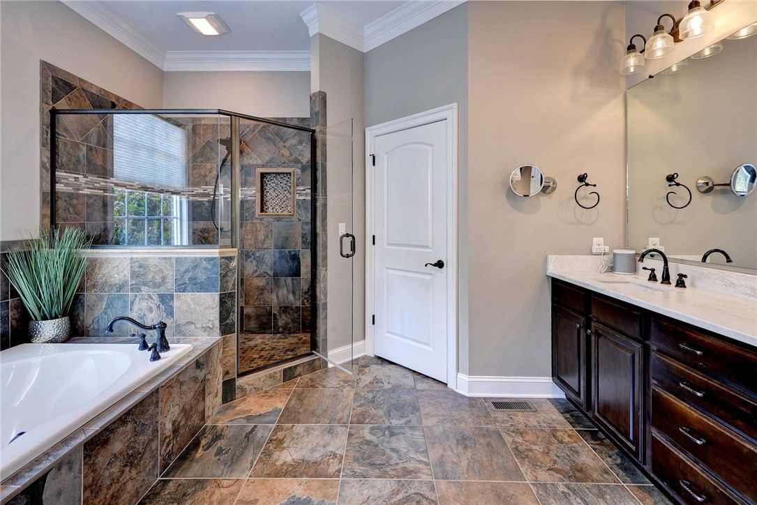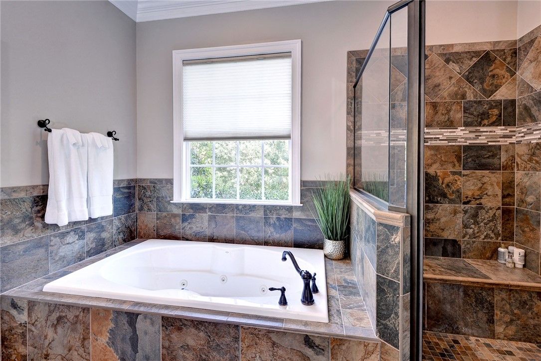 - Attic Access, Bookcases, Built-in Features, Bay Window, Ceiling Fan(s), Cathedral Ceiling(s), Dining Area, Separate/Formal Dining Room, Double Vanity, Eat-in Kitchen, French Door(s)/Atrium Door(s), Granite Counters, High Ceilings, Jetted Tub, Kitchen Island, Pantry, Pull Down Attic Stairs, Recessed Lighting, Skylights, Walk-In Closet(s), Programmable Thermostat