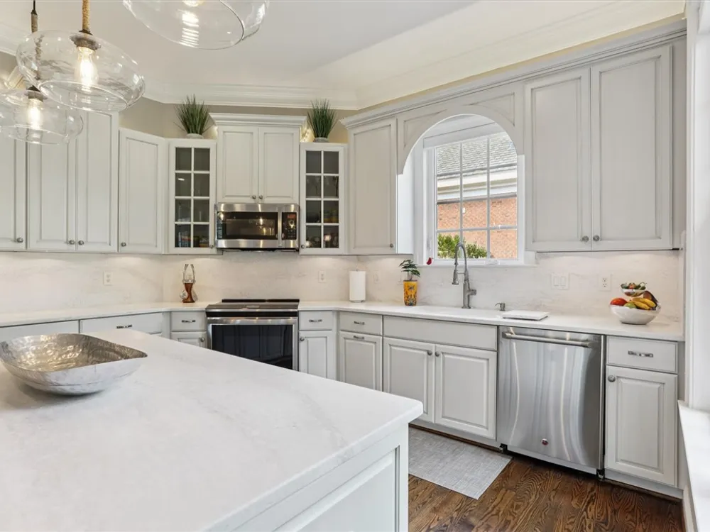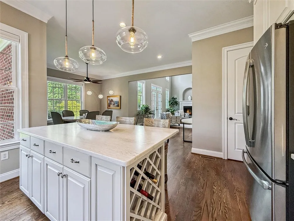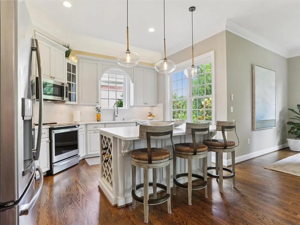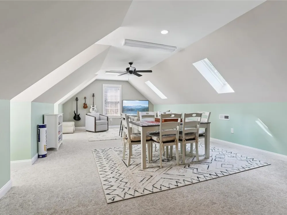 - Attic Access, Bookcases, Built-in Features, Balcony, Bay Window, Ceiling Fan(s), Cathedral Ceiling(s), Dining Area, Separate/Formal Dining Room, Double Vanity, Eat-in Kitchen, French Door(s)/Atrium Door(s), High Ceilings, Jetted Tub, Kitchen Island, Pantry, Pull Down Attic Stairs, Recessed Lighting, Solid Surface Counters, Skylights, Walk-In Closet(s)