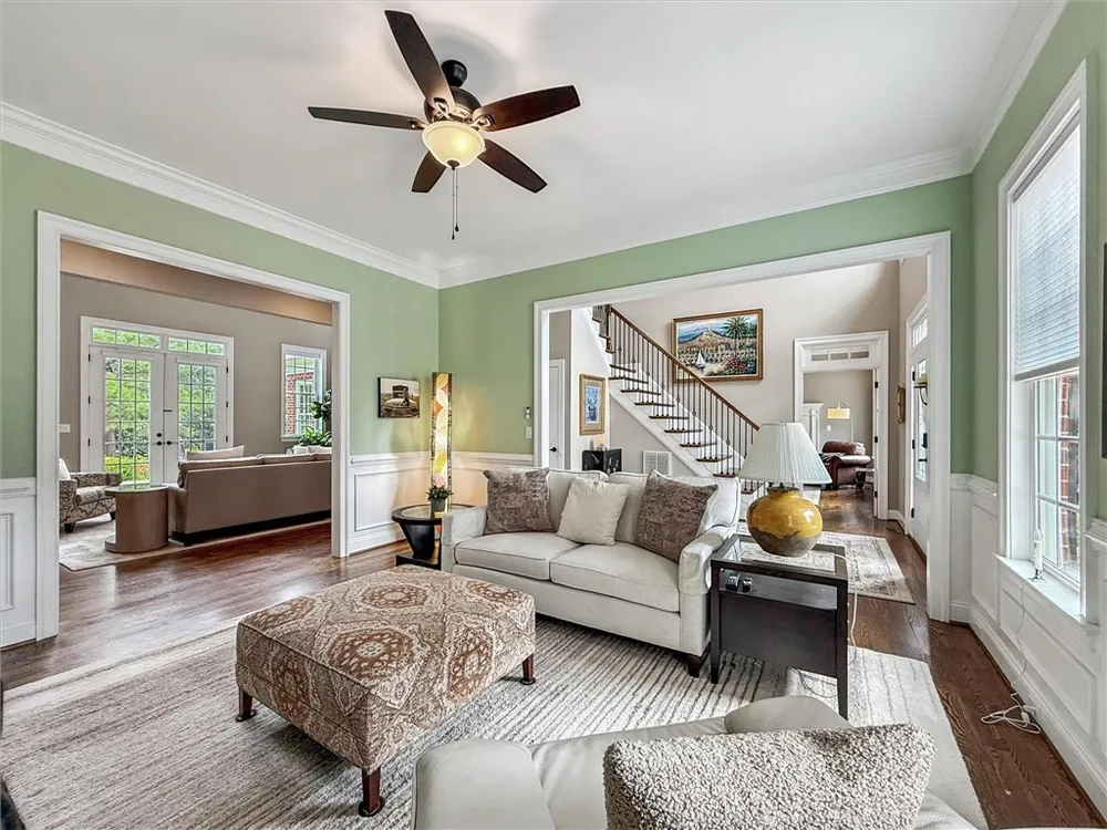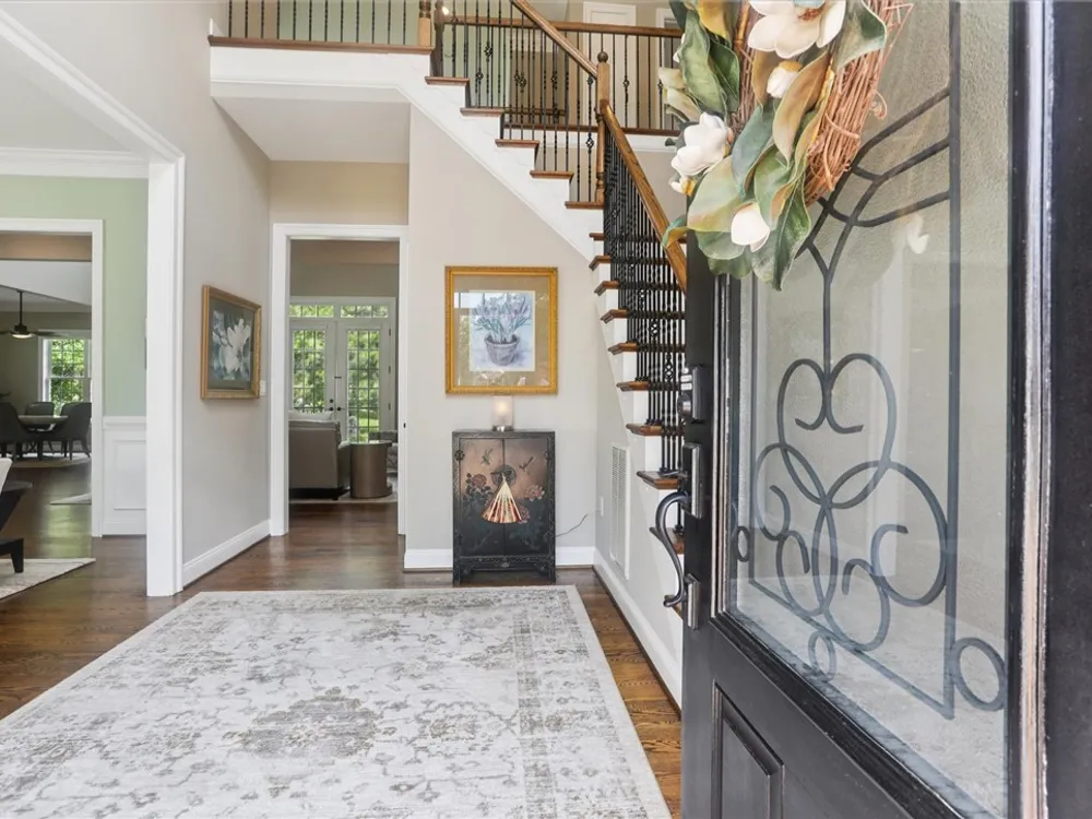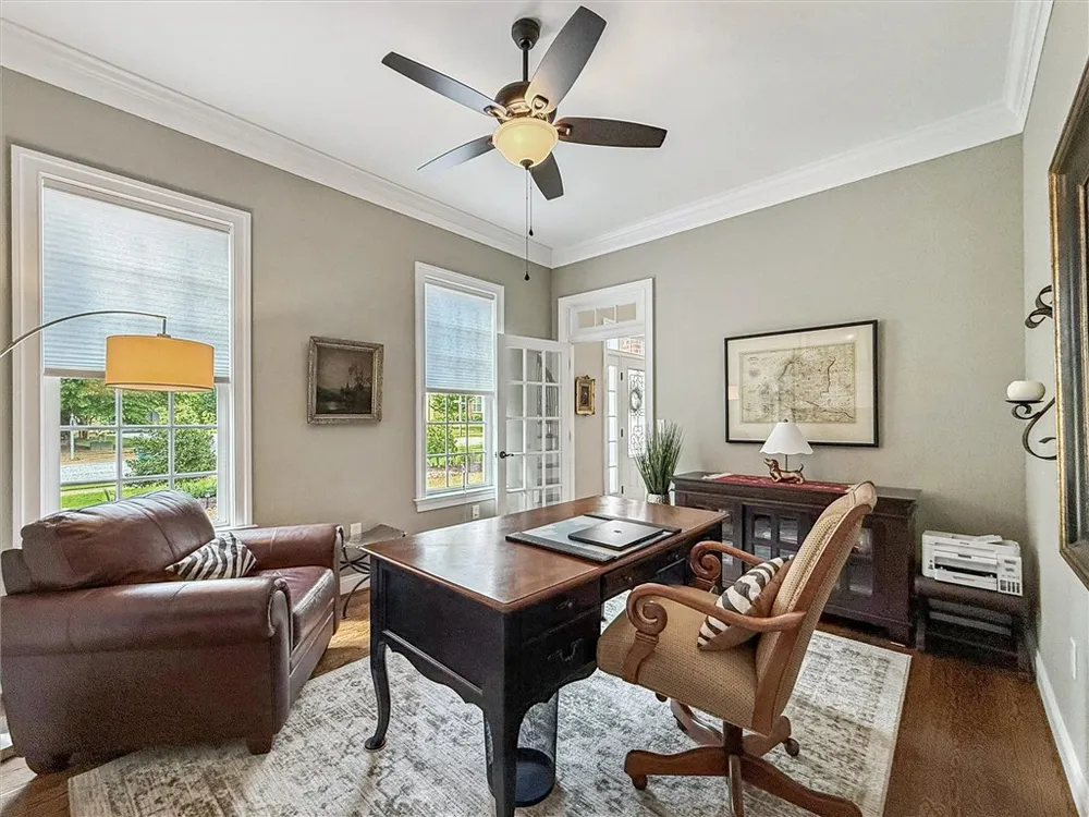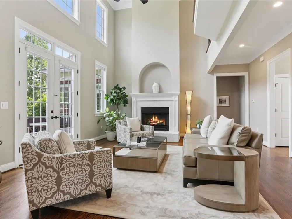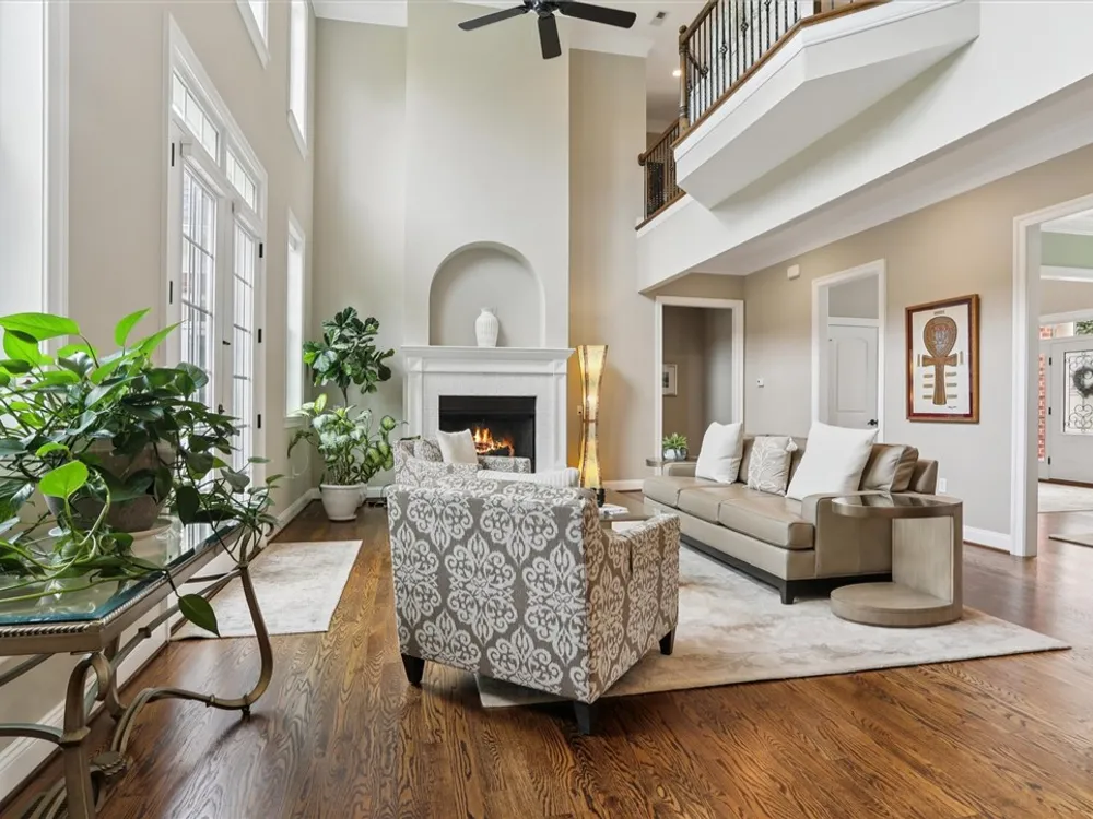 - Attic Access, Bookcases, Built-in Features, Balcony, Bay Window, Ceiling Fan(s), Cathedral Ceiling(s), Dining Area, Separate/Formal Dining Room, Double Vanity, Eat-in Kitchen, French Door(s)/Atrium Door(s), High Ceilings, Jetted Tub, Kitchen Island, Pantry, Pull Down Attic Stairs, Recessed Lighting, Solid Surface Counters, Skylights, Walk-In Closet(s)