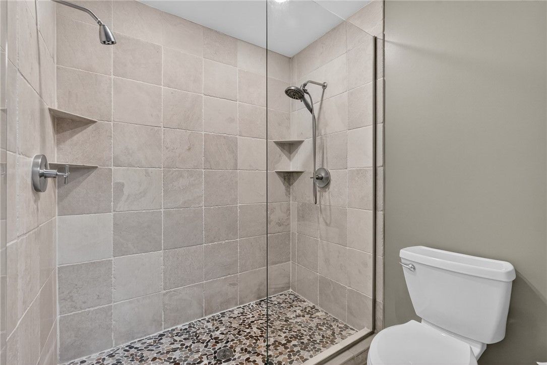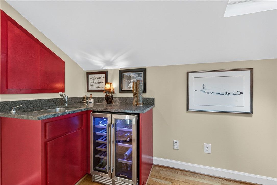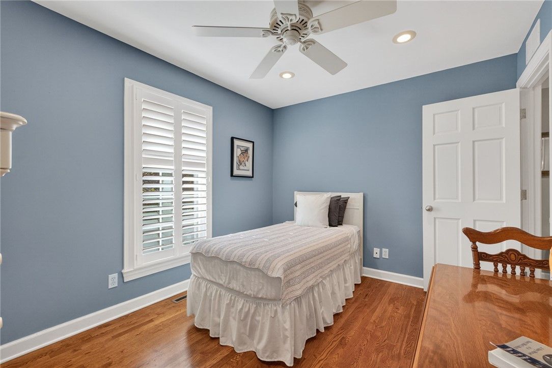 Updated one-level brick home in Kingsmill with an efficient layout and quality upgrades throughout. The kitchen features granite countertops, solid maple cabinetry with custom pull-outs, gas cooking, new appliances, plantation shutters, and a custom backsplash, open to the family room with wood-burning fireplace. The first-floor primary suite offers vaulted ceilings and two walk-in closets with custom organizers. A private guest suite includes a full bath, while two additional bedrooms share a hall bath. Upstairs bonus room with wet bar and Bodega wine cooler is ideal as a media room, office, or guest space. Wood floors and fresh paint throughout. Major updates include replacement windows, roof, 2025 dual Trane HVAC, 200-amp panel, irrigation, and GE washer/dryer. Trex deck, fenced yard, Leaf Guard gutters, new driveway, brick walkway, and professional landscaping.